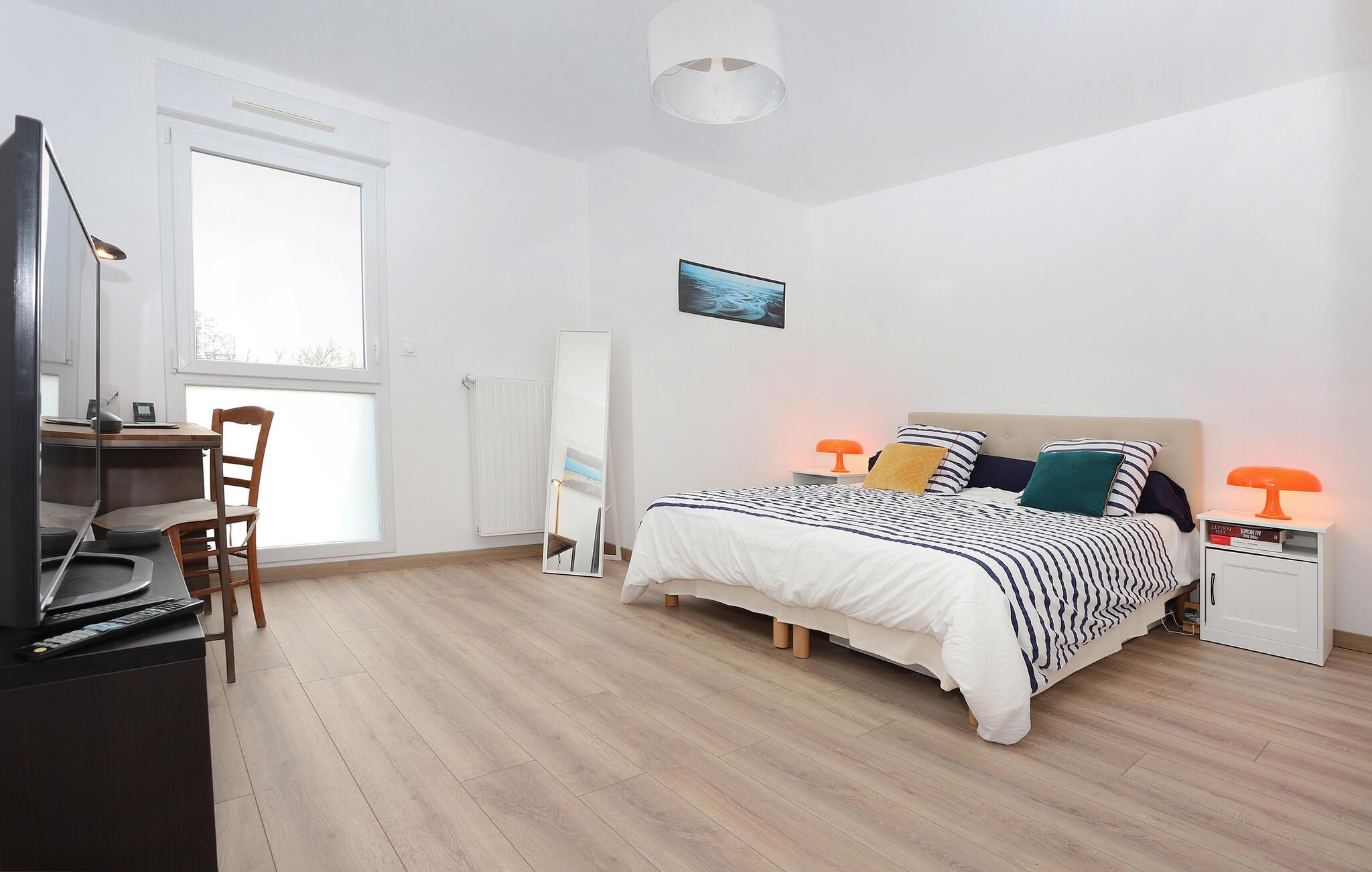 Denne rummelige og stilfuldt indrettede ferielejlighed i byens centrum tilbyder jer ideelle forhold for en bilfri ferie. Tilbered lækre retter i det moderne køkken og nyd dagens måltider i den lyse opholdsstue. Efter en lang dag med udflugter kan I streame en film på Netflix eller sætte fødderne op på den behagelige læsestol og planlægge jeres næste aktiviteter.