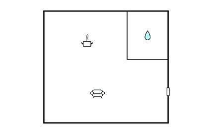 Badeværelse 4m2 (nr. 1) - WC. Varmt og koldt vand. Bruser