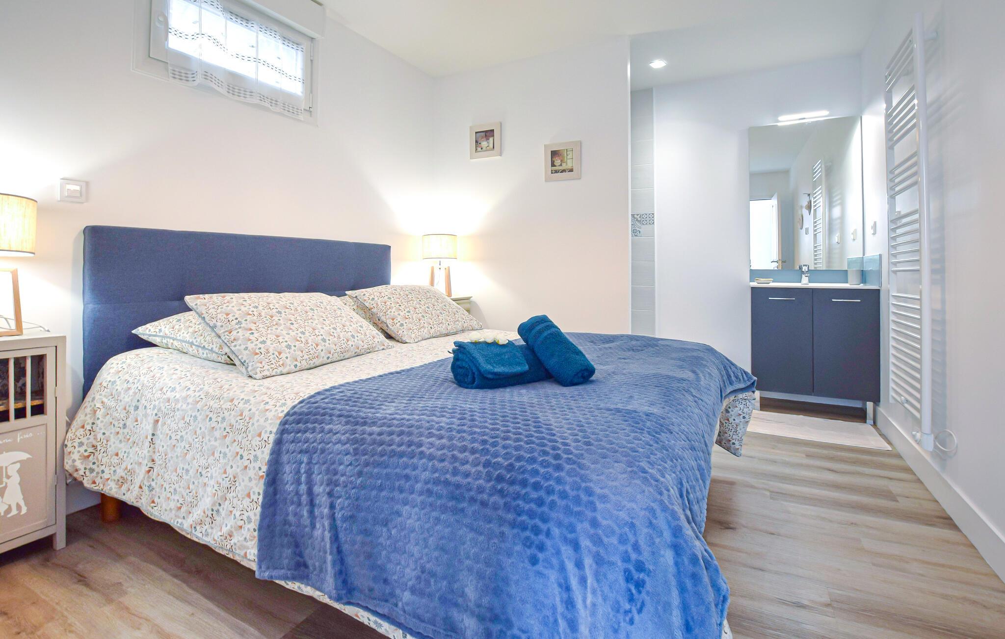 Nyd en afslappende ferie i dette charmerende feriehus, tæt på et væld af attraktioner. Dette rummelige og smukt renoverede hus i normannisk stil byder jer velkommen med et smagfuldt møbleret interiør, hvor I vil føle jer hjemme fra det øjeblik, I ankommer. Glæd jer til hyggelige aftener, hvor I laver mad sammen og serverer jeres måltider ved det indbydende spisebord. Snak med venner over et glas vin i den hyggelige stue om aftenen, og nyd den behagelige atmosfære under sjove spilleaftener. Start dagen med en lækker morgenmad på jeres solrige, sydvendte terrasse, mens børnene leger i den velholdte, indhegnede have. Spil badminton eller boccia, nyd en forfriskende drink under parasollen, og tænd op i grillen ved solnedgang. Tag en dukkert i den nærliggende Gougins-strand, og fordyb jer i historien ved Utah Beach og D-Day Museum. Besøg Sainte-Mère-Église, Airborne Museum og Cité de la Mer Maritime Museum, slentr gennem charmerende fiskerlandsbyer som Barfleur og Saint-Vaast-la-Hougue, og smag regionale specialiteter på farverige markeder.