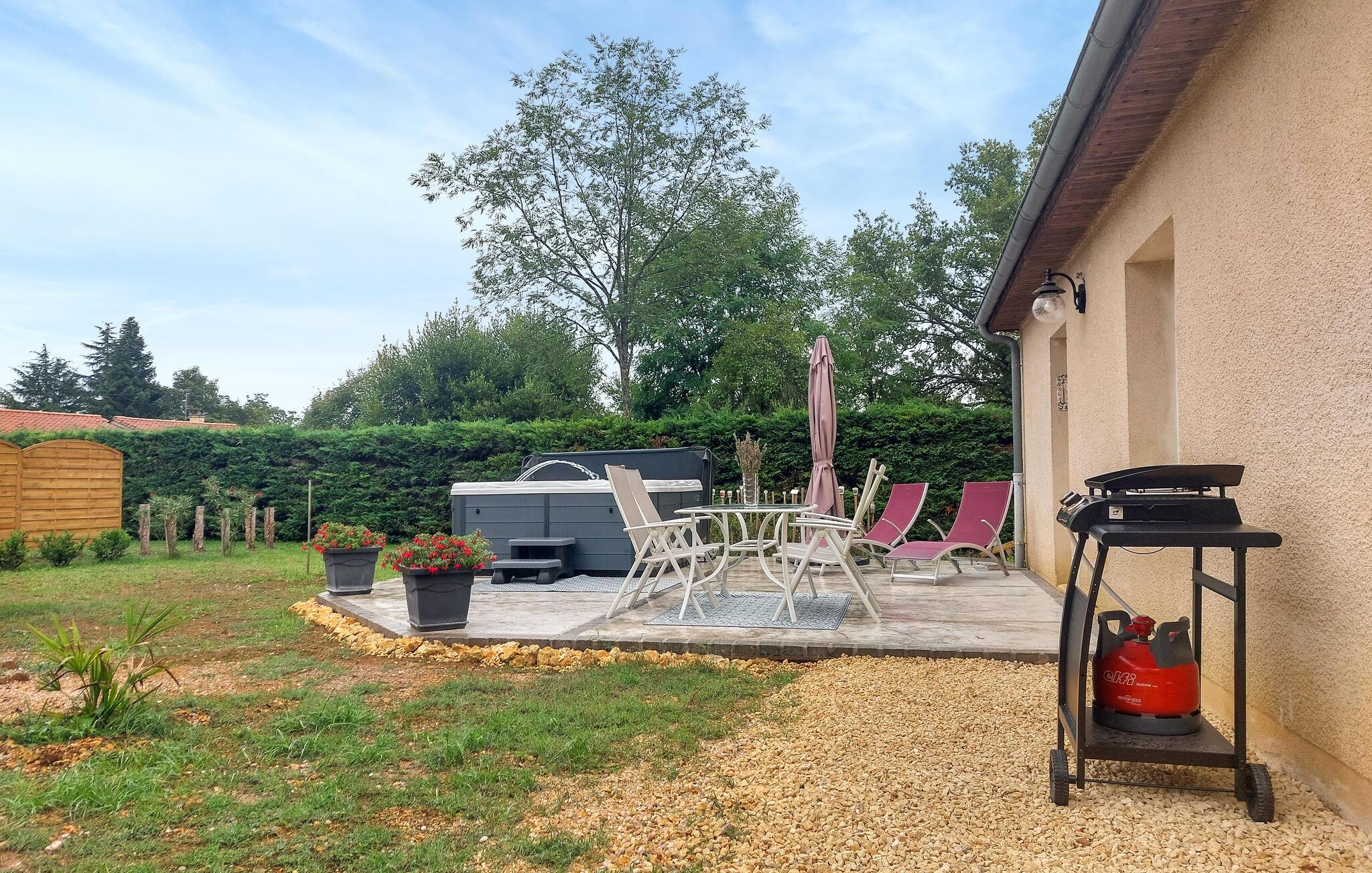 De kompakte ferier tilbyder og afslappet ophold i hjertet af Périgord Noir. Fantastisk komfort i den indendørs, komfortable lounge med sofa og tv. Der er meget af det sammen med den runde bakke, så jeg kan tale om det på den lille, praktiske måde.
