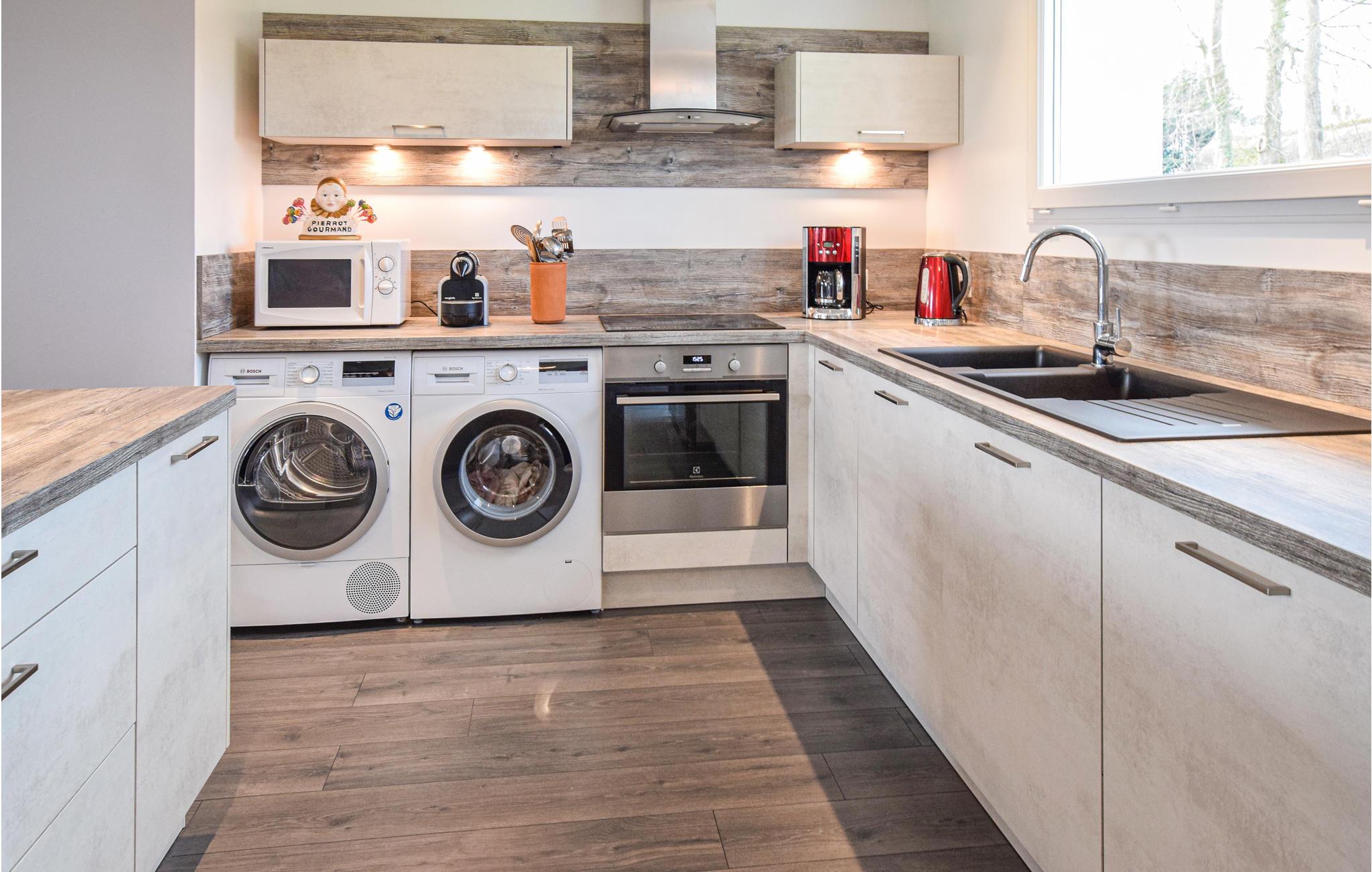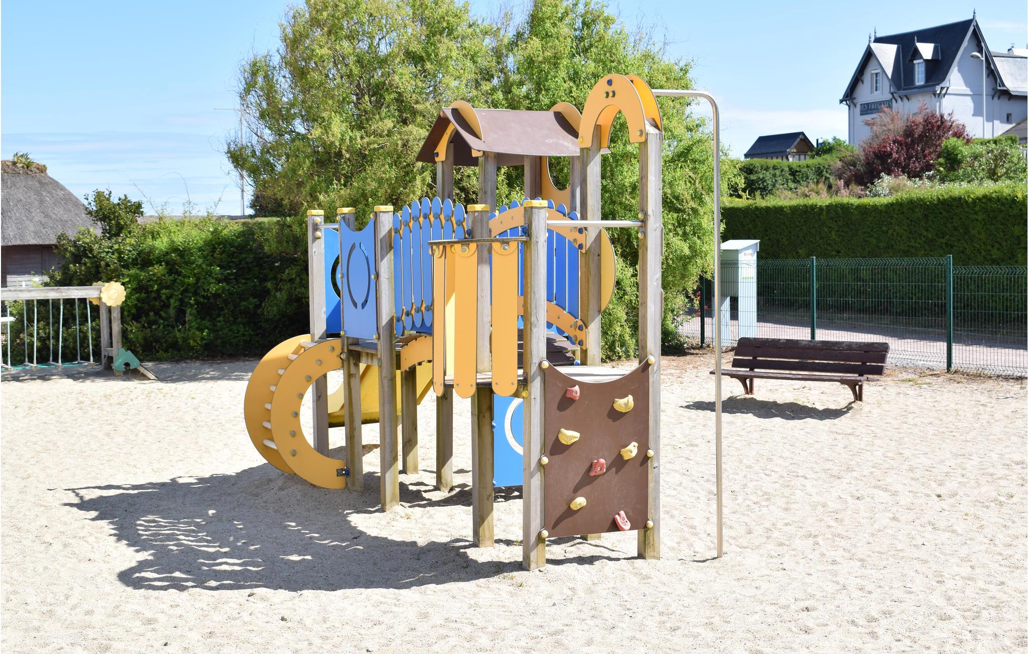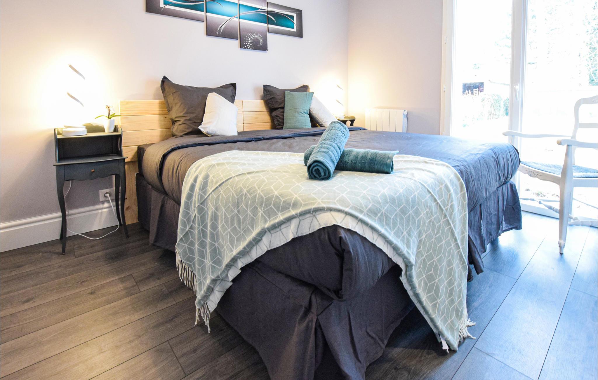 Huset er rummeligt, åbent og tilbyder plads til 10 personer i 5 soveværelser. Takket være de 4 badeværelser er der ingen slag om, hver der skal først til om morgenen, og alle kan starte dagen i sit eget tempo. Udstyret dækker alle behov. Børn kan boltre sig rundt på den 3000 m² store ejendom og lege med de mange lege- og sportsudstyr. Du kan vælge mellem en gynge, en trampolin, et legehus, fodboldmål og badminton. Forældre kan nyde den smukke udsigt over blomsterne og haven i landskabet.