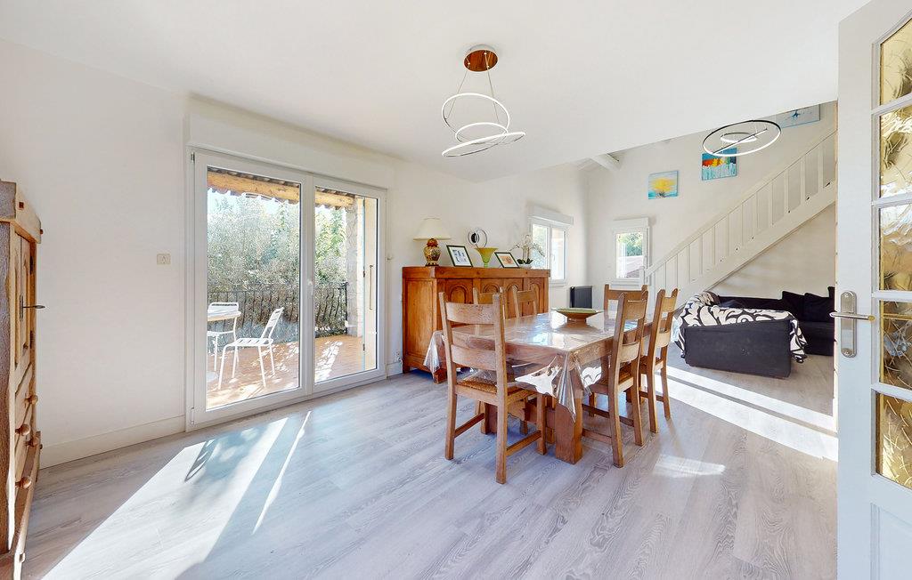 Indretningen er komfortabel, rummelig og hjemlig. Der er en dejlig udsigt fra de indhegnede terrasser, så her får I det oplagte sted at spise morgenmad. Dette hjem er ideelt til to familiegrupper eller venner, der ønsker at holde ferie sammen. På grund af den smarte opdeling af de to etager, som er forbundet via en udvendig trappe, er det også nemt at have tid for sig selv.
