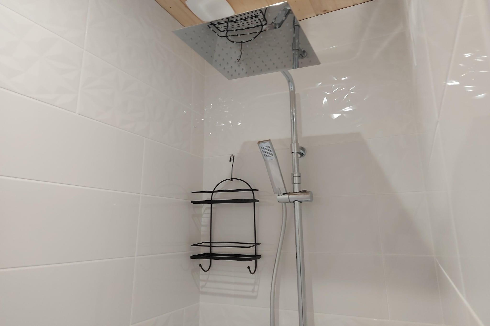 Stueetage: (spisestue(spisebord), åbent køkken(elkedel, brødrister, komfur(Komfur med fire kogeplader, elektrisk), emhætte, kaffemaskine, espressomaskine, ovn, combi-mikroovn, køle-fryseskab), soveværelse(enkeltseng(90 x 190 cm), enkeltseng(90 x 190 cm), Fjernsyn), badeværelse(bruser, håndvask, toilet)) terrasse, havemøbler, grill, parkering