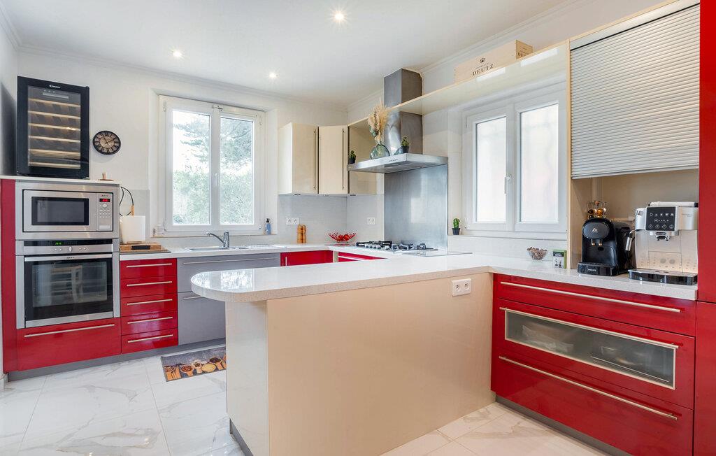 Oplev indbegrebet af luksus og afslapning i dette udsøgte feriehus i Saint-Maxime. Den stilfulde bolig er præget af moderne tilføjelser og elegante møbler, så her er der optimale rammer til at slappe af og have det rart. Den rummelige, overdækkede terrasse giver jer et perfekt sted til udendørs spisning. Den smukt anlagte have med indbydende poolområde og solterrasse sikrer, at I kan nyde middelhavsstemningen fuldt ud. Her får I fred og komfort i perfekt harmoni.