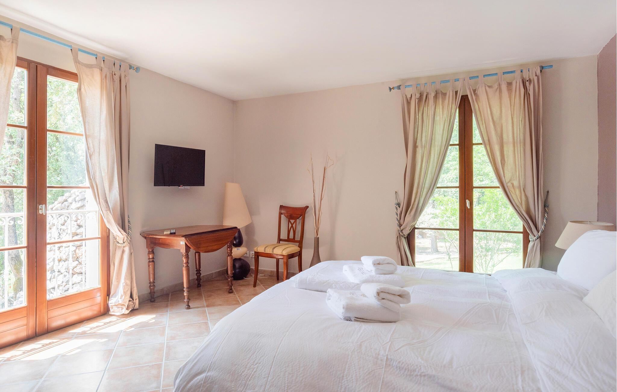 Nyd fredelige dage i dette rummelige feriehus med pool og idyllisk have. Beliggende på en fortryllende grund tilbyder denne charmerende villa masser af plads til en afslappende ferie med familie eller venner. Interiøret er designet til komfort og hygge - glæd jer til at lave mad sammen, nyde måltider sammen og nyde harmoniske aftener i den hyggelige stue. Det idylliske udendørsområde lokker med adskillige afsidesliggende hjørner til spisning og afslapning. Om morgenen kan I svømme i den smukke pool og lade jeres børn lege i den rummelige, overdækkede have. Nyd solen på liggestolen, tænd op i grillen og snak over et glas vin på lune sommeraftener til langt ud på natten. Udforsk den historiske arv i Saint-Maximin-la-Sainte-Baume og besøg den imponerende basilika. Vandr langs de maleriske stier i naturreservatet Sainte-Baume og slentr gennem de farverige markeder i Brignoles og Barjols. Prøv provencalske vine på en af de mange vingårde, ro kajak på Argens-floden eller svøm ved de nærliggende strande i Cassis.