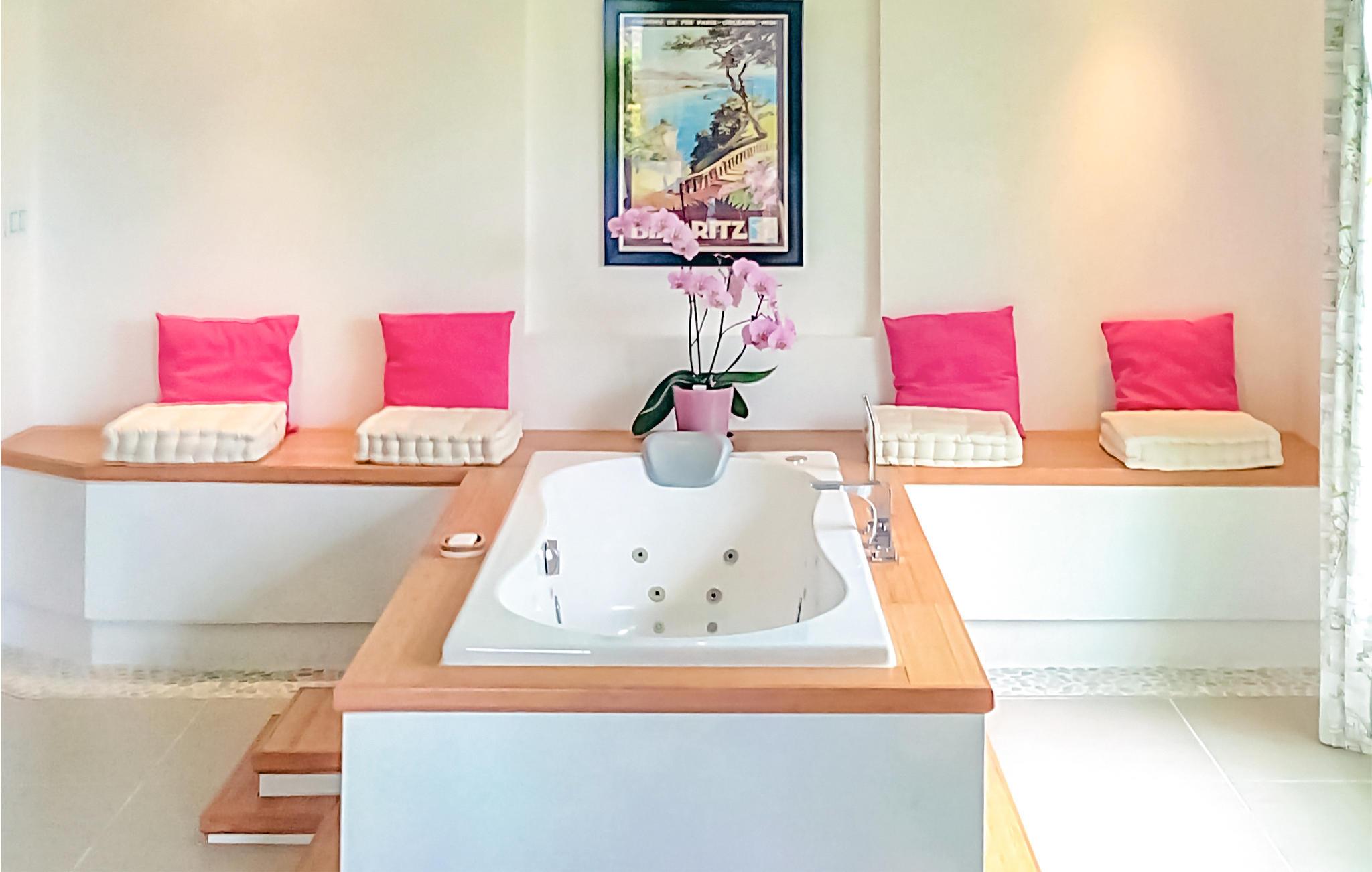Dette hus med udsigt over søen i St. Pé-sur-Nivelle, i hjertet af Baskerlandet, ligger kun 20 km fra den sprudlende Biarritz. Fra poolen har man betagende udsigt over Pyrenæerne. Ved søen er der en dejlig strand og mange faciliteter, restauranter og cafeer til en dag fuld af sjov. Cambo og Sare er et godt udgangspunkt til bjergvandringer og bjergstigninger. Espelette er kendt for sine velsmagende peberfrugter. Det den historiske havn i St. Jean-de-Luz og besøg Biarritz finder med butikker, museer, akvarium og golfbane. San Sebastian er altid et besøg værd. NB! De diskrete ejere bor af og til i en lille lejlighed under huset.