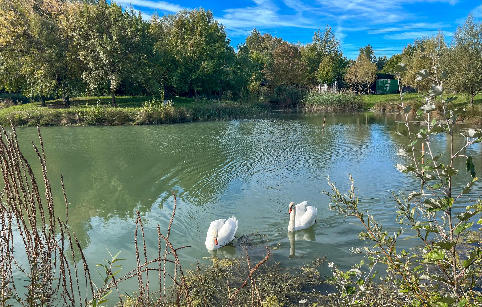 Jeres store, skyggefulde terrasse er det ideelle sted til en solid morgenmad med udsigt over naturen. I de varme sommermåneder kan I nyde roen med en forfriskende dukkert i dammen og se frem til stemningsfulde grillaftener under åben himmel.