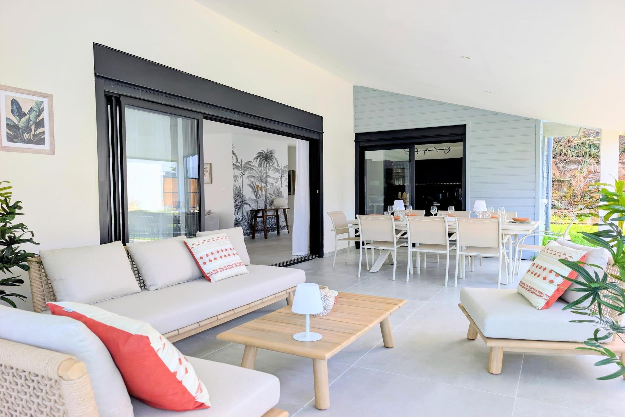 Solskin, palmer og den turkisblå lagune skaber stemningen for denne rummelige villa med fire soveværelser i La Saline le Bains, Saint-Paul. Huset er designet til familier eller grupper, der søger komfort og privatliv, og kombinerer tropisk udendørsliv med moderne interiør - kun få øjeblikke fra øens smukke strande på vestkysten. Indenfor har den lyse opholds- og spisestue komfortable siddepladser, et tv og et stort spisebord, hvor alle kan samles til måltider eller afslappede aftener. Det fuldt udstyrede køkken er udstyret med kaffemaskine, mikrobølgeovn, opvaskemaskine og køleskab med fryser, hvilket gør det nemt at lave mad selv. Villaen har komfortabel plads til gæster på tværs af fire veludstyrede soveværelser: et med en dobbeltseng, et med en kingsize-dobbeltseng, et andet soveværelse med dobbeltseng og et værelse med to enkeltsenge - ideelt til børn eller venner, der deler. Tre moderne badeværelser sikrer bekvemmelighed og privatliv for hele gruppen. Med aircondition, internetadgang, vaskemaskine-tørretumblerfaciliteter og en barneseng til rådighed er alle praktiske detaljer blevet tænkt over. Træd udendørs, og atmosfæren bliver virkelig levende. En privat swimmingpool inviterer dig til at køle af under øens sol, mens haven, balkonen og de møblerede udendørsområder er perfekte til lange morgenmadsbuffeter, drinks ved solnedgang eller grillaftener under åben himmel. Liggestole, parkering og fredelige omgivelser fuldender oplevelsen. Fra lagunesvømning og snorkeleventyr til vandreture i vulkanske landskaber og udforskning af lokale markeder tilbyder denne villa en afslappet, men alligevel godt forbundet base for at opdage Réunions pulserende skønhed.