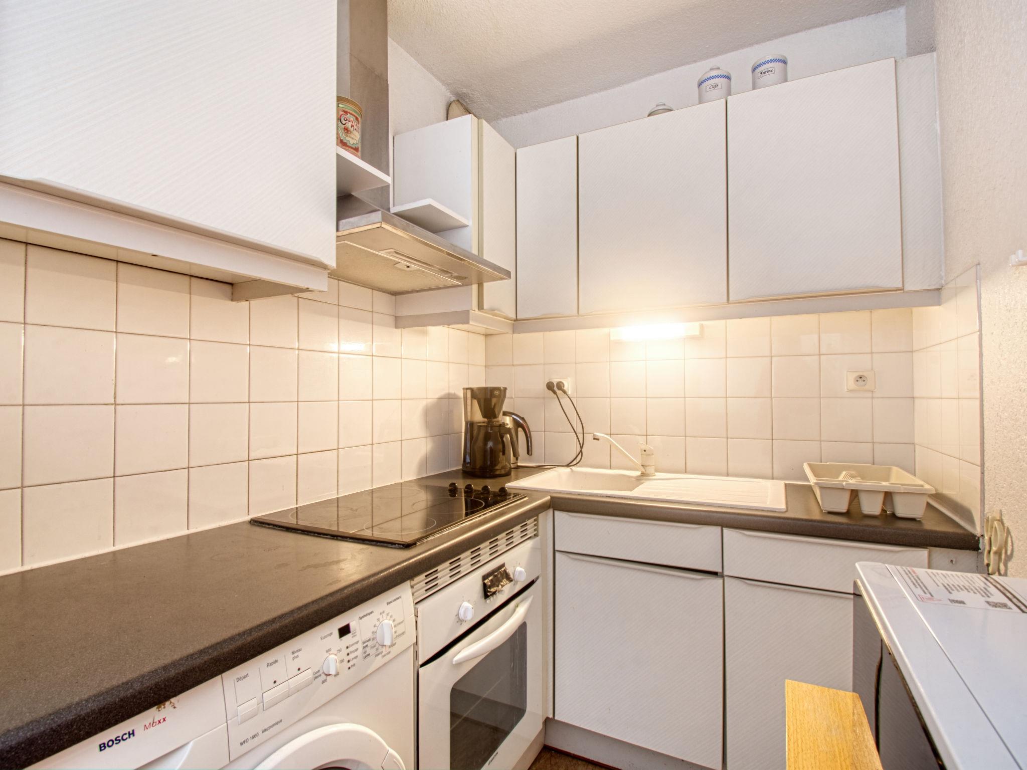 2-room apartment 34 m2 on 1st floor. Living/dining room with 1 double sofabed (140 cm, length 190 cm), flat screen, electric heating and air conditioning. Exit to the terrace. 1 room with 1 french bed (1 x 140 cm, length 190 cm). Kitchenette (oven, 4 ceramic glass hob hotplates, microwave, electric coffee machine). Shower, sep. WC. Terrace. Terrace furniture. Side view of the sea. Facilities: washing machine, hair dryer. Internet (WiFi, extra). Garage space n 21, height 184 cm, width 221 cm. Please note: apartment street side. Non-smokers only. 1 small pet/ dog allowed. Smoke alarm.