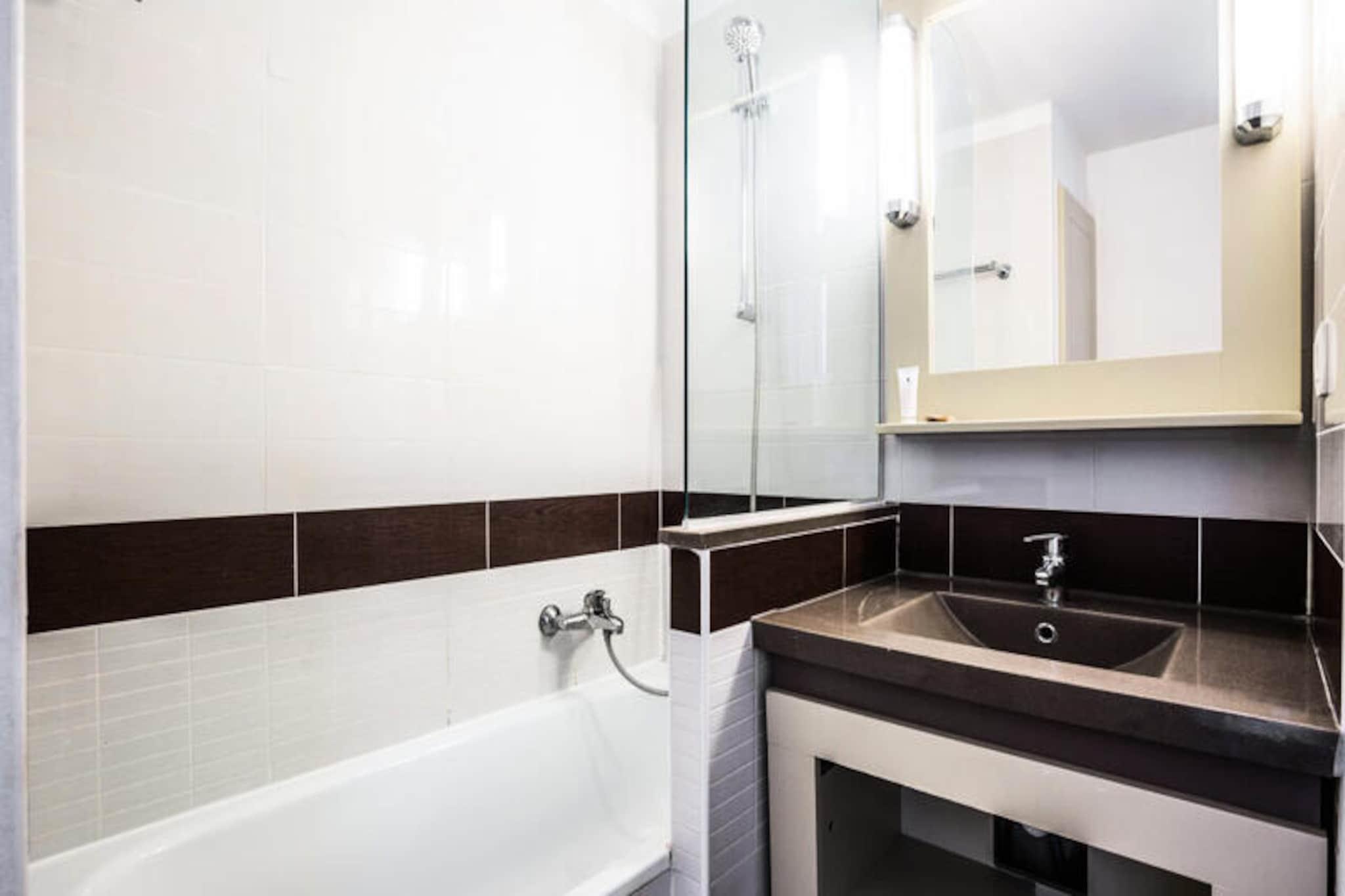 This 2-room apartment can comfortably accommodate up to 7 guests and features a spacious living room, one bedroom, a cabin area, and two bathrooms. The apartment is pet-friendly for an additional fee and offers essential services such as bed linen and end-of-stay cleaning at extra cost. Guests can also enjoy paid parking and Wi-Fi access, subject to availability. A convenient charging station for electric vehicles is available in the car park, allowing for hassle-free stays. Located near Saint-Raphaël and Cannes, the apartment offers easy access to the stunning Côte d'Azur. The area boasts a wide range of beaches, coves, and trails for nature enthusiasts, along with exciting activities like sailing, kayaking, and parasailing. Adventure seekers can visit Aqualand park in Fréjus, while the famous Croisette in Cannes is just a short drive away. For those seeking a more relaxed experience, cafes and markets in the area provide a delightful experience. The apartment includes a fully equipped kitchen, perfect for preparing meals during your stay. It also features two bathrooms, ensuring comfort for all guests. Additional amenities include separate toilets and parking facilities. On-site, guests can enjoy various leisure activities, including access to multiple swimming pools, some heated, and others perfect for families and teens.