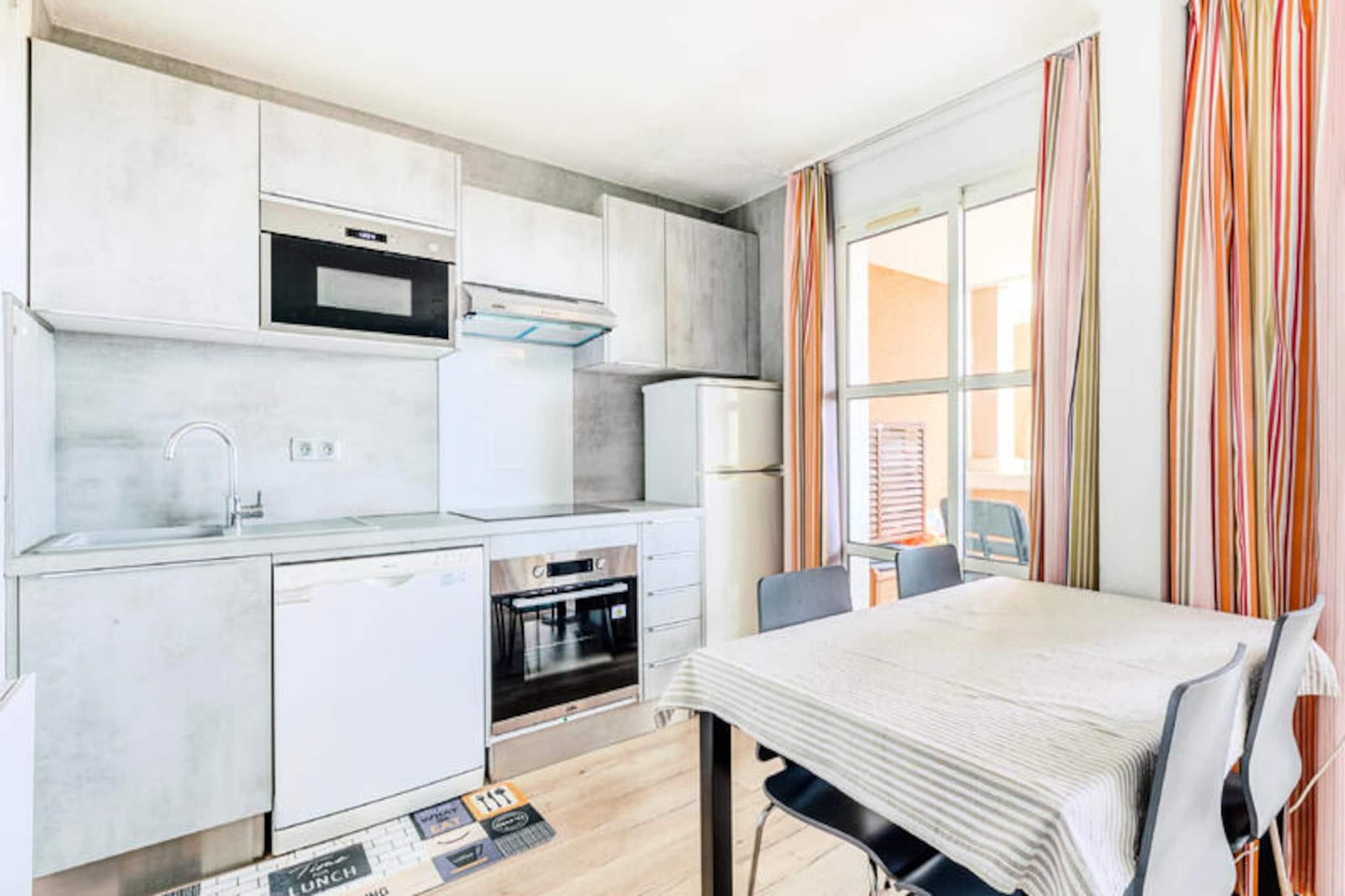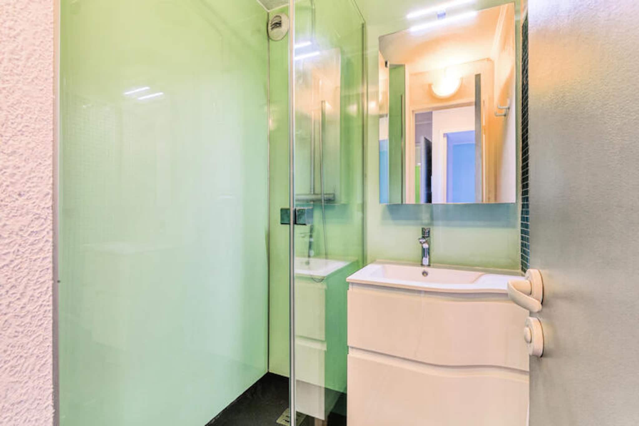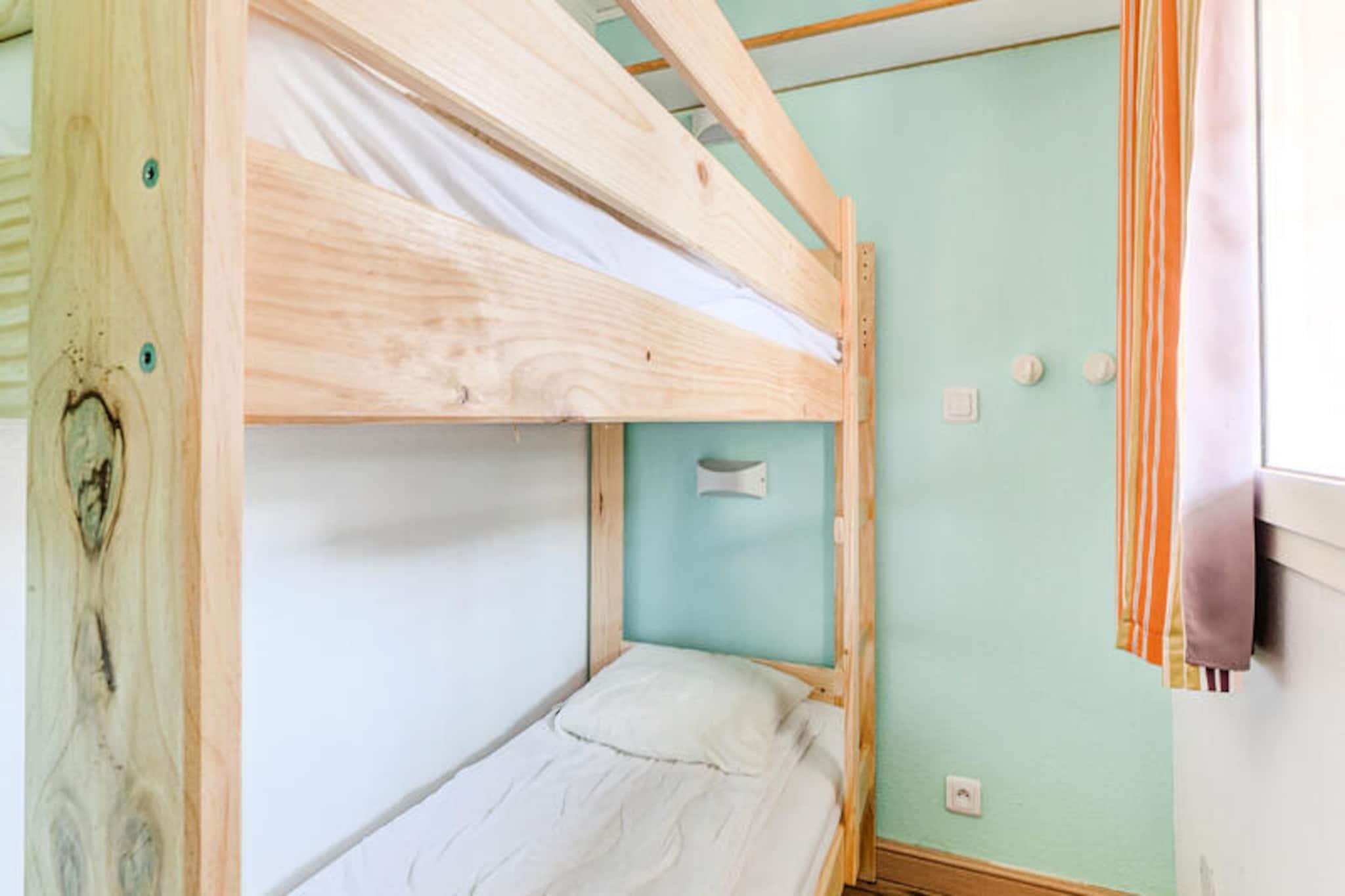 This 36 m² apartment accommodates up to 4 people and features a comfortable living room with a sofa bed, a separate bedroom with a double bed, and a cabin area with bunk beds. The apartment is pet-friendly (with additional charges) and includes a dedicated covered parking space. Wi-Fi access is available for an extra fee, and a mandatory cleaning service is required at the end of your stay. Additional amenities such as hot tubs are available at the nearby Esterel Forme Center for a surcharge. The apartment is located in a lively village, just 500 meters from local shops, cafes, and restaurants. Guests can enjoy nearby attractions such as the beautiful beaches of Agay Bay and Dramont Beach, easily accessible by a free Little Train. The village offers various recreational activities, including children’s clubs, thematic courses for younger guests, and a range of leisure options for teens. The village also boasts easy access to the stunning landscapes of the Estérel Massif for outdoor enthusiasts. The apartment includes a fully equipped American-style kitchen with a dining table, perfect for preparing meals. The bathroom features a shower and an electric hair dryer, while there is a separate toilet for added convenience. Enjoy the sea view from the covered terrace, which faces east, providing a peaceful setting for relaxation after a day of exploring the area.