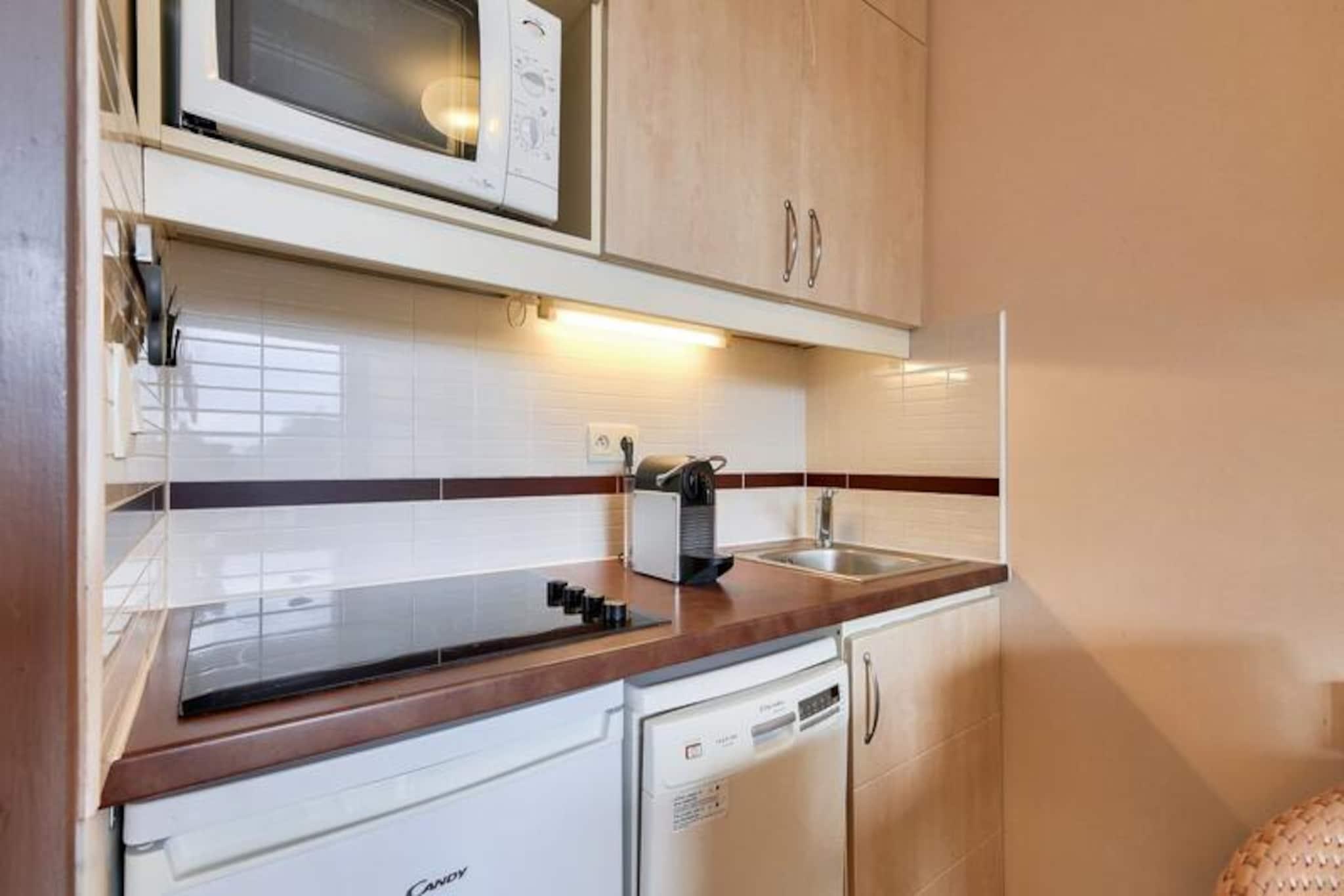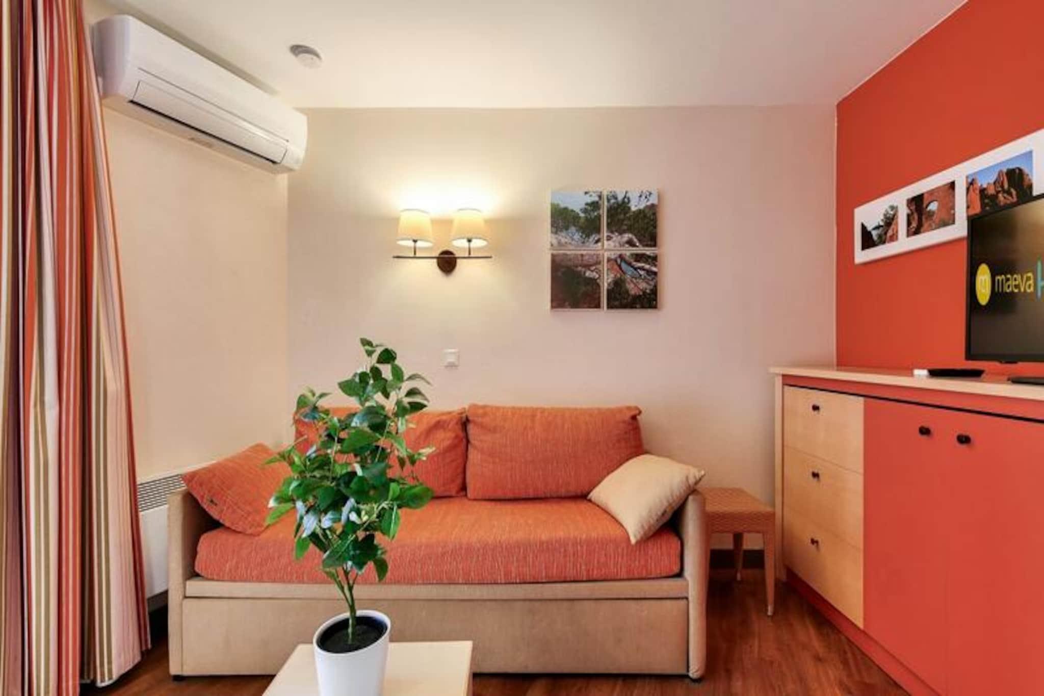 Denne lejlighed på 30 m² er ideel til et afslappende ophold, og tilbyder en dobbeltseng i soveværelset og en sovesofa med en udtræksseng i stuen, der kan rumme op til 4 gæster. Ejendommen er kæledyrsvenlig og tillader kæledyr med forudgående forespørgsel. Det har aircondition og en privat overdækket terrasse med sydvendt udsigt over skoven. Med et separat badeværelse og toilet tilbyder lejligheden komfort med faciliteter såsom en elektrisk håndklædetørrer, hårtørrer og badekar med søjle. Beliggende i hjertet af landsbyens centrum, er denne lejlighed kun 100 meter fra butikker og aktiviteter, hvilket sikrer nem adgang til alt hvad du har brug for. En kort gåtur på 500 meter tager dig til den nærmeste strand, og det lille tog giver hurtig transport til Agay Bay og Dramont Beach. I nærheden finder du caféer, barer og restauranter samt en børneklub og en vuggestue, hvilket gør det til et godt valg for familier. Lejligheden indeholder et fuldt udstyret amerikansk køkken med et bord og fire stole, ideel til at tilberede måltider. Den leveres også med en dedikeret parkeringsplads med et overdækket område til dit køretøj. Ejendommen tilbyder yderligere tjenester såsom et spabad ved Esterel Forme Centre og en ladestation til elbiler på landsbyens parkeringsplads.