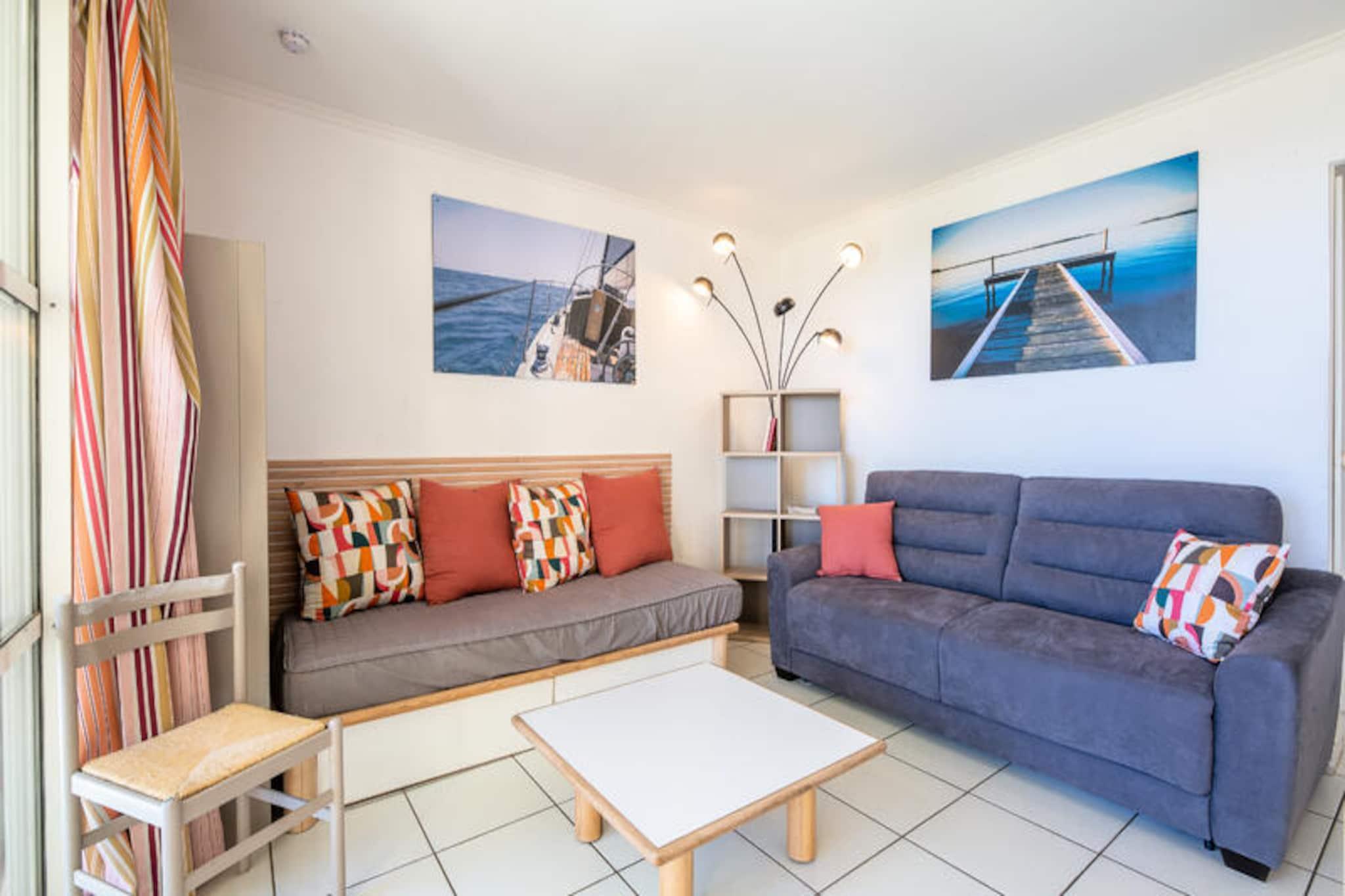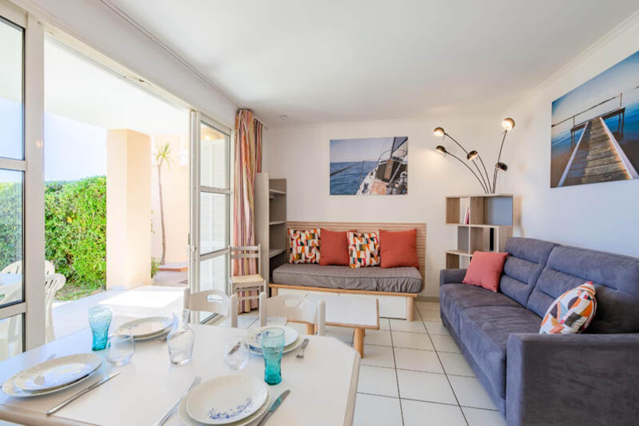 Denne lejlighed på 36 m² tilbyder komfortabel indkvartering for op til 4 gæster med en dobbeltseng og en udtræksseng i stuen. Lejligheden er kæledyrsvenlig med forudgående forespørgsel og inkluderer væsentlige faciliteter såsom et tv, Wi-Fi (tilgængelig mod et ekstra gebyr) og en møbleret terrasse med en fantastisk havudsigt. Det er også udstyret med udækket parkering og opbevaringsplads for ekstra bekvemmelighed. Denne lejlighed ligger kun 1 km fra stranden og giver nem adgang til lokale attraktioner. The Little Train betjener Agay Bay og Dramont Beach, hvilket giver hurtig transport i sommermånederne (april til september). Området byder på barer, butikker, restauranter og grønne områder, perfekt til at slappe af eller udforske. Børn vil elske de nærliggende temakurser, såsom hemmelig agent og cirkus, mens teenagere kan nyde aktiviteter, der passer til deres aldersgruppe. Indvendigt har lejligheden et fuldt udstyret køkkenområde åbent til stuen, så gæsterne kan tilberede deres måltider. Badeværelset har et brusekabine, og der er et separat toilet for ekstra privatliv. En overdækket terrasse tilbyder et perfekt sted at slappe af og nyde udsigten, mens en have tilføjer charmen ved dette feriehus.