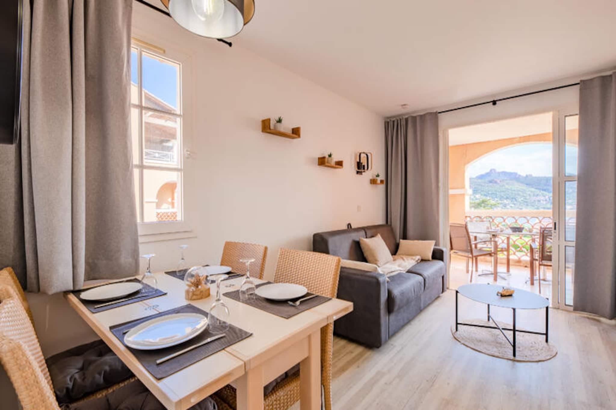 Denne charmerende lejlighed på 28 m² er perfekt til et afslappende ophold, og byder på en hyggelig stue med en sovesofa med plads til to og en standardsofa med plads til tre. Soveværelset har en dobbeltseng, hvilket sikrer en god nats søvn. Lejligheden er kæledyrsvenlig, så du kan tage dine kæledyr med på ferien. Nyd havudsigten fra den overdækkede terrasse, som vender mod øst, og drag fordel af den dedikerede udendørs parkeringsplads for ekstra bekvemmelighed. Beliggende i landsbyens centrum, er denne lejlighed kun 100-500 meter fra den nærmeste strand, med nem adgang til Agay Bay og Dramont Beach. Ejendommen ligger i gåafstand til en række caféer, butikker og restauranter, der tilbyder gæsterne en smagsprøve på det lokale liv. The Little Train, som kører sæsonbestemt, er også tilgængelig for at transportere dig til stranden. For dem, der søger underholdning, byder landsbyen på en række aktiviteter og attraktioner, alle inden for 100 meter fra lejligheden. Lejligheden har et fuldt udstyret køkken i amerikansk stil, perfekt til at tilberede måltider under dit ophold. Badeværelset har bruser sammen med yderligere faciliteter såsom elektrisk håndklædetørrer, opbevaringsplads og hårtørrer. Et separat toilet er også tilgængeligt for nemheds skyld. Wi-Fi er tilgængeligt mod et ekstra gebyr, og lejligheden er for nylig blevet renoveret for at sikre et komfortabelt og moderne ophold.