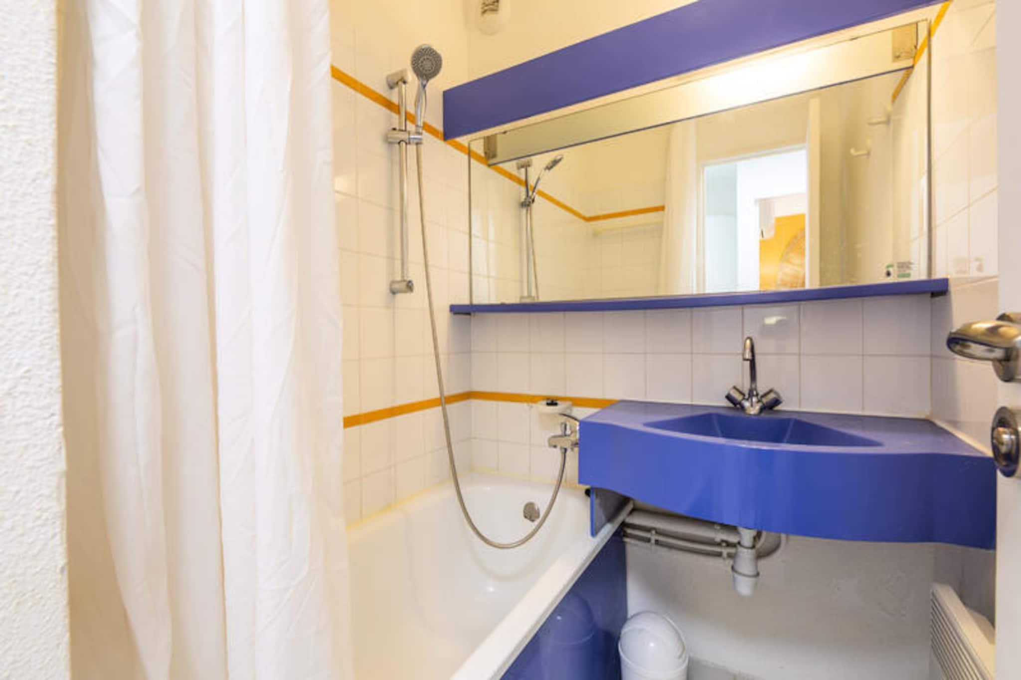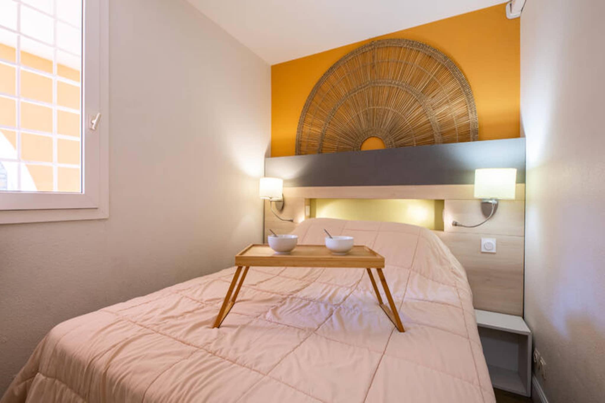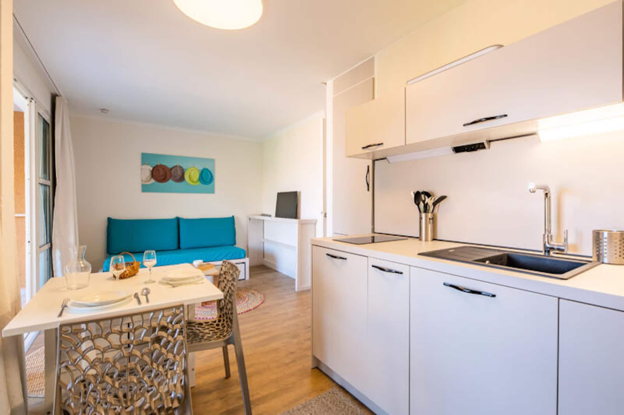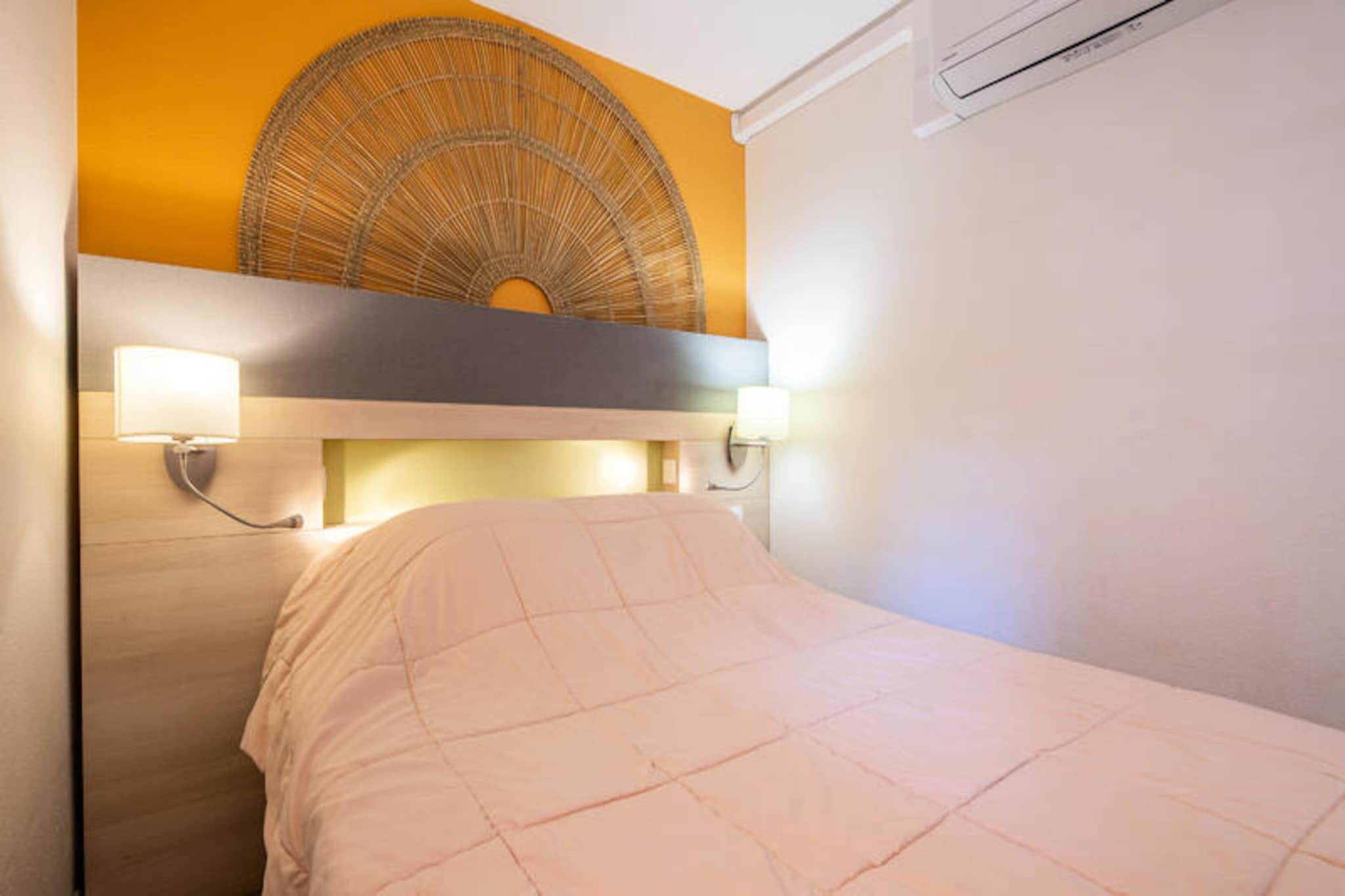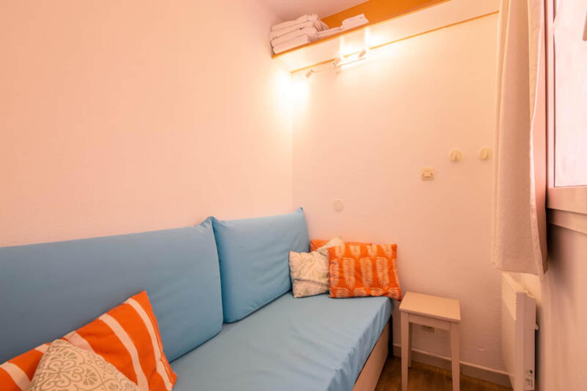 Denne charmerende lejlighed på 37 m² tilbyder et komfortabelt ophold med et soveværelse, et kabineområde med en dagseng og en rummelig stue med en sovesofa og en udtræksseng. Det er perfekt til familier eller små grupper. Ejendommen er kæledyrsvenlig, og gæsterne kan nyde bekvemmeligheden ved en dedikeret overdækket parkeringsplads. Lejligheden kan også prale af moderne bekvemmeligheder såsom et fladskærms-tv, elektriske håndklædetørrere og Wi-Fi-adgang (afhængigt af tilgængelighed). Den sikre bolig giver et afslappende miljø med en terrasse med havudsigt. Lejligheden er ideelt beliggende lidt over 500 m fra stranden, hvilket gør det nemt at nå havet til en sjov dag. Det omkringliggende område byder på adskillige caféer, butikker og markeder inden for en kort gåtur på 100-500 meter, som giver alt det nødvendige for et behageligt ophold. For familier er der flere attraktioner i nærheden, herunder en børneklub og temakurser, der sikrer underholdning for alle aldre. Indvendigt er lejligheden udstyret med et veldesignet køkken i amerikansk stil, komplet med spisebord og stole til to. Lejligheden indeholder to badeværelser, det ene med bruser og det andet med badekar. Den overdækkede terrasse mod øst tilbyder et roligt sted at slappe af, mens du nyder havudsigten.
