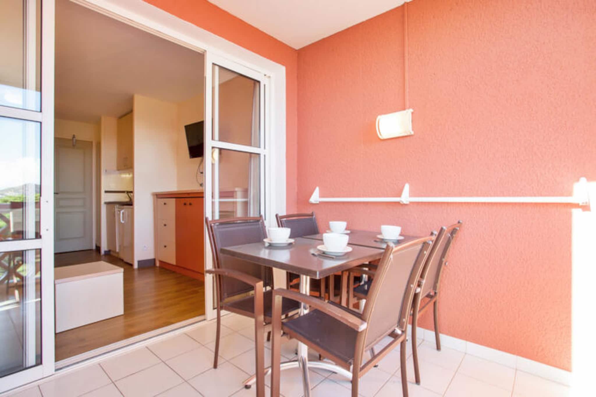Denne charmerende lejlighed på 27 m², beliggende på øverste etage, er designet til komfort med et soveværelse med en dobbeltseng og en stue udstyret med to sovesofaer, den ene med en udtræksseng, perfekt til familier eller små grupper. Ejendommen er kæledyrsvenlig og tillader kæledyr efter forudgående aftale. Gæsterne kan nyde en møbleret balkon med dejlig udsigt og have adgang til overdækket parkering i boligen. Yderligere faciliteter inkluderer Wi-Fi (afhængig af tilgængelighed) og tv, afhængigt af boligen. Beliggende kun 1 km fra stranden, er denne lejlighed ideelt beliggende i nærheden af ??cafeer, butikker og markeder, alle inden for gåafstand. The Little Train giver nem adgang til Agay Bay og Dramont Beach, perfekt til en dag ved havet. Ejendommen ligger også i en landsby, der tilbyder forskellige familievenlige aktiviteter, såsom en børneklub og temakurser, samt en teenageklub for større børn, der sikrer underholdning for alle aldre. Indvendigt har lejligheden et åbent køkken med et spisebord og fem stole, ideel til at tilberede og nyde måltider sammen. Badeværelset er udstyret med badekar, og der er separat toilet for ekstra bekvemmelighed. Boligen tilbyder også en ladestation til elbiler og valgfrie boblebade i landsbyen, hvilket forbedrer det samlede ophold.
