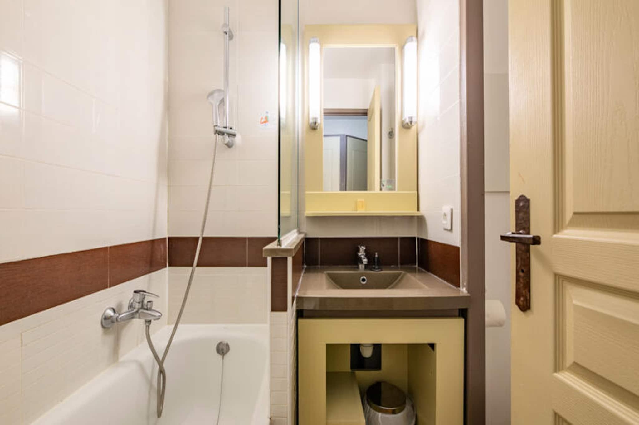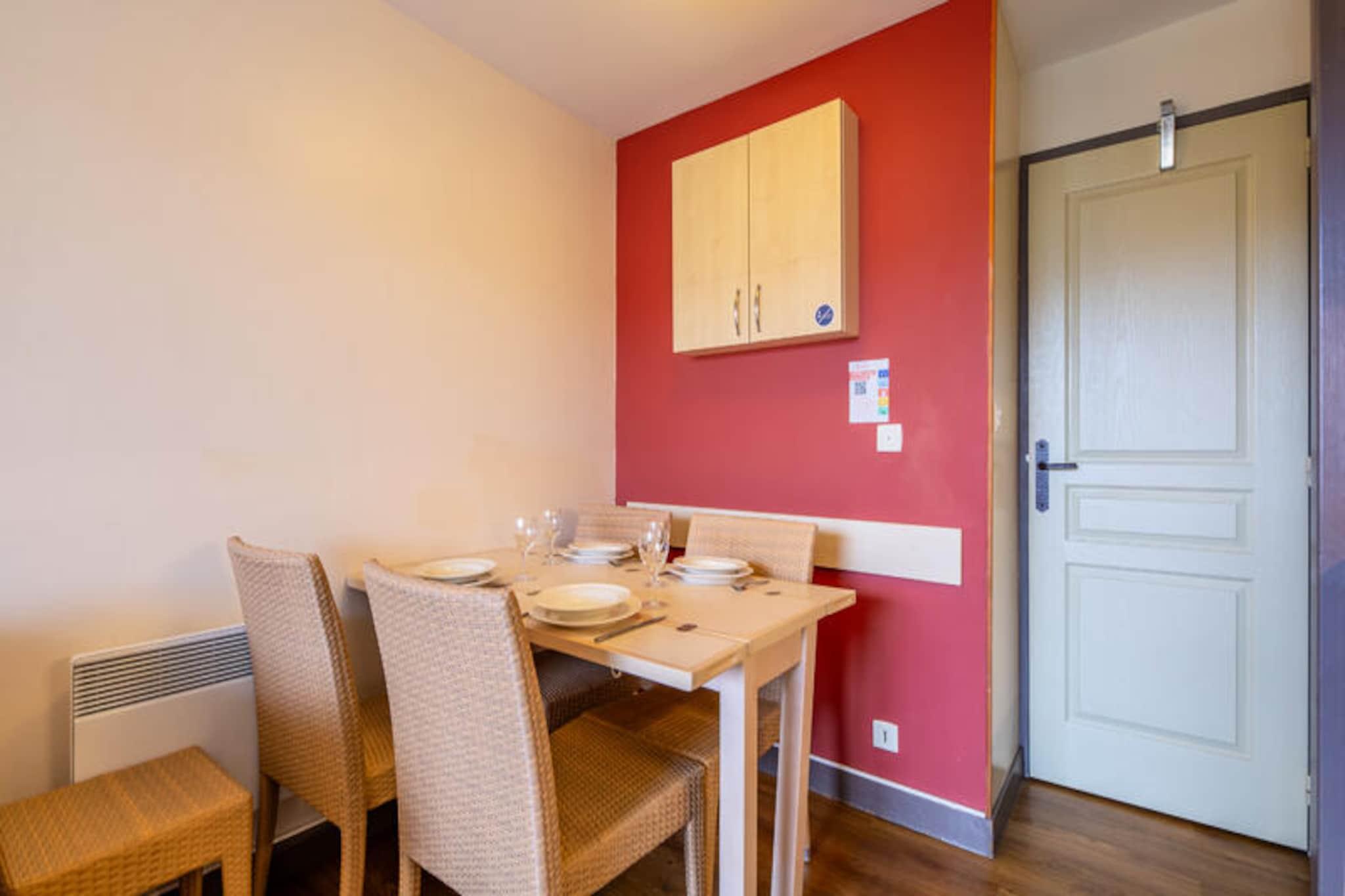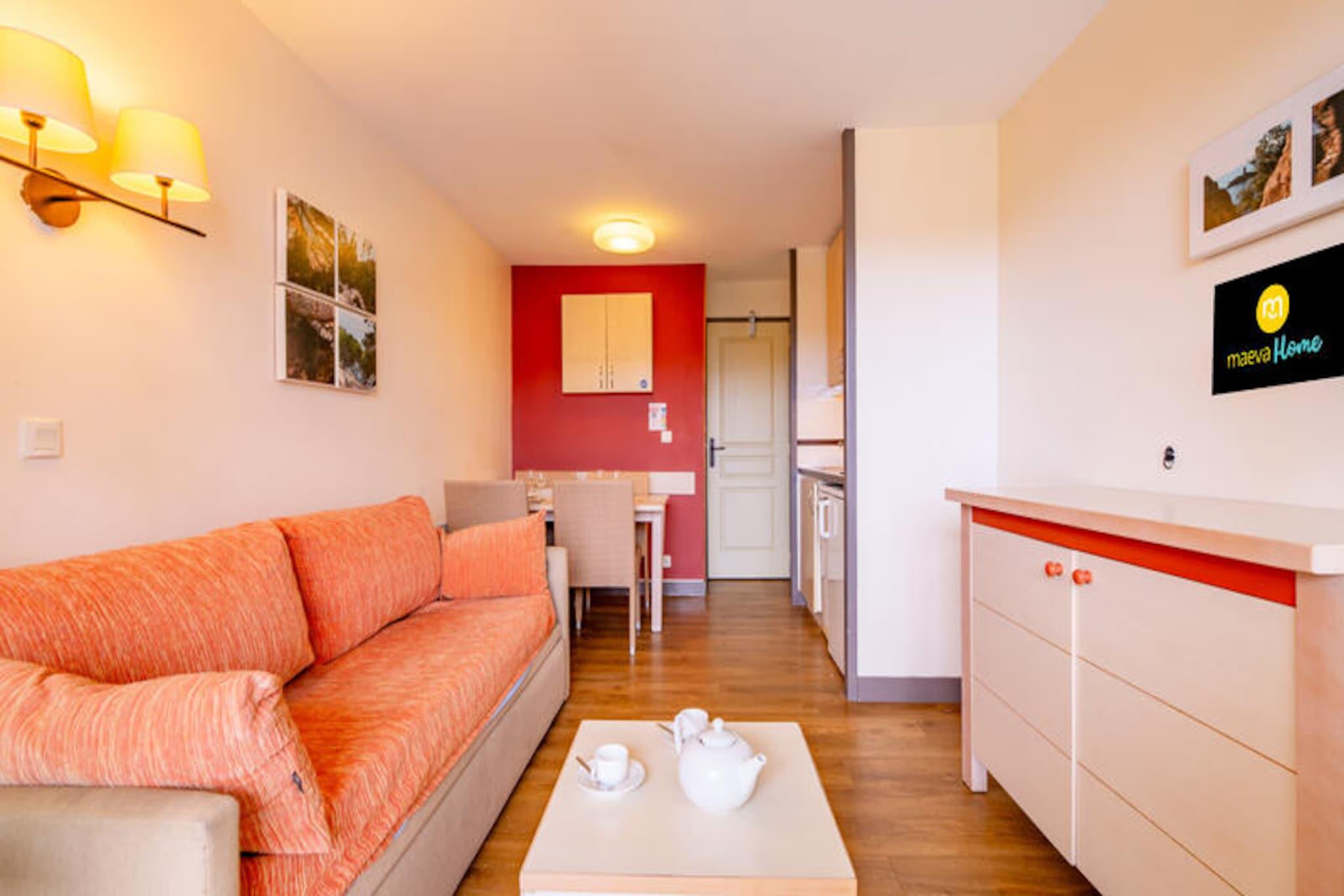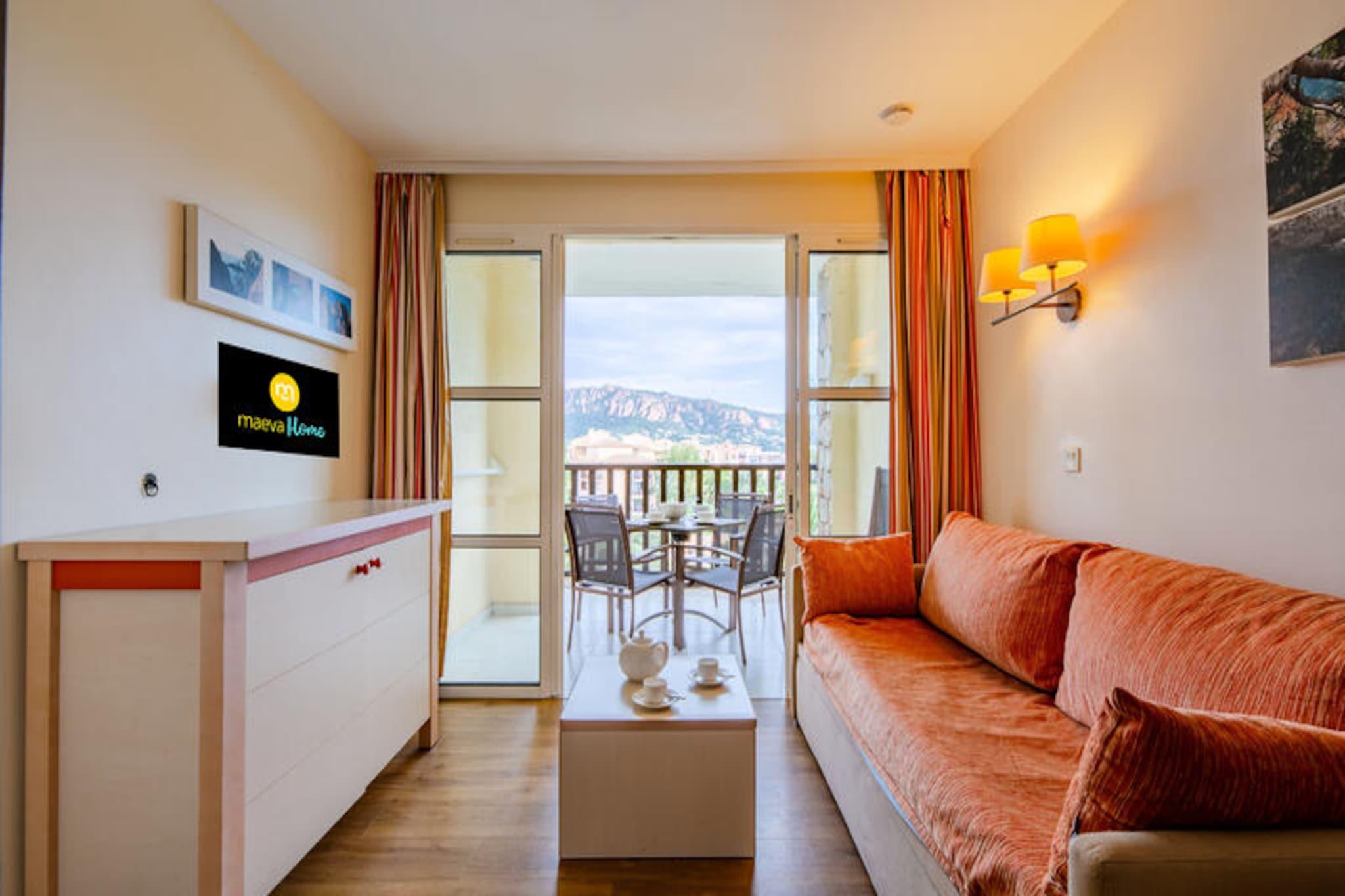 Denne charmerende lejlighed på 26 m² er perfekt til en familieferie, og tilbyder et komfortabelt opholdsrum på første sal. Stuen er udstyret med en sovesofa og en udtræksseng, der giver rigelig siddeplads til gæsterne. Lejligheden indeholder et kabineområde med to køjesenge, ideel til børn. For ekstra bekvemmelighed er kæledyr tilladt, og der er Wi-Fi-adgang (afhængig af tilgængelighed). Ejendommen har også en overdækket terrasse med en fantastisk havudsigt, en elektrisk håndklædetørrer på badeværelset og en ladestation til elbiler. Denne lejlighed ligger lidt over 500 meter fra stranden og er omgivet af en række nærliggende attraktioner. Du finder caféer, butikker og aktiviteter inden for 100 meter, perfekt for dem, der ønsker at udforske lokalområdet. The Little Train tilbyder hurtig adgang til nærliggende strande såsom Agay Bay og Dramont Beach, hvilket gør det nemt at tilbringe en dag ved Middelhavet. Landsbyens centrum byder på grønne områder, barer, restauranter og underholdning for alle aldre, herunder en børneklub og temaaktiviteter. Indvendigt har lejligheden et åbent køkken med en opsætning i amerikansk stil, komplet med et spisebord og fire stole. Køkkenet er udstyret med opvaskemaskine, mens badeværelset har badekar og separat toilet. Lejligheden er velholdt og tilbyder komfort og lethed for dit ophold.