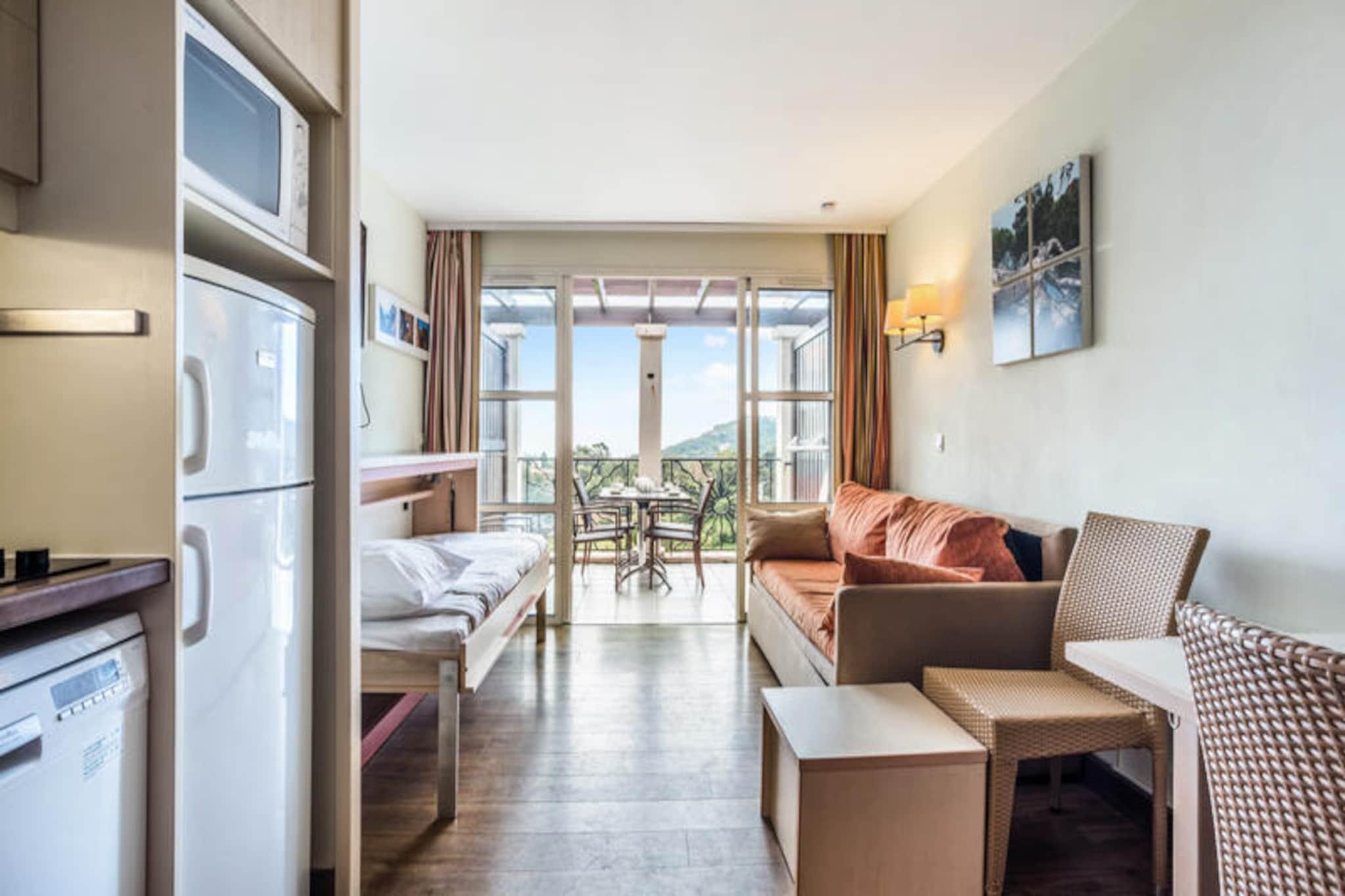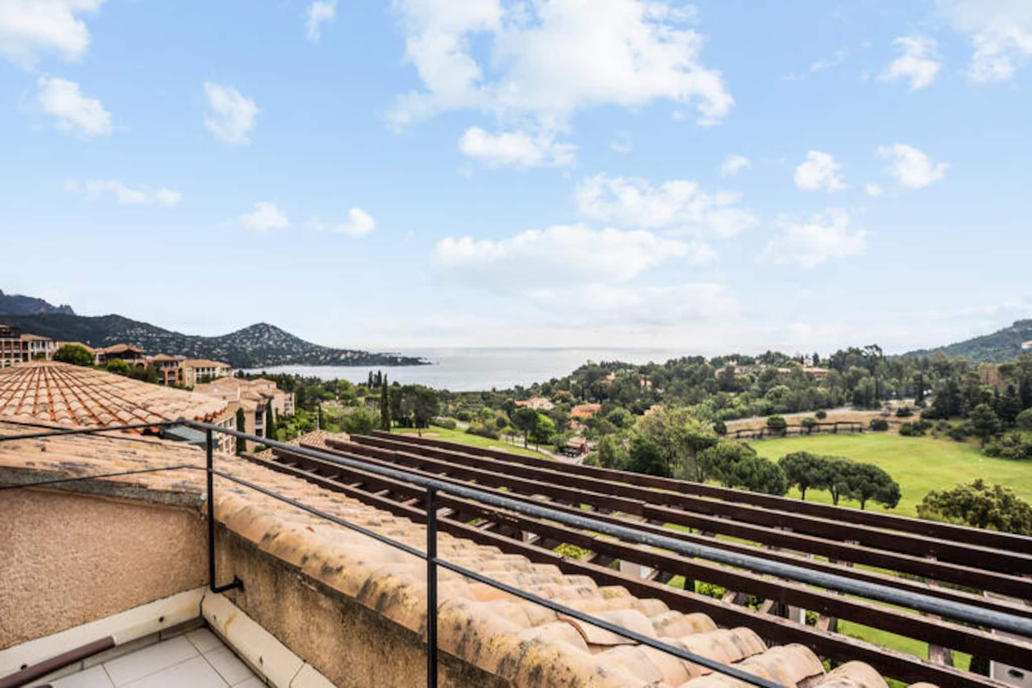 Denne duplex-lejlighed på 38 m², beliggende på 2. sal, tilbyder et komfortabelt opholdsrum med en sovesofa, to lænestole, og en spiseplads med bord og stole. Soveværelset har en dobbeltseng med et solarium, der tilbyder en fantastisk udsigt over havet, golfbanen og Dramont. For yderligere sovearrangementer inkluderer kabineområdet to enkeltkøjesenge. Lejligheden er kæledyrsvenlig, og trådløs internetadgang er tilgængelig mod et tillægsgebyr. Beliggende mindre end 1 km fra stranden, er dette feriehus perfekt placeret for strandelskere, med hurtig adgang til Agay Bay og Dramont-stranden via et lille tog. Det omkringliggende område kan prale af et udvalg af butikker, caféer og restauranter, alle inden for gåafstand, hvilket sikrer et livligt og bekvemt ophold. Ejendommen tilbyder også adgang til Esterel Forme Center, hvor gæsterne kan slappe af i et spabad for en afslappende oplevelse. Lejligheden har et åbent køkken, der er fuldt udstyret til tilberedning af måltider. Stuen flyder ud i spisepladsen og skaber et hyggeligt rum til sammenkomster. Der er to badeværelser - et med bruser og toilet, og et andet med badekar og toilet - som giver alle de nødvendige faciliteter for komfort. Lejligheden har også et solarium med storslået udsigt, perfekt til at slappe af efter en dag med aktiviteter.
