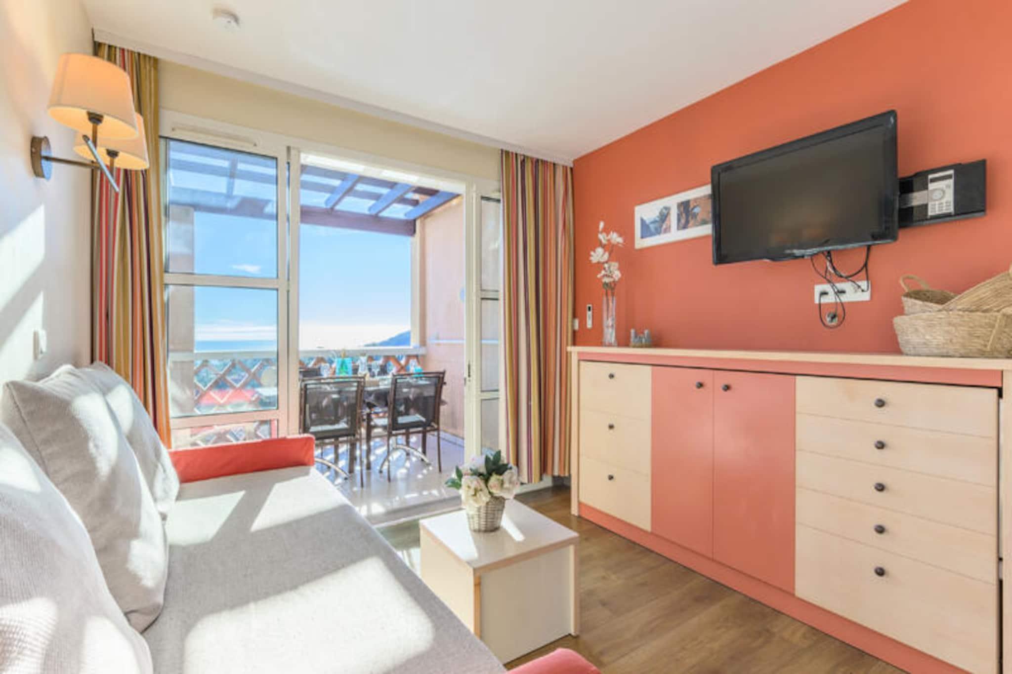 Denne charmerende 36 m² store ferielejlighed, beliggende på første sal, har en hyggelig stue med en sovesofa og en enkeltseng, ideel til en familie eller en lille gruppe. Soveværelset har en komfortabel dobbeltseng, mens kabineområdet med dør indeholder to køjesenge. Kæledyr er tilladt, og trådløs internetadgang er tilgængelig mod et ekstra gebyr. Til lejligheden hører også en parkeringsplads for bekvemmelighed. Lejligheden ligger mindre end 500 meter fra den nærmeste strand og er omgivet af livlige butikker, caféer og restauranter, alle inden for 100 meter. Gæsterne kan nyde nem adgang til lokale aktiviteter, hvilket gør det til et ideelt sted for både afslapning og eventyr. Placeringen tilbyder også en lille tog-service, der giver hurtig adgang til nærliggende attraktioner som Agay Bay og Dramont-stranden. Ejendommen har et fuldt udstyret køkken i amerikansk stil med et spisebord og seks stole. Det omfatter også to badeværelser, det ene med bruser og det andet med badekar, begge med elektriske håndklædetørrere. Lejligheden har en balkon med udsigt over landsbyen og en terrasse med havudsigt, perfekt til udendørs afslapning. Yderligere faciliteter omfatter en vaskemaskine og en opvaskemaskine for ekstra bekvemmelighed.