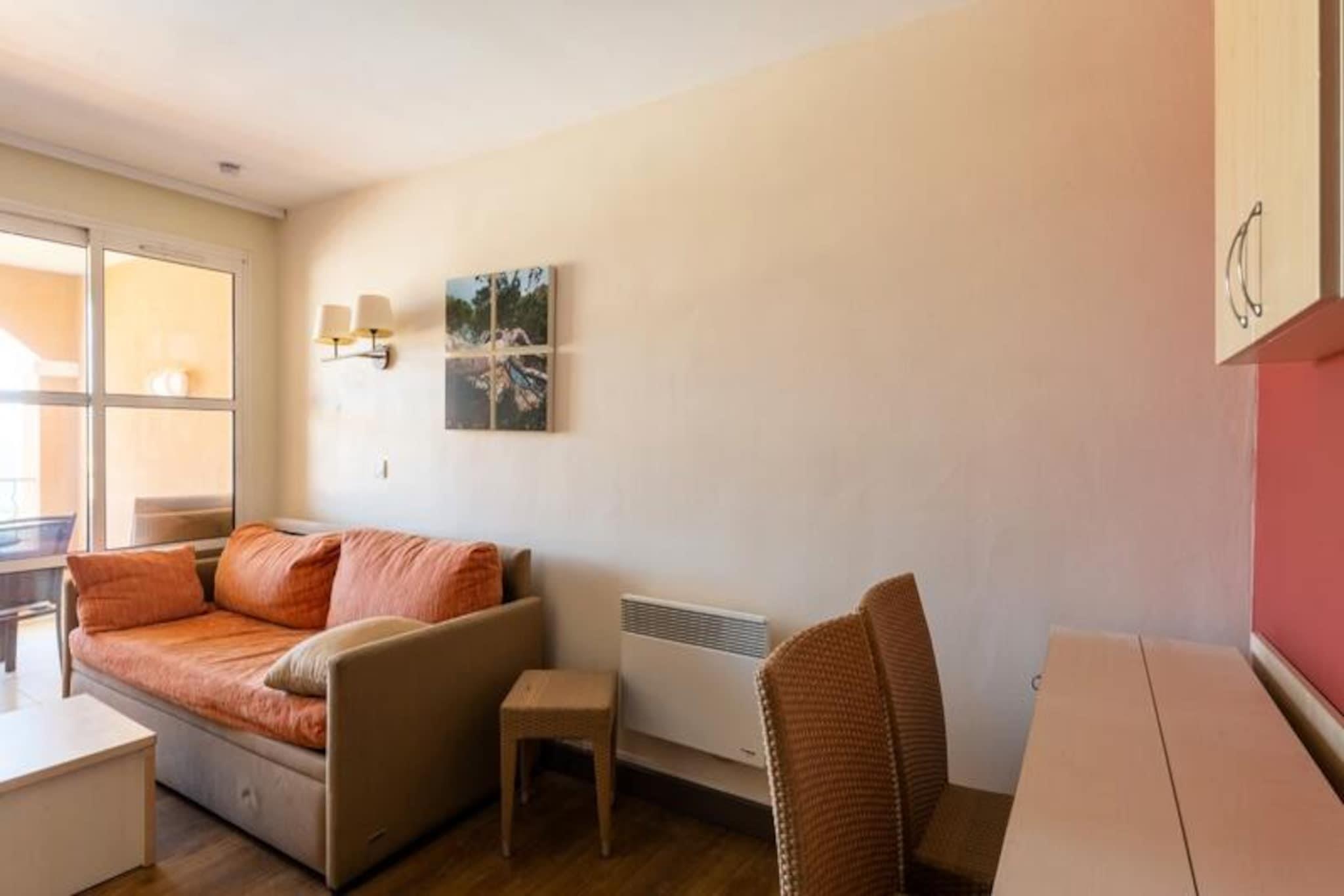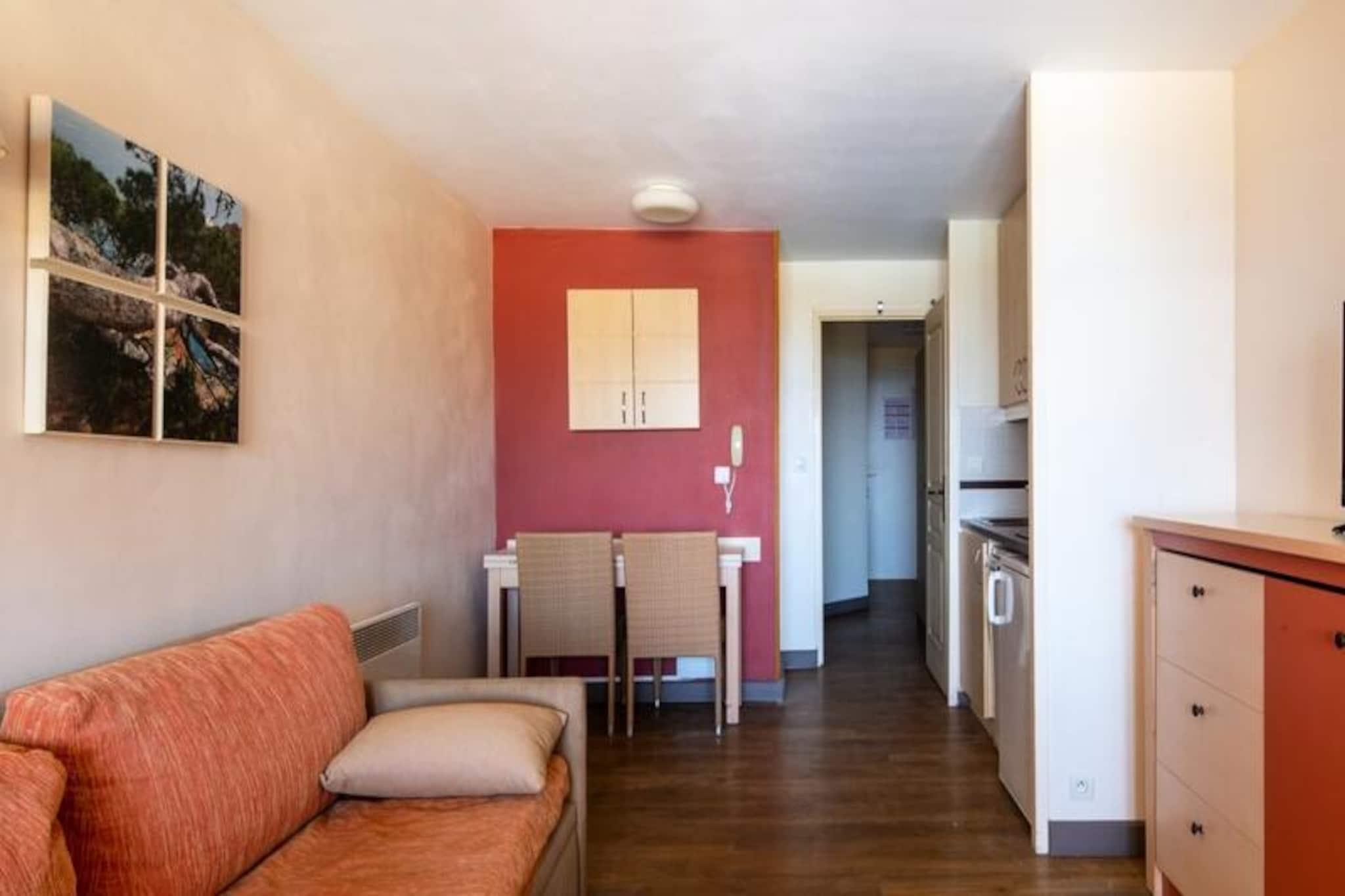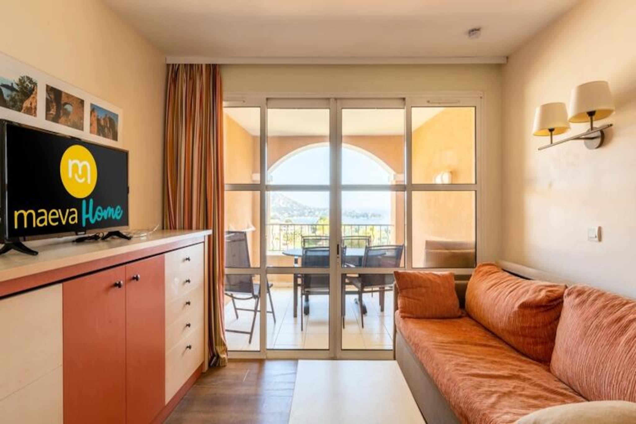 Denne charmerende lejlighed på 28 m², beliggende på anden sal, tilbyder komfortabel indkvartering med en stue med en sovesofa til 2 personer og et separat soveværelse med en dobbeltseng. Ejendommen er kæledyrsvenlig, med forudgående aftaler for dem, der rejser med kæledyr. Lejligheden giver også adgang til Wi-Fi, selvom det er tilgængeligt mod et ekstra gebyr og afhængigt af tilgængelighed. Der er en udækket parkeringsplads til rådighed, og boligen byder på ladestandere til elbiler. Gæsterne kan også nyde spabade placeret ved Esterel Forme Centre i landsbyen. Beliggende kun 1 km fra den fantastiske Agay Bay og Dramont Beach, tilbyder denne lejlighed den perfekte balance mellem fred og bekvemmelighed. Gæster kan nemt få adgang til disse strande ved hjælp af det lille tog, som kører i højsæsonen. I nærheden vil besøgende finde et udvalg af caféer, restauranter og butikker i området sammen med grønne områder til afslapning. Børn kan nyde landsbyens forskellige temakurser og klubber, mens større børn kan udforske teenagerklubben for alderssvarende aktiviteter. Inde i lejligheden er køkkenet åbent til stuen og er udstyret til at tilberede måltider, med et spisebord med plads til 4. Badeværelset har en badekar-bruser-kombination, og et separat toilet er også tilvejebragt for ekstra bekvemmelighed. Rengøring kan arrangeres til slutningen af ??dit ophold, med mulighed for at gøre det selv eller bestille en service ved indtjekning.