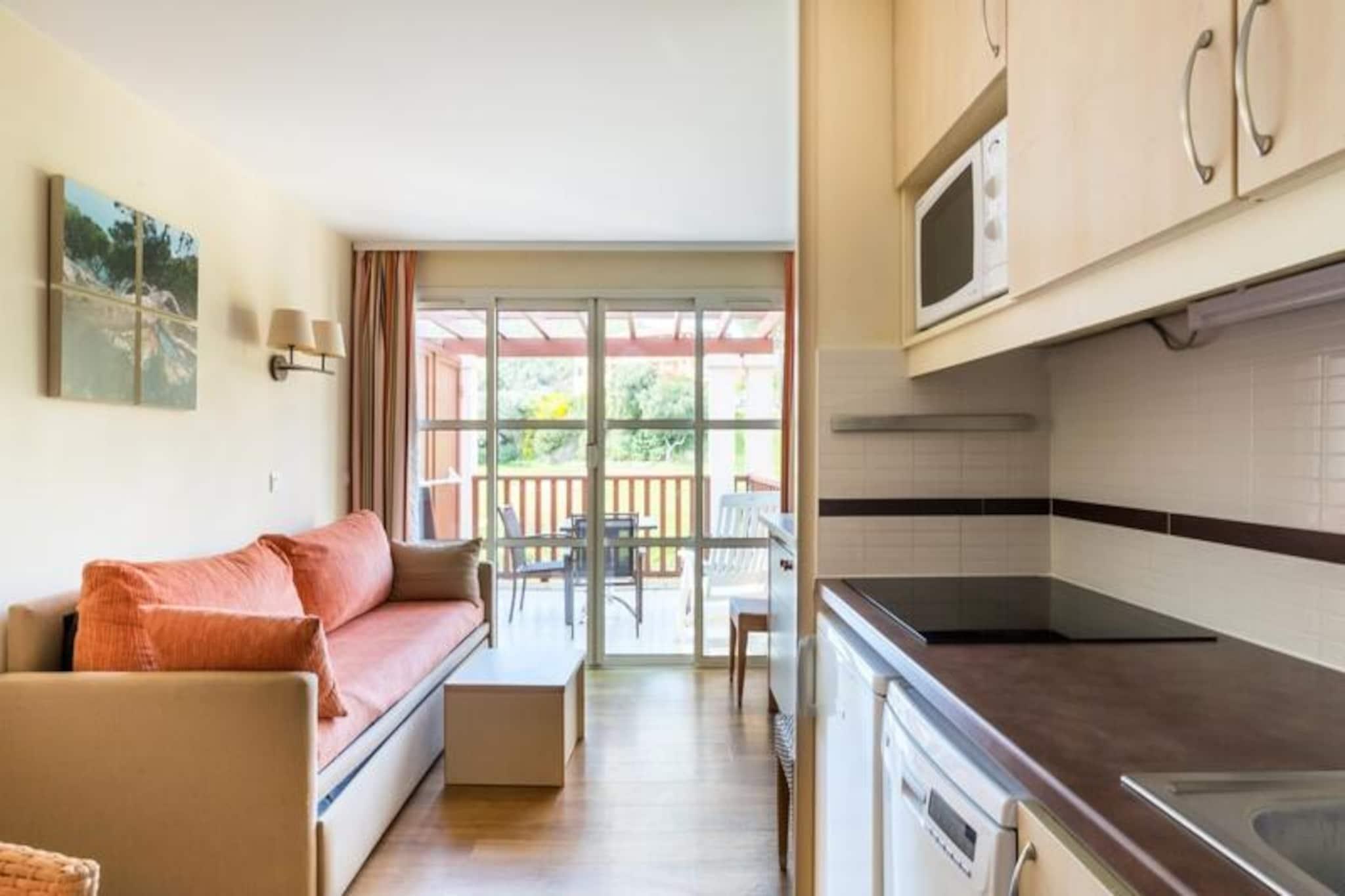 Denne 24 m² store ferielejlighed, beliggende på anden sal, tilbyder et hyggeligt oase med en stue med en sovesofa, der kan rumme 2 gæster, samt et kabineområde med køjesenge. Ejendommen er kæledyrsvenlig, med forudgående aftaler påkrævet. Gæsterne kan nyde trådløs internetadgang mod et tillægsgebyr og kan parkere deres køretøjer på en udpeget overdækket parkeringsplads. Ladestationer til elbiler er også tilgængelige i landsbyen. For ekstra komfort er slutrengøring obligatorisk, og der opkræves tillægsgebyrer for sengelinned og håndklæder. Lejligheden ligger kun 1 km fra Agay-bugten og Dramont-stranden, som tilbyder nem adgang til Middelhavets fantastiske kystlinje. Den omkringliggende landsby er hjemsted for en række faciliteter, herunder barer, restauranter, butikker og grønne områder. Gæsterne kan også drage fordel af landsbyens børneklub, med forskellige tematiske kurser til rådighed, samt en teenageklub, der tilbyder alderssvarende aktiviteter. Det Lille Tog giver hurtig transport til stranden, der kører fra april til september. Lejligheden indeholder et veludstyret køkken i åbent plan, perfekt til at tilberede måltider, og en spiseplads med bord til 3 gæster. Badeværelset har en kombination af badekar-bruser med toilet. En privat balkon er tilgængelig for afslapning, hvilket giver det ideelle sted at slappe af efter en dag med udforskning.
