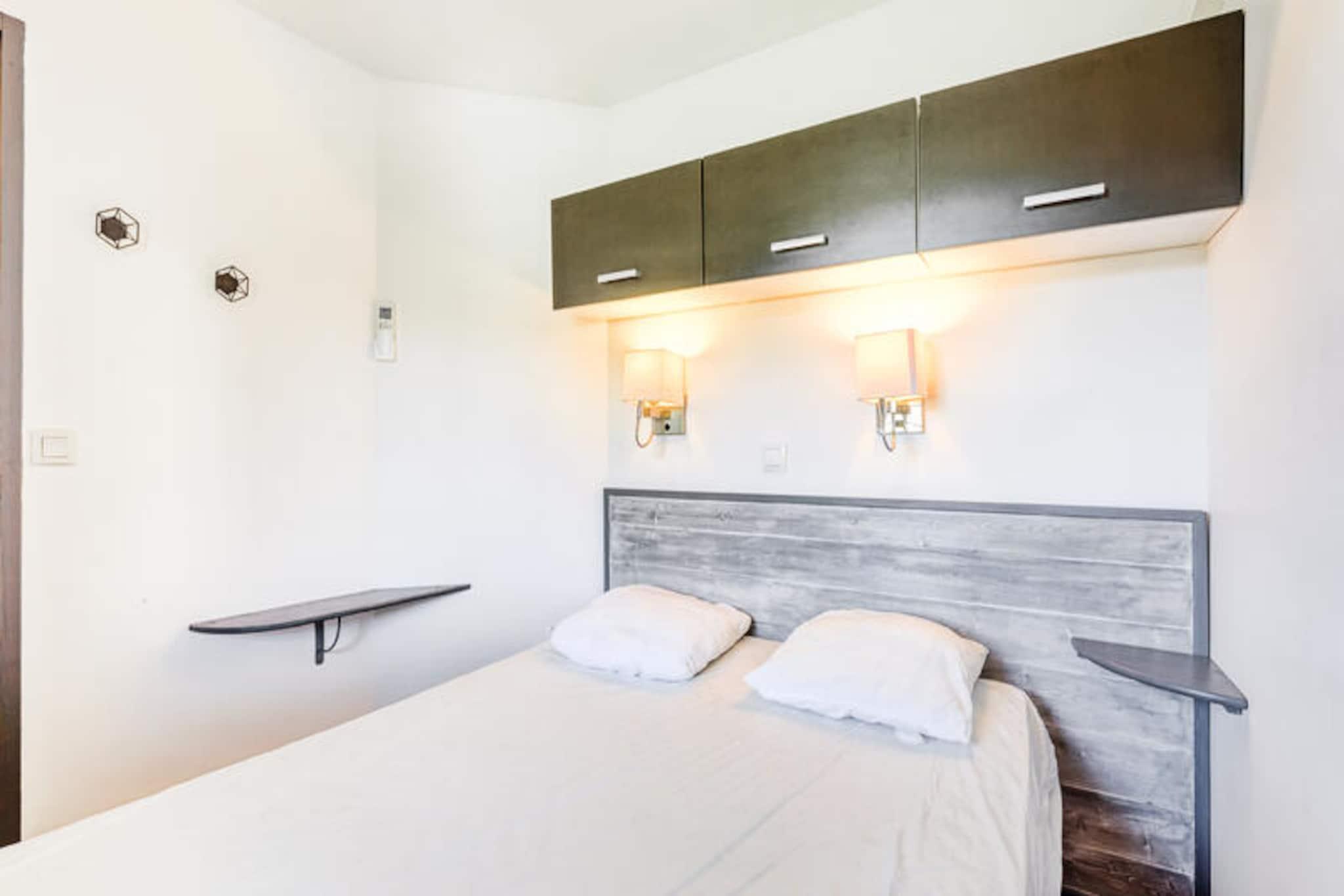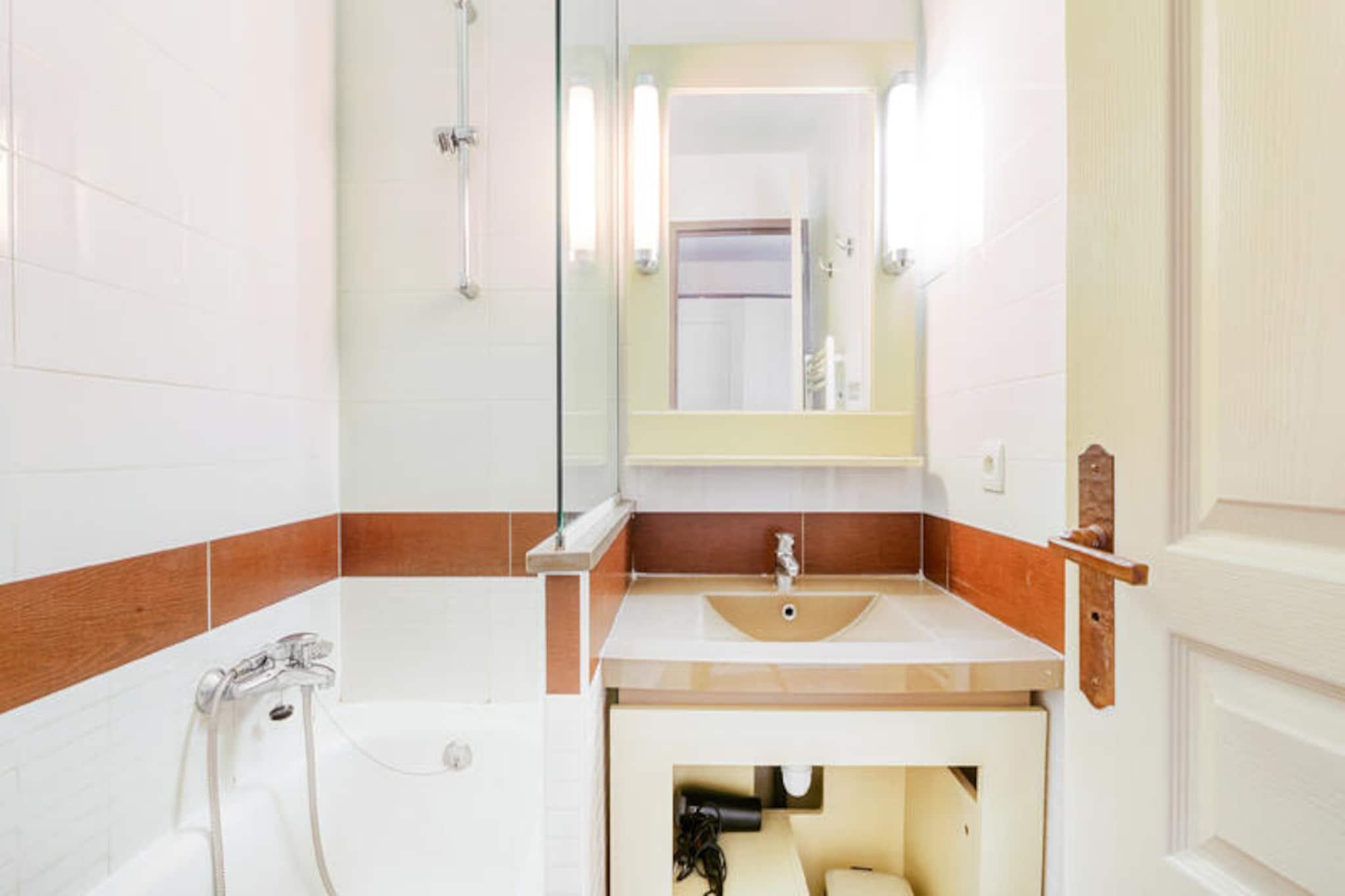 Denne lejlighed på 27 m² er ideel til op til 5 gæster og byder på et komfortabelt soveværelse med en dobbeltseng, en stue med en sovesofa og en udtræksseng samt en balkon med en fantastisk havudsigt. Ejendommen er kæledyrsvenlig, hvilket sikrer, at dine lodne ledsagere kan tage med dig på din ferie. Med en dedikeret parkeringsplads og nem adgang til faciliteter er denne lejlighed perfekt til et afslappende ophold. Gæsterne kan nyde brugen af ??boligens swimmingpools, selvom adgangen afhænger af den valgte bolig. Beliggende i landsbyens centrum, er denne lejlighed kun 100 meter væk fra lokale virksomheder, caféer og markeder, hvilket gør det nemt at nyde det lokale køkken og shopping. Den nærmeste strand ligger mere end 500 meter væk, og der er en praktisk lille tog-service til rådighed for adgang til Agay Bay og Dramont-stranden. De pulserende omgivelser byder også på en række aktiviteter, der sikrer, at der er noget for enhver smag. Lejligheden indeholder et køkken i amerikansk stil med et spisebord og fire stole, perfekt til at tilberede måltider under dit ophold. Badeværelset er veludstyret og byder på et badekar med en søjle, en elektrisk håndklædetørrer og en hårtørrer. For ekstra bekvemmelighed er der en stikkontakt i nærheden af ??spejlet, og der er et separat toilet.