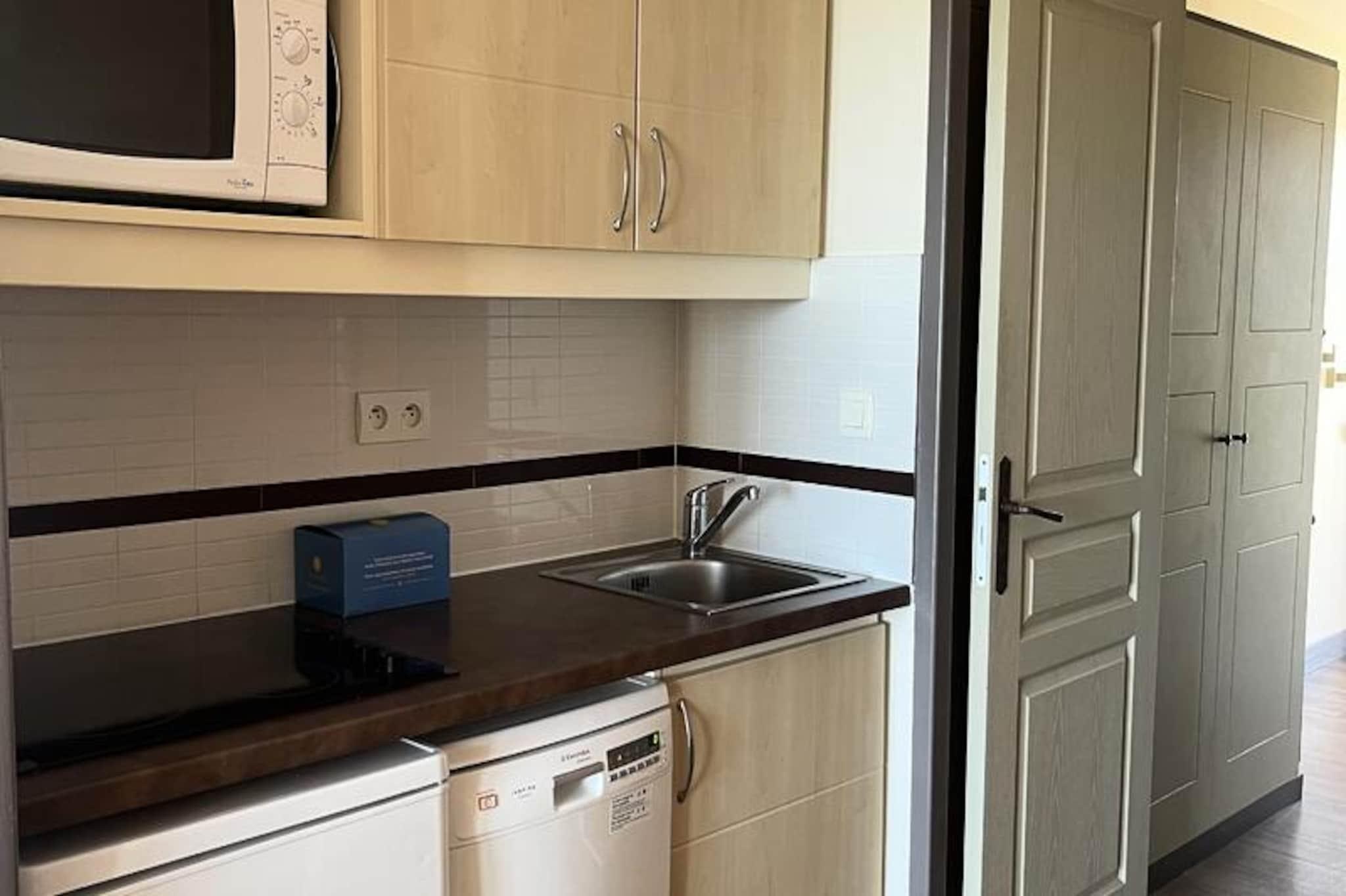 Denne lejlighed på 28 m² tilbyder komfortabel indkvartering for op til 5 personer med en stue med to sovesofaer og en udtræksseng. Soveværelset er indrettet med dobbeltseng og tv. Gæsterne vil nyde bekvemmeligheden ved en sydvendt balkon med havudsigt. Ejendommen er kæledyrsvenlig og tillader kæledyr på forespørgsel. Der er en dedikeret parkeringsplads til rådighed, og lejligheden har også WiFi (afhængigt af tilgængelighed) og et spabad mod et tillægsgebyr. Lejligheden er beliggende i et pulserende landsbycentrum, godt 500 meter fra havet. Butikker, caféer og restauranter ligger inden for gåafstand, mens en lille tog-service giver hurtig adgang til nærliggende strande, herunder Agay Bay og Dramont Beach, som ligger 1 km derfra. Gæsterne kan også nyde forskellige aktiviteter inden for 100 meter fra ejendommen, herunder swimmingpools, en børneklub og temakurser for alle aldre. Indvendigt indeholder lejligheden et moderne amerikansk køkken med bord og fire stole, perfekt til spisning. Badeværelset har et badekar med en søjle, og et separat toilet tilføjer bekvemmelighed. Yderligere faciliteter omfatter en elektrisk håndklædetørrer og en stikkontakt i nærheden af ??spejlet. Gæsterne vil også sætte pris på tilgængeligheden af ??en balkon, hvor de kan slappe af med udsigt over de omkringliggende bjerge.