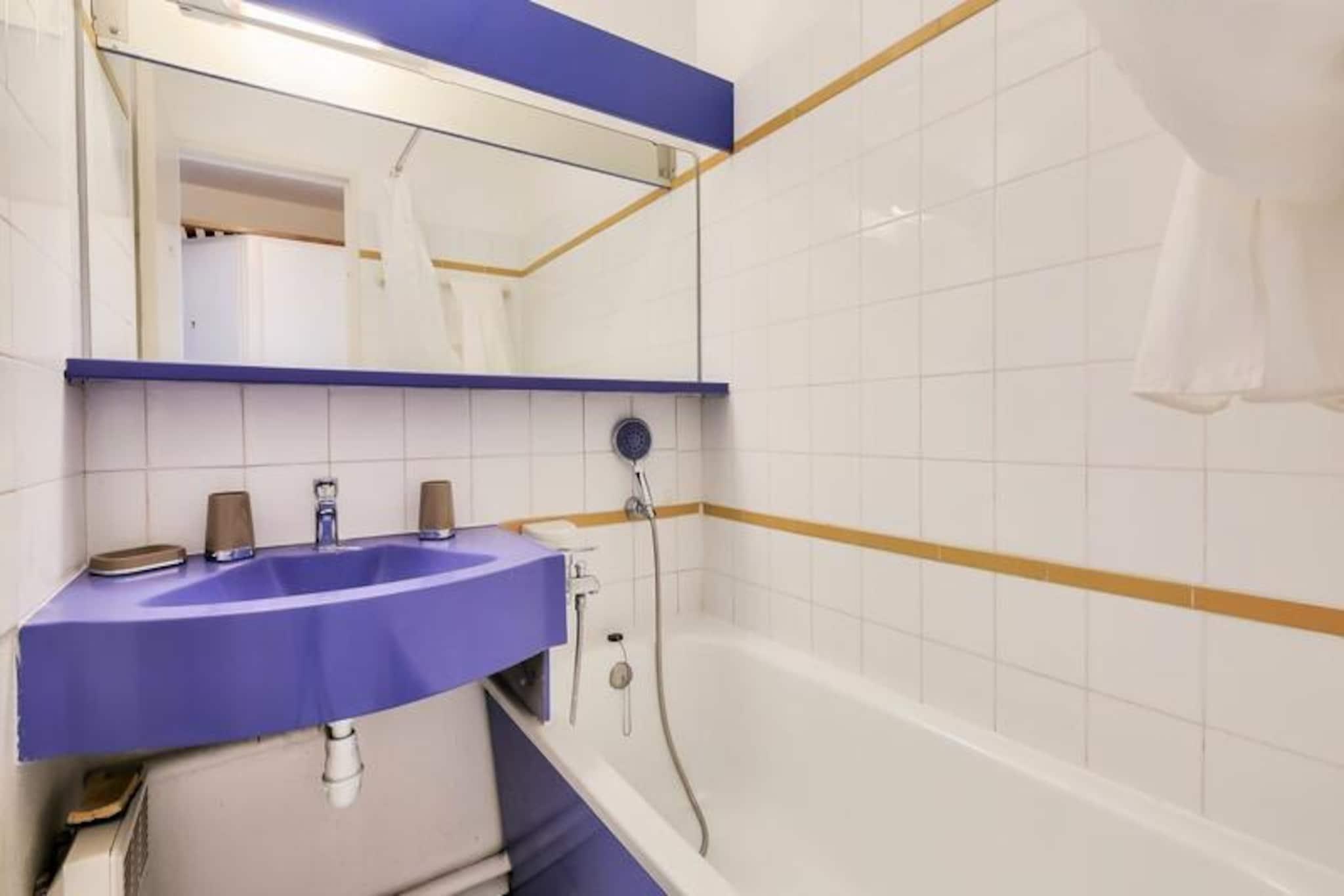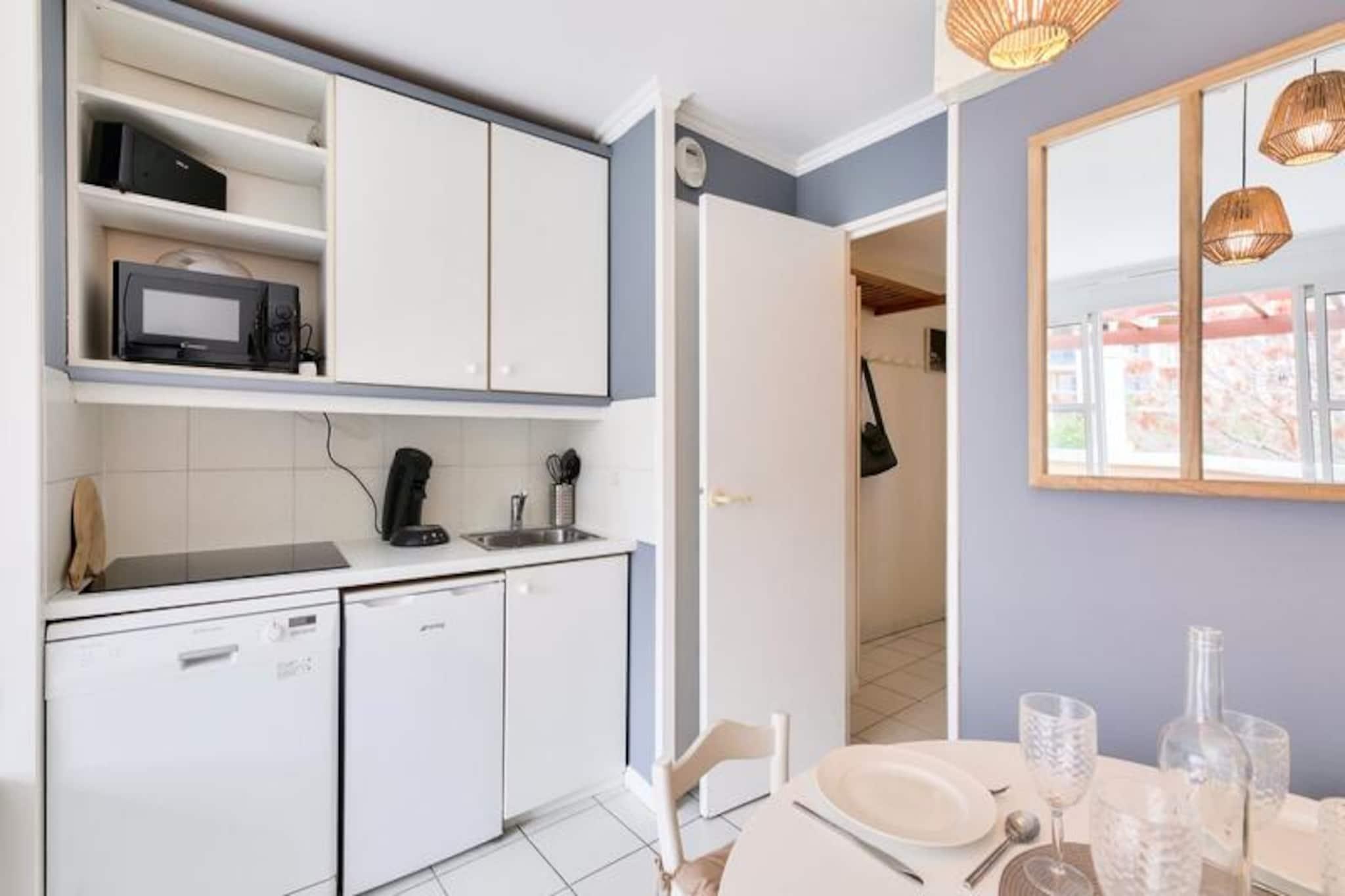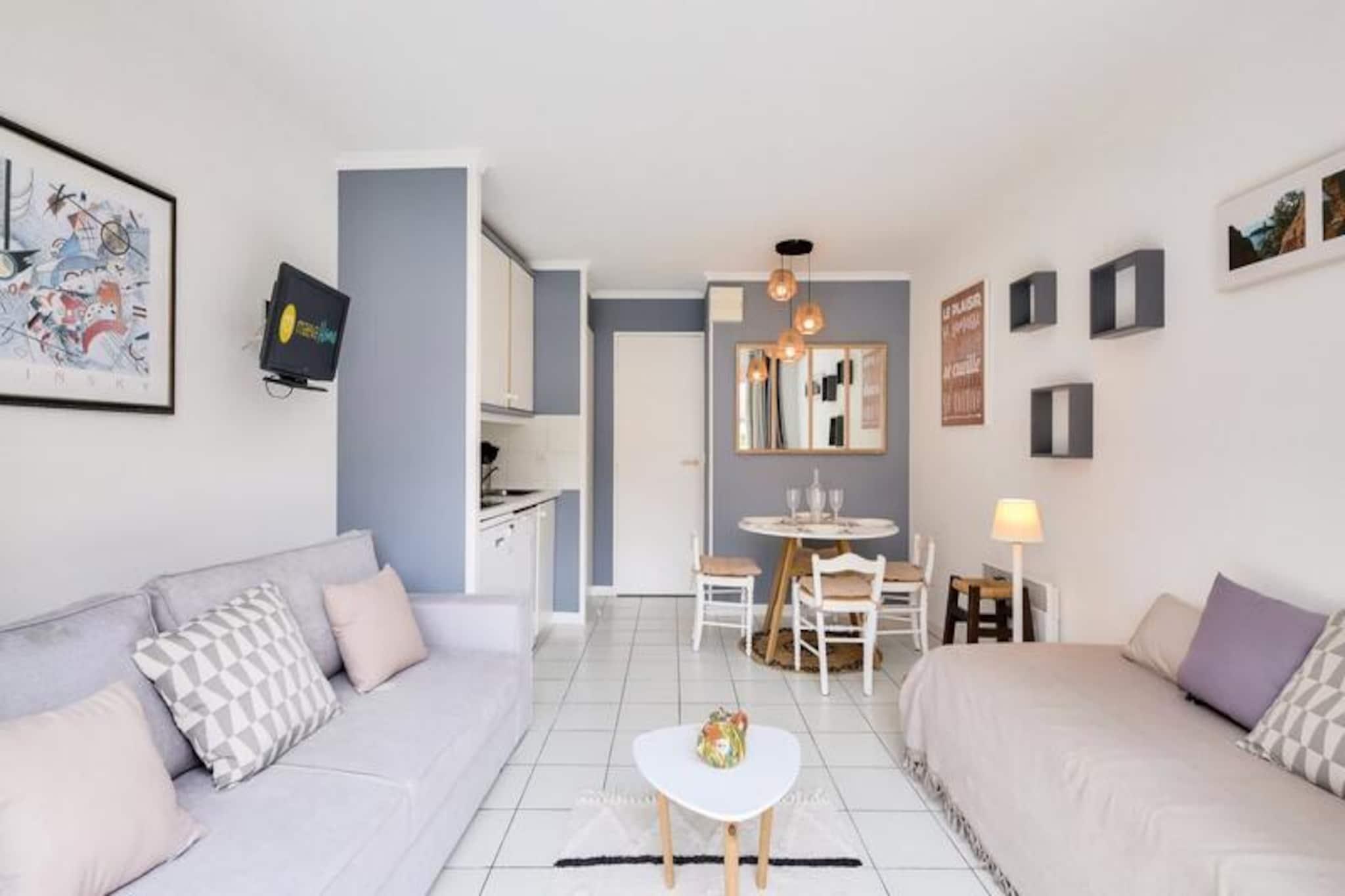 Denne charmerende studielejlighed kan rumme op til fire gæster og tilbyder et hyggeligt sovearrangement med to sovesofaer i stuen og en køjeseng i et kabineområde. Ejendommen er kæledyrsvenlig, så du kan tage dine lodne ledsagere med på turen. Gæsterne kan nyde en udækket vestvendt balkon, perfekt til at slappe af udendørs, og bekvemmeligheden ved en dedikeret udendørs parkeringsplads i nærheden. Lejligheden ligger i det pulserende landsbycentrum og er omgivet af et livligt udvalg af caféer, butikker og restauranter inden for 100 til 500 meter. For strandelskere er Middelhavskysten over 500 meter væk, mens attraktioner som Agay Bay og Dramont Beach er let tilgængelige. Området byder også på forskellige aktiviteter og naturskønne stier, hvilket sikrer en dejlig oplevelse for gæster i alle aldre. Lejligheden har et køkken i amerikansk stil udstyret med et spisebord og plads til fire, hvilket gør madlavning og spisning enkel og behagelig. Badeværelset har badekar, mens et separat toilet giver ekstra bekvemmelighed. Med sin centrale beliggenhed og væsentlige faciliteter sikrer dette feriehus et behageligt og mindeværdigt ophold.