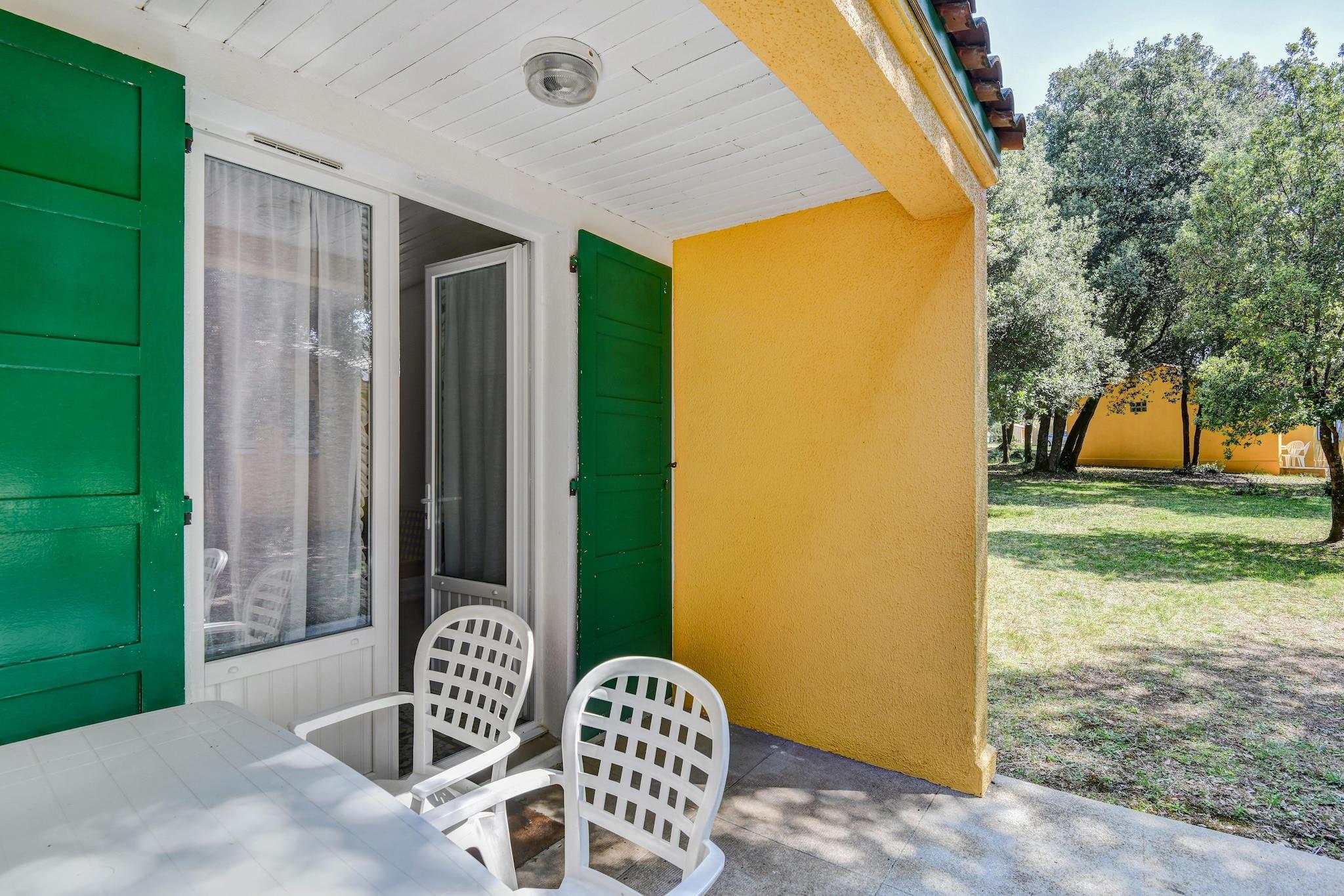 Stueetage: (Køkken(elkedel, mikrobølgeovn, køleskab), Stue/soveværelse(dobbeltfeltseng, spisebord), soveværelse(dobbeltseng eller 2 enkeltsenge Senge), soveværelse(køjeseng), badeværelse(bruser, håndvask, toilet)) Bubble bath(deles med andre gæster, betalt), sauna(deles med andre gæster, betalt), terrasse(privat), have, solstole, parkering, swimmingpool(deles med andre gæster, indhegnet, herunder en del for børn (maks. dybde 50 cm), opened from Apr upto and including Oct), petanquebane, legeredskaber, bordtennisbord, biljard, fitnessapparater(deles med andre gæster), hyggespil
