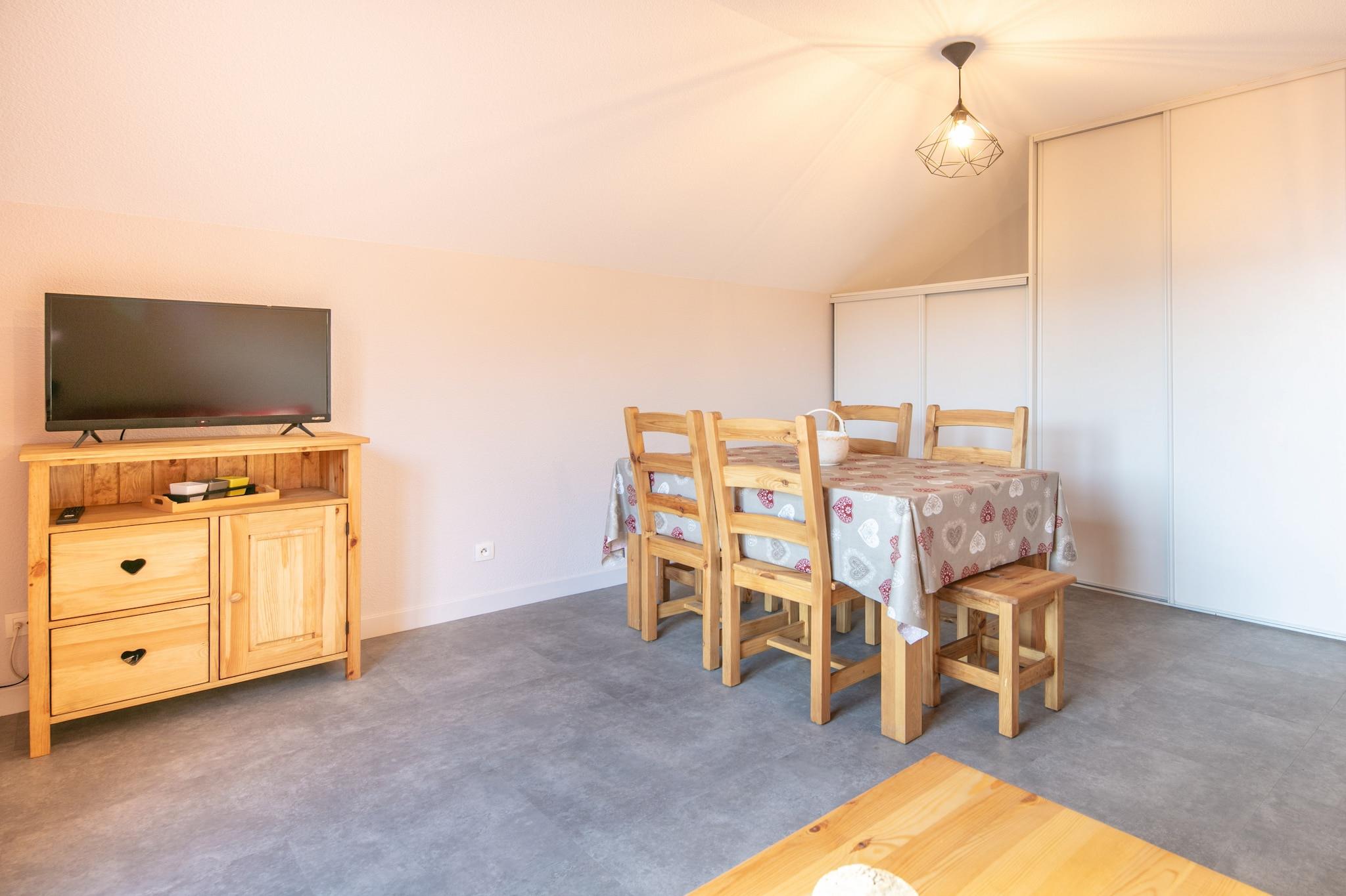 Beliggende i den naturskønne Résidence Le Hameau de l'Alpage, tilbyder denne 2-værelses lejlighed i Saint-Sorlin-d'Arves et hyggeligt og moderne oase for op til 6 gæster. Med 42 m² tankevækkende møbleret plads er den ideel til familier, der søger komfort i en bjergrig, familievenlig zone kun 200 m fra byens centrum og supermarked. Det fuldt udstyrede elektriske køkken inkluderer en mikrobølgeovn, ovn, opvaskemaskine, køleskab, kaffemaskine, kedel og alle nødvendige redskaber - perfekt til hjemmelavede måltider efter en dag på pisterne. Nyd alpine udsigter fra din private balkon, slap af i den fælles opvarmede swimmingpool og drag fordel af udendørs parkering i den tilstødende bygning. Lejligheden har elvarme, elevator og et tv til indendørs underholdning. Uanset om du er her for at stå på ski, vandre eller bare slappe af i Alperne, tilbyder denne lejlighed en varm og praktisk base med nem adgang til lokale faciliteter og udendørs eventyr.
