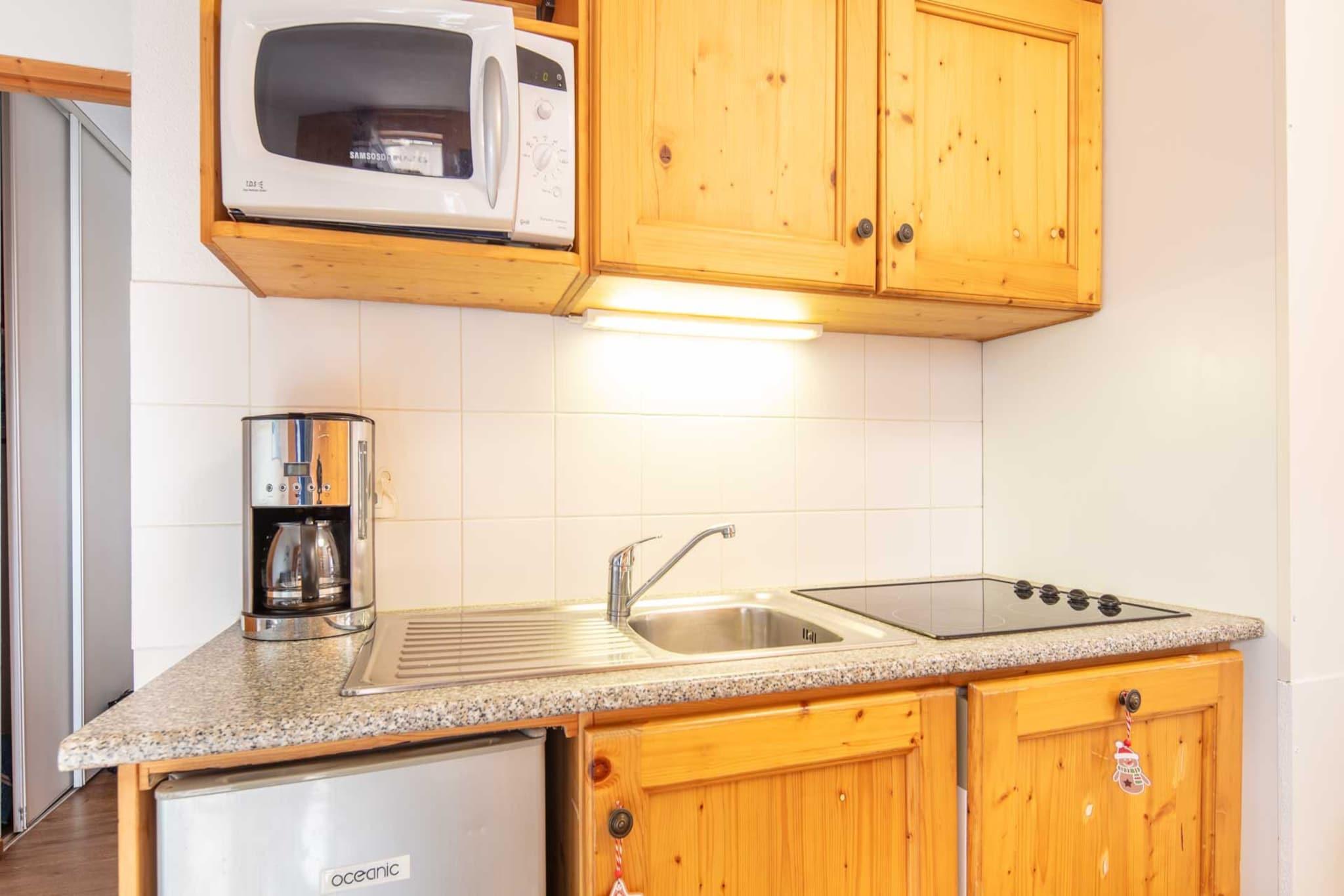 Beliggende i hjertet af Saint-Sorlin-d'Arves, tilbyder denne charmerende 25 m² store lejlighed et indbydende tilflugtssted for op til fire gæster. Det er designet til komfort og funktionalitet og har et hyggeligt soveværelse, en privat terrasse med udendørsmøbler og en naturskøn udsigt over bjergene, der inviterer til afslapning året rundt. Kun 38 meter fra skisportsstedet er beliggenheden ideel for vintersportsentusiaster. En lokal restaurant ligger kun 80 meter derfra, og Sherpa-supermarkedet ligger inden for 1 km, hvilket gør det nemt at spise og shoppe. Det fredelige, kæledyrsfrie miljø sikrer et rent og roligt ophold. Indenfor vil gæsterne finde elvarme, et tv og et fuldt udstyret åbent køkken med el-komfur, køleskab, mikroovn, opvaskemaskine og alt nødvendigt køkkengrej. Efter en dag på pisterne eller vandrestierne kan du slappe af i den opvarmede fælles swimmingpool for et strejf af alpin luksus. Uanset om du er her for at stå på ski, nyde det lokale køkken eller blot nyde bjergets charme, tilbyder denne lejlighed en komplet og hyggelig hjemmebase i de sydlige alper.