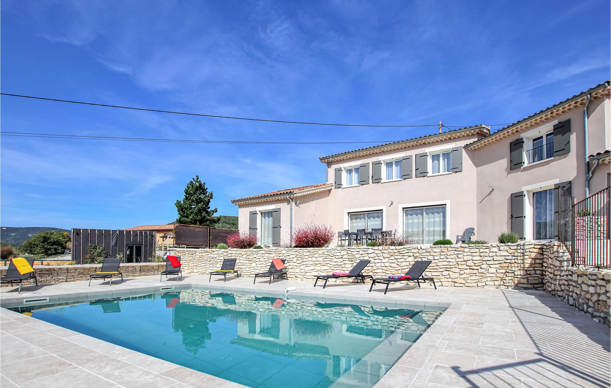Dette feriehus lader intet tilbage at ønske. Tilbring en vidunderlig, behagelig ferie her med en stor gruppe eller flere familier. Huset er nybygget og har 7 soveværelser og 6 badeværelser. Du kan tilbringe hyggelige aftener i den smukke stue med åbent køkken og spiseplads. Du kan også være ved poolen eller på en af ??terrasserne med havemøbler.