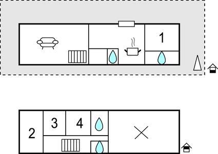 Soveværelse 11m2 (nr. 1) - 1 Soveplads. (Enkeltseng(e)). 2 Sovepladser. (Dobbeltseng(e)).