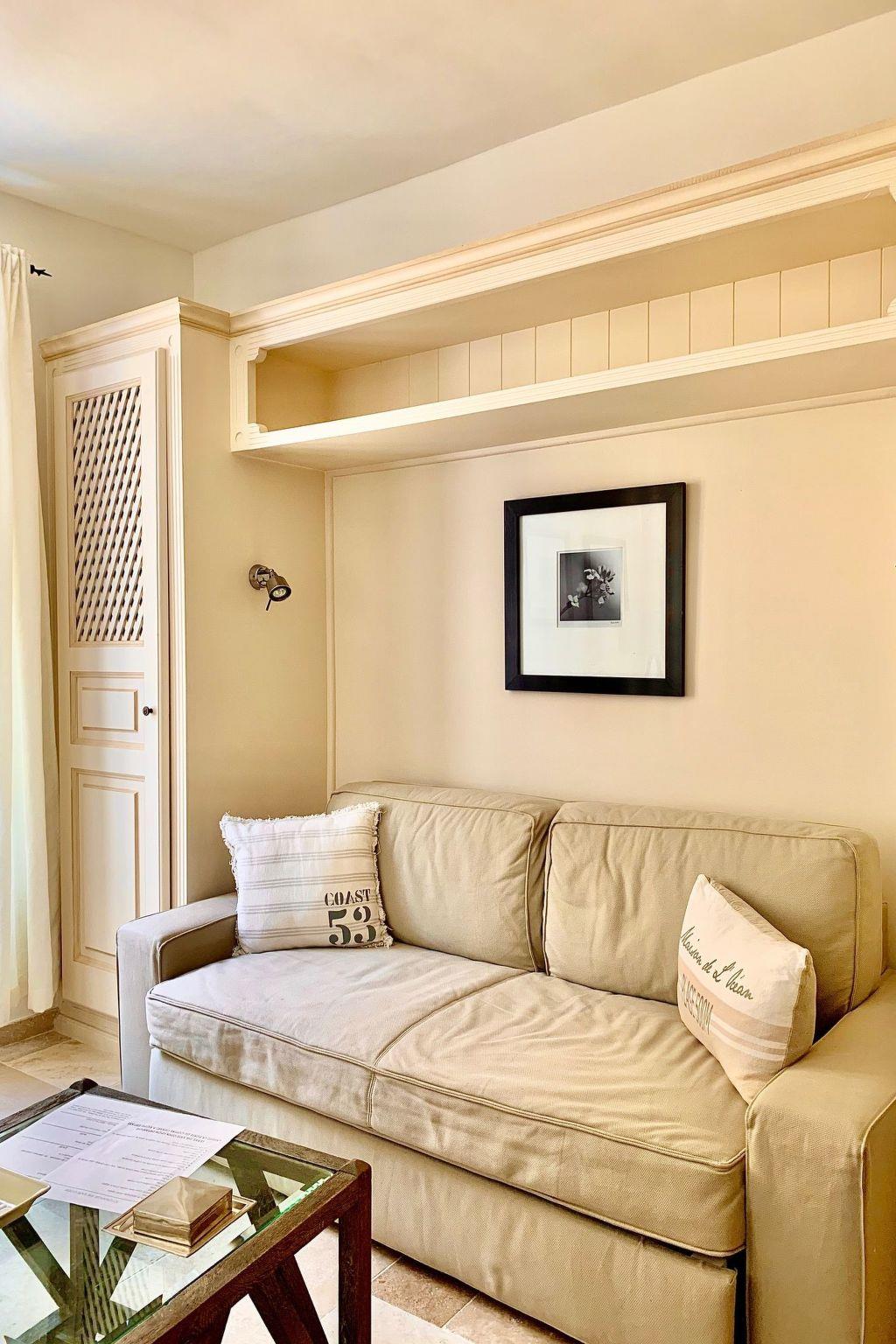In a charming, recently renovated, typically Provencal village house, discover this 46 m² flat on the first floor, right in the heart of the old town of Saint-Tropez. Bright and well-appointed, it features an open-plan living room with sofa bed, television, dining area for 4 and a well-equipped kitchen. The bedroom has a double bed and an en suite shower room with WC (only accessible from the bedroom). The flat can comfortably accommodate 3 adults or 2 adults with 2 children. Ideally located in a charming alleyway, right next to the famous church with its iconic dome, you'll be just a 2-minute walk from the port and within easy reach of restaurants, shops and galleries. Pay car parks (such as Nouveau Port and Parc des Lices) are around 7 minutes' walk away. A comfortable pied-à-terre full of character, where you can enjoy the Tropezian spirit to the full.
