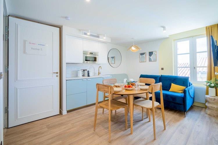 The flat is ideally located in the hyper centre of St Tropez, 3 minutes walk from the port. null The 54m2 apartment, located on the second floor without an elevator and spread across two levels, presents a modern and spacious configuration, carefully designed to provide a delightful stay. Here's a detailed overview of the features: Inviting Living Room: The welcoming living room serves as the heart of the space, featuring a sofa bed for moments of relaxation or accommodating additional guests. The layout of the living room is thoughtfully crafted to create a warm and friendly atmosphere, ideal for family gatherings or socializing with friends. Fully Equipped Kitchen: The modern kitchen is equipped with a refrigerator, oven, induction hob, toaster, coffee machine, kettle, microwave, and a washer-dryer. These high-quality appliances facilitate meal preparation, offering residents the flexibility to cook at their convenience. Comfortable Bedrooms: Two comfortable bedrooms, each furnished with a double bed (160x190), ensure restful nights. The two-level layout provides a sense of privacy, creating distinct spaces for optimal comfort. Practical Bathrooms: Two bathrooms with showers and WC each, providing additional convenience. This layout is particularly advantageous for groups or families, avoiding morning queues. Additional Amenities: Air Conditioning: A climate control system ensures a comfortable environment, suitable for all seasons. TV: A television for diverse entertainment, adding a touch of comfort after a busy day. Sheets and Towels Provided: The provision of sheets and towels simplifies the travel preparations for residents. This two-level apartment offers a unique experience, blending practicality and aesthetics. Whether for a family stay, with friends, or for business trips, this modern space caters to the varied needs of its residents. Enjoy an unforgettable stay in this well-appointed apartment.