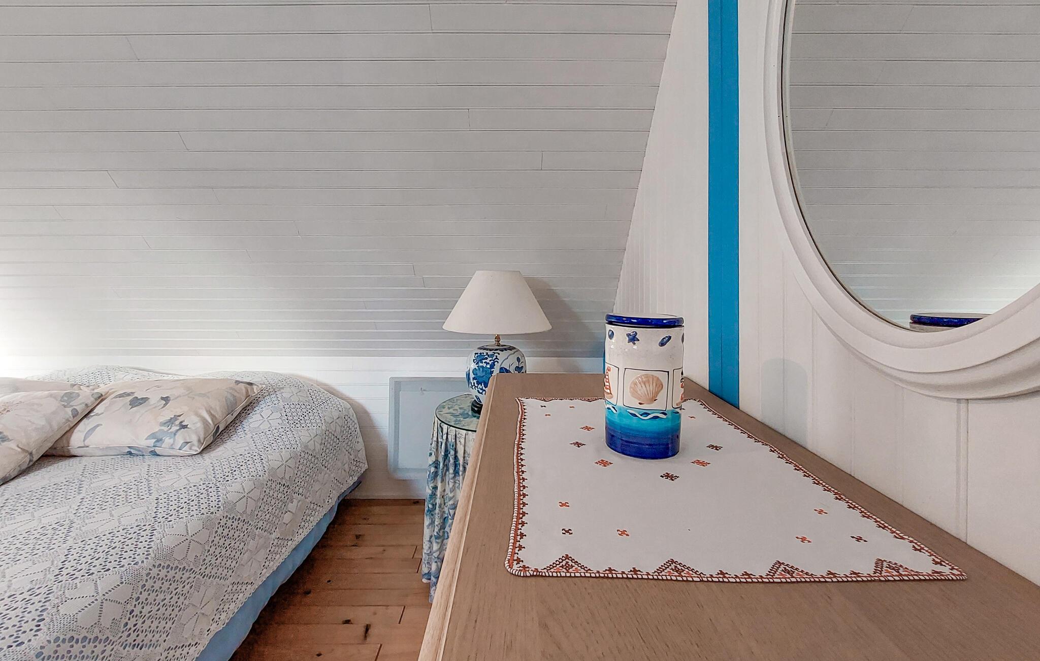 Dette charmerende feriehus i Saint-Tugdual er et sandt tilflugtssted for alle, der ønsker at opleve Bretagne. Med sine traditionelle bretonske møbler og en hyggelig, autentisk atmosfære inviterer det jer til at tilbringe afslappende dage. De rummelige værelser giver plads til hele familien, det være sig i stuen eller i det veludstyrede køkken. I haven kan I nyde roen i de landlige omgivelser, perfekt til en udendørs morgenmad eller afslappede aftener med bretonske delikatesser. Her føler man sig straks hjemme.