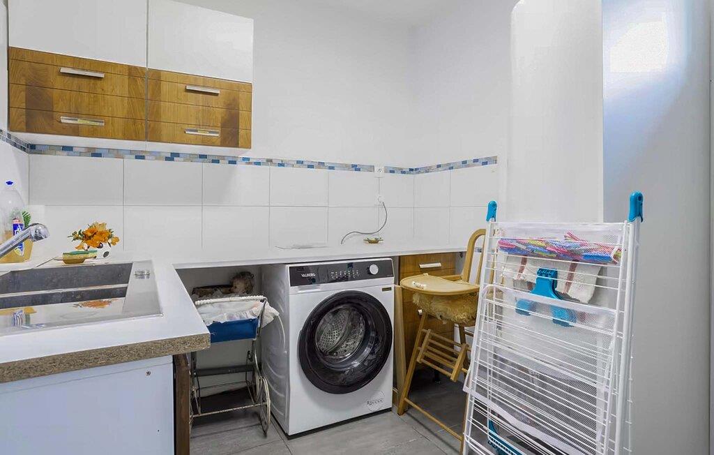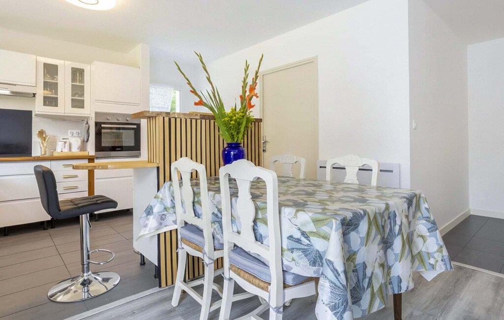 Den indbydende atmosfære gør jeres feriehus til et behageligt tilflugtssted. Sæt jer godt til rette i den komfortable sofa i det åbne opholdsområde og nyd afslappende timer med udsigt over haven. Brug tv-området til rolige aftener og tilbered jeres måltider i køkkenet med rigelig bordplads og apparater af høj kvalitet. Find sammen omkring det tilstødende spisebord og planlæg jeres udflugter.