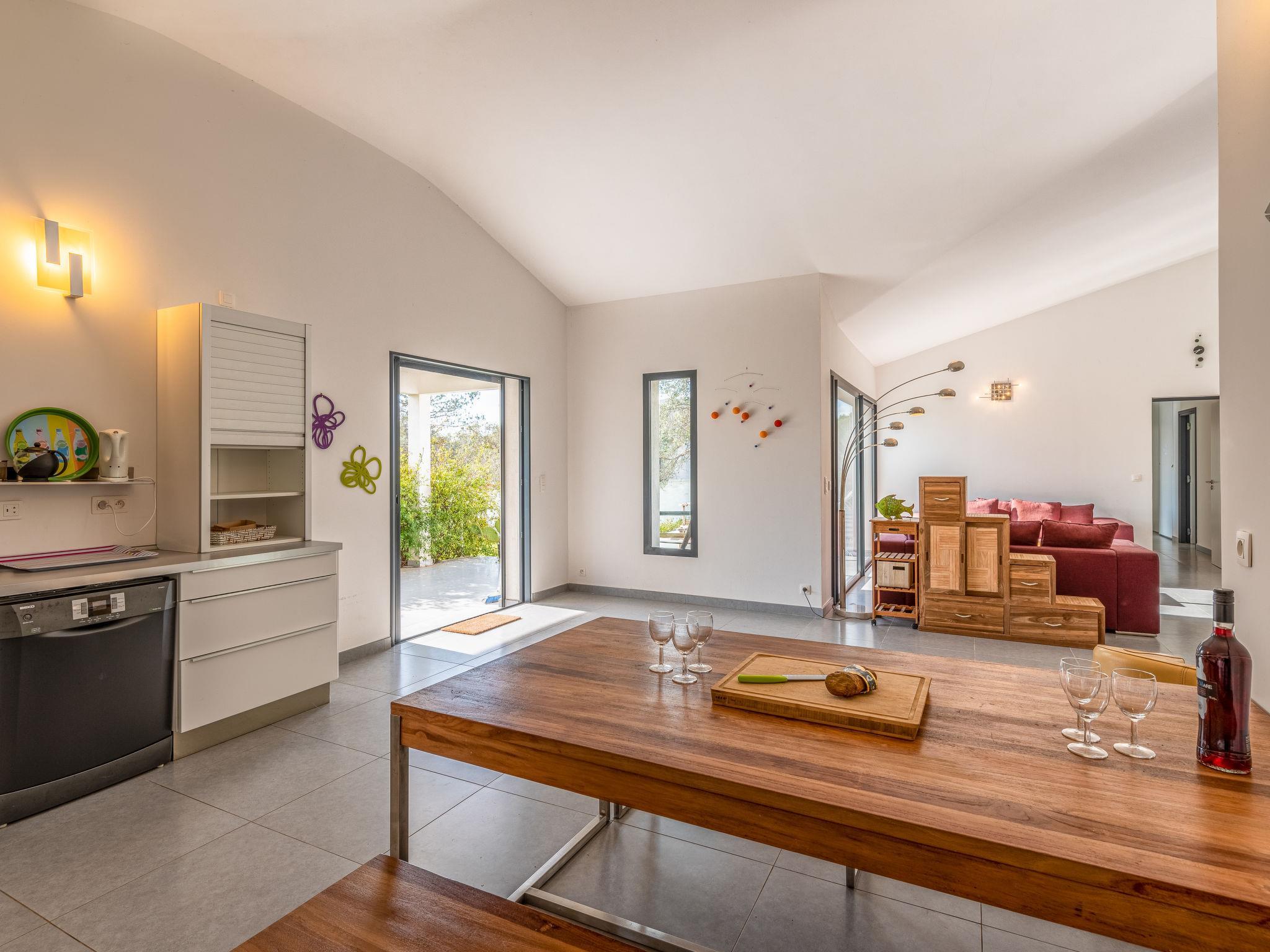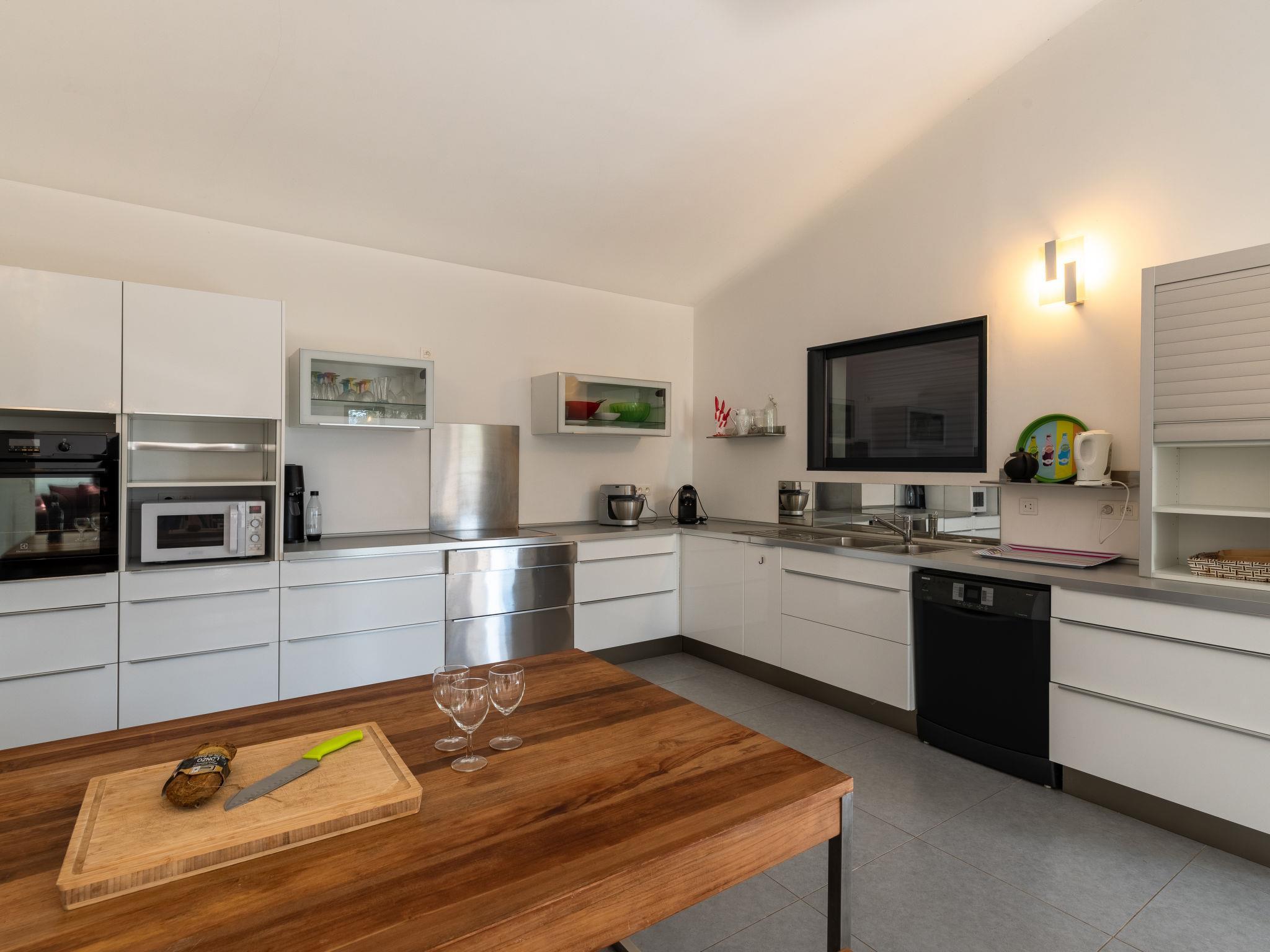 "Villa Fautea", 5-room villa 150 m2. Spacious, comfortable furnishings: living room with separate WC and TV (flat screen). Exit to the terrace. 3 rooms with panoramic window, each room with 1 double bed (160 cm, length 190 cm), bath/shower. Exit to the terrace. 1 room with 1 double bed and bath/WC. Exit to the terrace. Open kitchen (oven, dishwasher, 4 induction hot plates, kettle, microwave, electric coffee machine) with dining table. Exit to the terrace. Electric heating, air-conditioning. Large terrace 120 m2, east facing position. Terrace furniture, barbecue, deck chairs (6). Facilities: washing machine, dryer. Internet (WiFi, free). Please note: non-smoking house. Smoke alarm. Offer by a private individual according to Art. 155, IV of CGI.