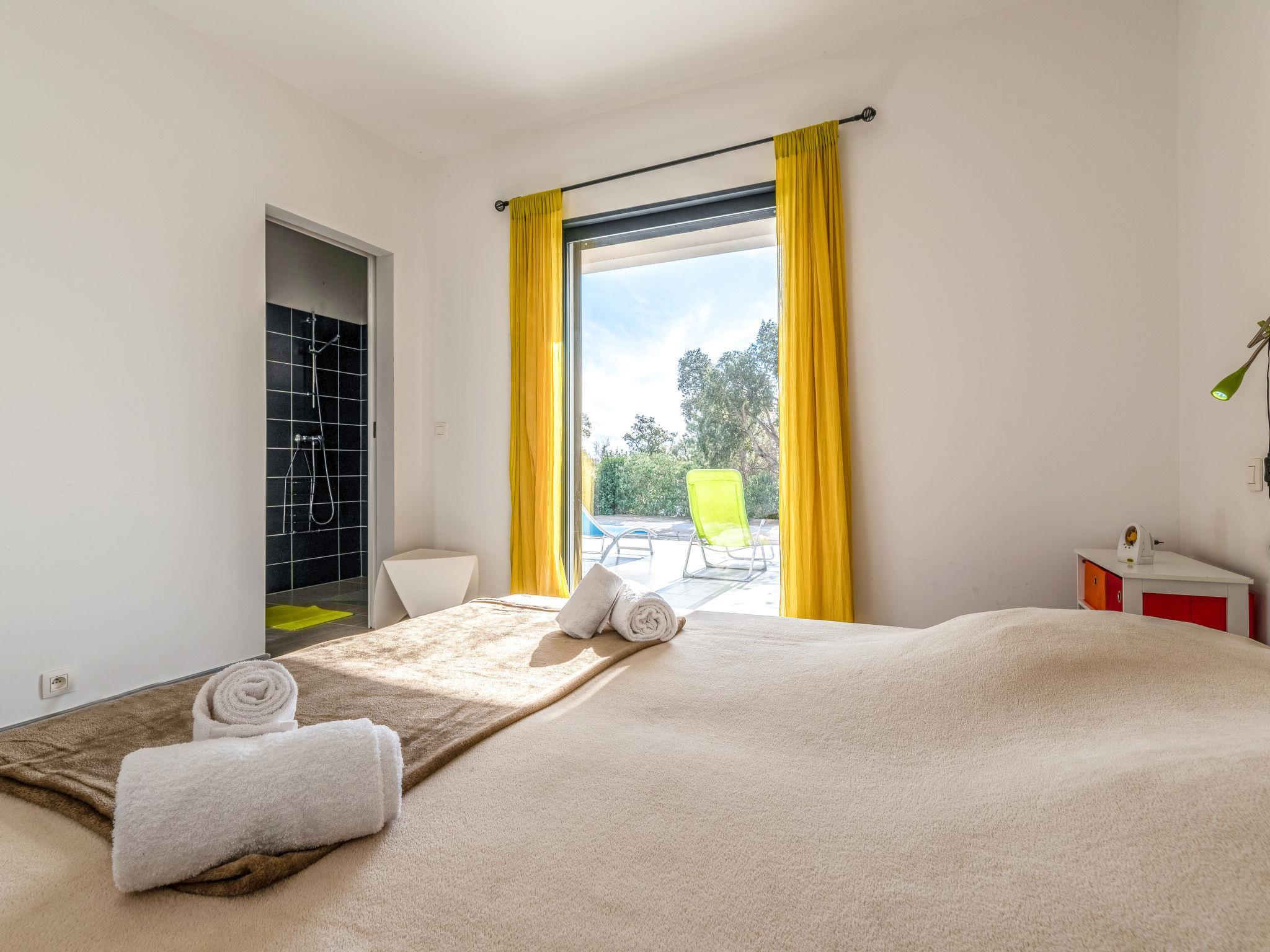 Villa. In the district of Mangia Gatta, on the outskirts, 4 km from the centre of Sainte Lucie de Porto-Vecchio, in a secluded position, 700 m from the sea, 700 m from the beach, direct access to the beach. Private: natural state property, swimming pool angular (10 x 4 m, depth 70 - 180 cm, seasonal availability: 15.Apr. - 15.Sep.) with shutter cover. In the house: air conditioning. Motor access (via unmade road). Parking on the premises. Supermarket 4 km, restaurant 1 km, bakery 4 km, bus stop 4.1 km, sandy beach "Plage de Fautea" 1 km. Nearby attractions: Centre ville Porto-Vecchio 20 km, Centre ville Solenzara 19 km. Hiking paths: Aiguilles de Bavella 40 km. Please note: car recommended.
