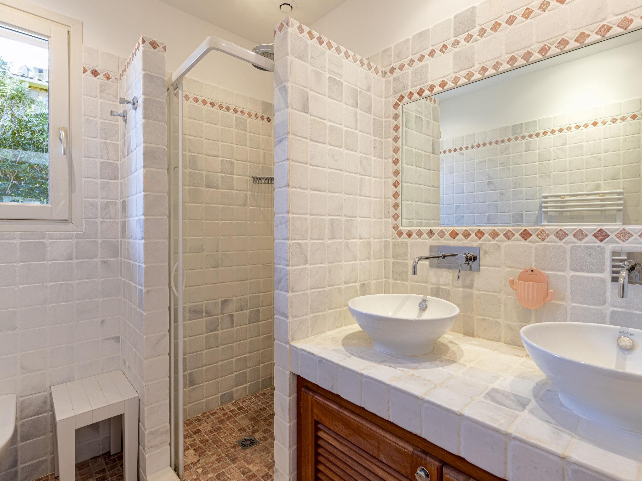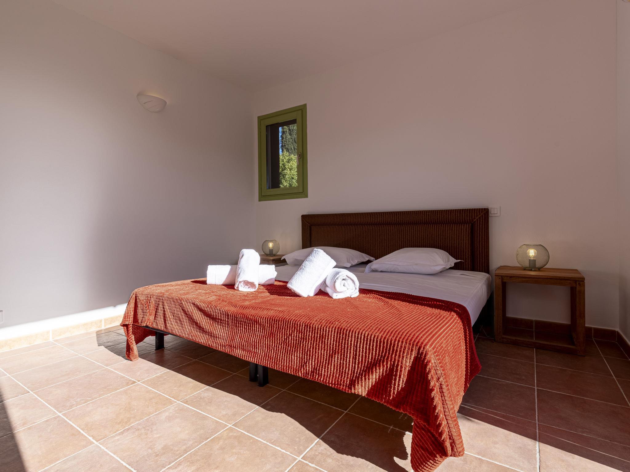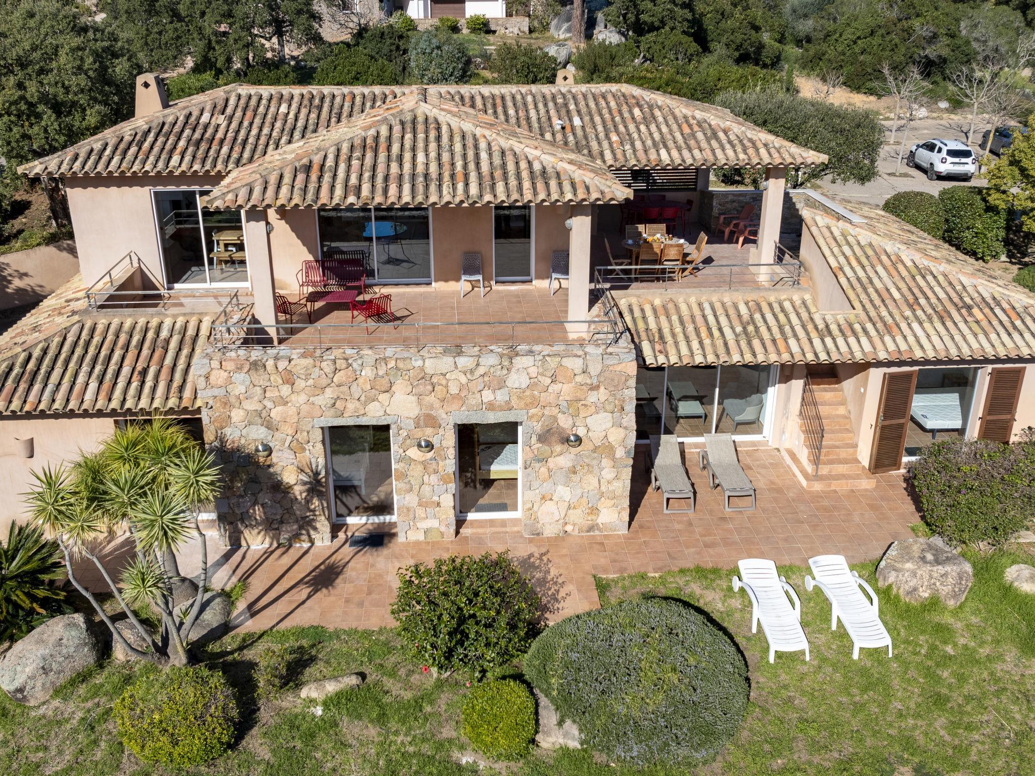 Cala di Capicciola: Villa "Villa Capicciola", 2 storeys. In the residential district, 150 m from the sea, 150 m from the beach, direct access to the beach. For shared use: swimming pool angular (14 x 7 m, depth 110 - 220 cm, seasonal availability: 15.Jun. - 15.Oct.). Private: property 1'700 m2, well-kept garden. Outdoor shower, terrace (30 m2), garden furniture, barbecue house, parking (for 3 cars) on the premises. Supermarket 10 km, shopping centre 10 km, restaurant 2.5 km, bus stop "Saint Cyprien" 7 km, sandy beach "Plage de Capicciola" 150 m. Marina 8 km, golf course (9 hole) 23 km. Nearby attractions: Plage de Pinarellu 5 km, Plage de Saint Cyprien 6 km, Plage de Villata 2 km. Well-known lakes can easily be reached: Lac de l'Ospedale 35 km. Hiking paths: Les aiguilles de Bavella 60 km. Please note: car recommended. Guarded residence. Residence with electric gates.