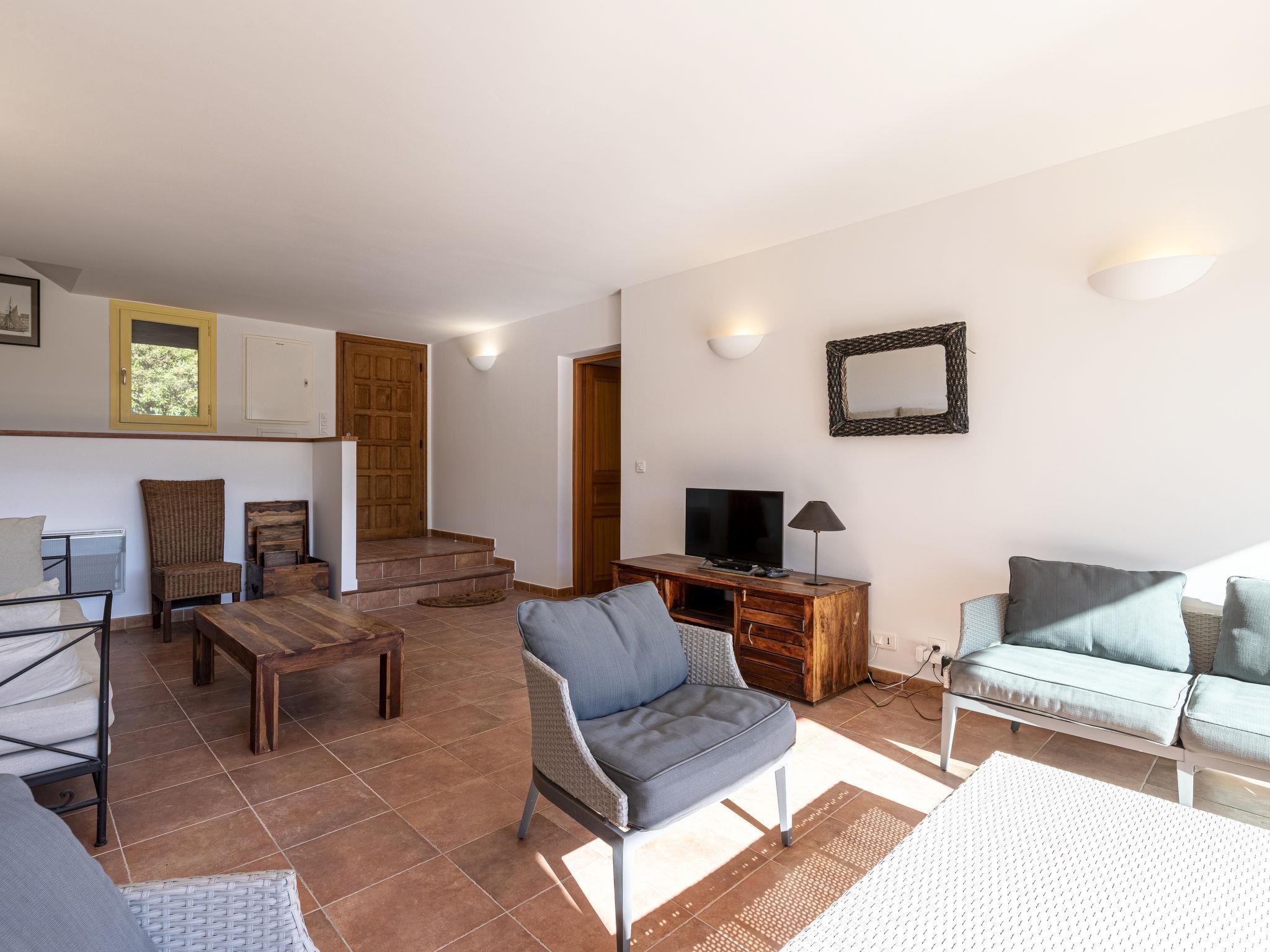 "Villa Capicciola", 7-room villa 180 m2 on 2 levels. Living room with sliding door with TV (flat screen), electric shutters. Exit to the garden. 1 room with panoramic window with 1 french bed (160 cm, length 200 cm), air conditioning. Exit to the garden. 3 rooms with panoramic window, each room with 2 beds (90 cm, length 190 cm), air conditioning. Exit to the garden. 1 room with panoramic window with 2 beds (100 cm, length 200 cm), air conditioning. Exit to the garden. Bath/shower, 2 showers, bidet, 3 sep. WC's, double hand-basin. Electric heating. Upper floor: large living/dining room 65 m2 with panoramic window with open-hearth fireplace, dining table and TV (flat screen), electric shutters. Exit to the terrace. Kitchenette (oven, dishwasher, 4 induction hot plates, 2 gas rings, microwave, freezer, electric coffee machine, Capsules for coffee machine (Nespresso) extra). Terrace furniture, barbecue, deck chairs. Partial view of the sea. Facilities: washing machine, dryer, safe, iron, hair dryer. Internet (WiFi, free). Please note: non-smoking house. 1 small pet/ dog allowed. Smoke alarm. Offer by a commercial proprietor according to Art. 155, IV, CGI