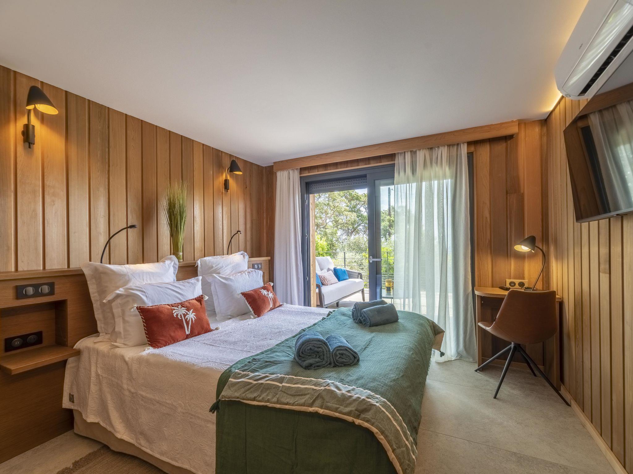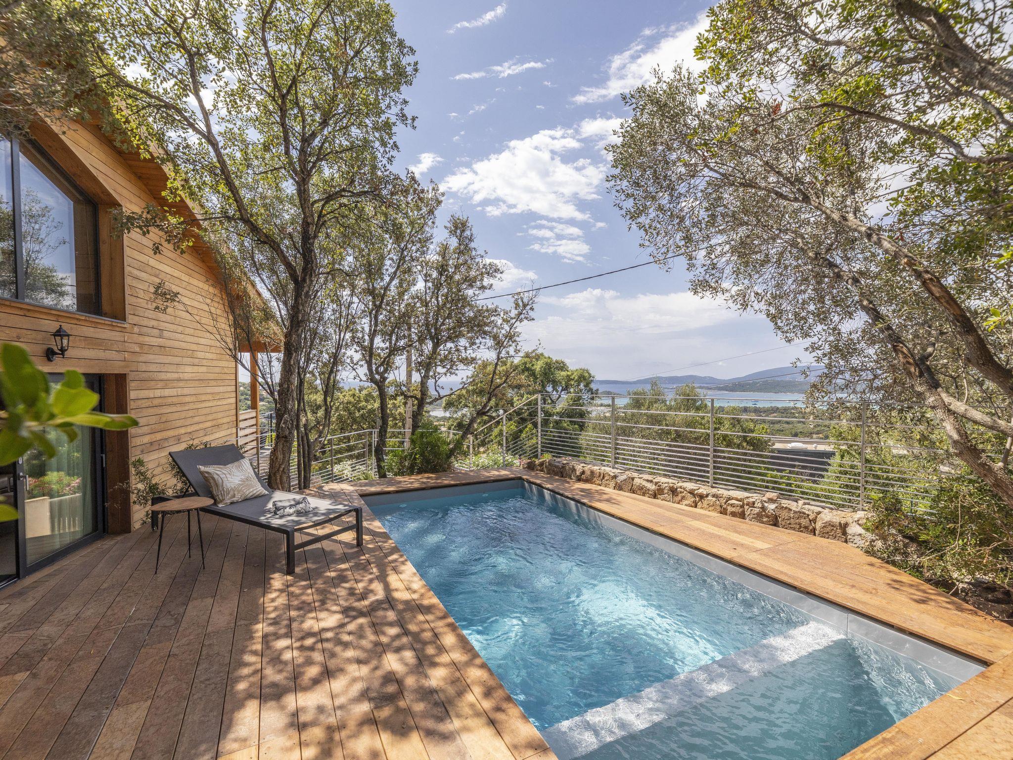 Beautiful chalet. In a quiet, sunny position, 1.6 km from the sea, 1.6 km from the beach. Private: property 320 m2 (fenced), swimming pool heated (4 x 3 m, depth 150 cm, seasonal availability: 01.Apr. - 01.Nov.). Parking, single garage. Shop 6 km, supermarket 8 km, restaurant 1.8 km, bus stop 9 km. Sports harbour 14 km. Nearby attractions: Saint Cyprien 6 km, Porto-Vecchio 14 km, Bonifacio 42 km, Pinarellu 5 km, Cavu 15 km. Well-known lakes can easily be reached: L'Ospedale 35 km. Hiking paths: Alta Rocca. Please note: car recommended.