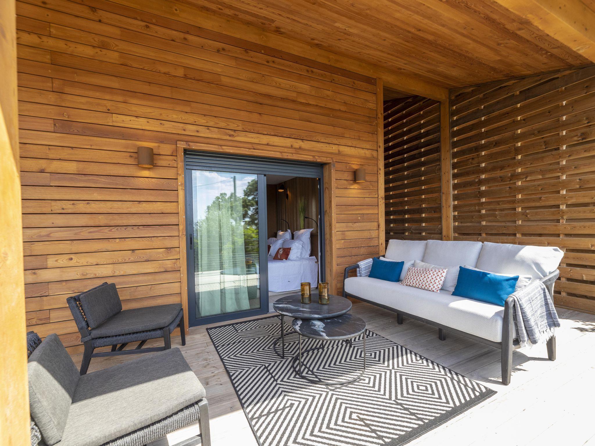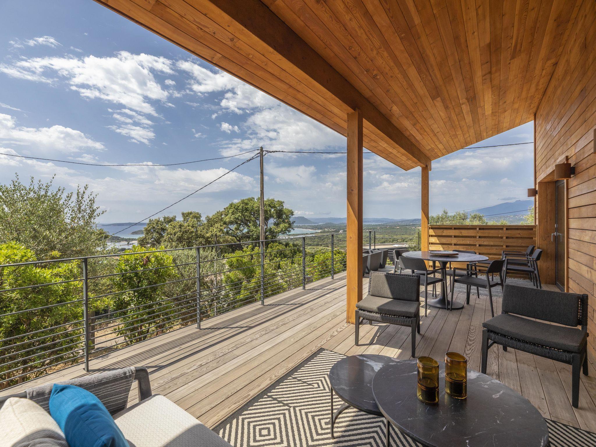 "Caseddu D'Arasu", 3-room chalet 80 m2. Object suitable for 4 adults + 1 child. Comfortable and cosy furnishings: living/dining room with dining table and TV (flat screen). Exit to the terrace. 1 room with 1 french bed (160 cm, length 200 cm), shower and TV (flat screen). Exit to the terrace. Open kitchen (oven, dishwasher, 4 ceramic glass hob hotplates, toaster, kettle, microwave, electric coffee machine). Sep. WC. Electric heating, air-conditioning. Upper floor: gallery with 1 double sofabed (160 cm, length 190 cm). 1 room with 1 french bed (160 cm, length 200 cm), separate WC, shower, TV and flat screen. Terrace. Terrace furniture, electric barbecue, sitting area. Beautiful view of the sea and the mountains. Facilities: washing machine, hair dryer. Internet (WiFi). Parking, garage. Please note: smoke alarm. Offer by a commercial proprietor according to Art. 155, IV, CGI
