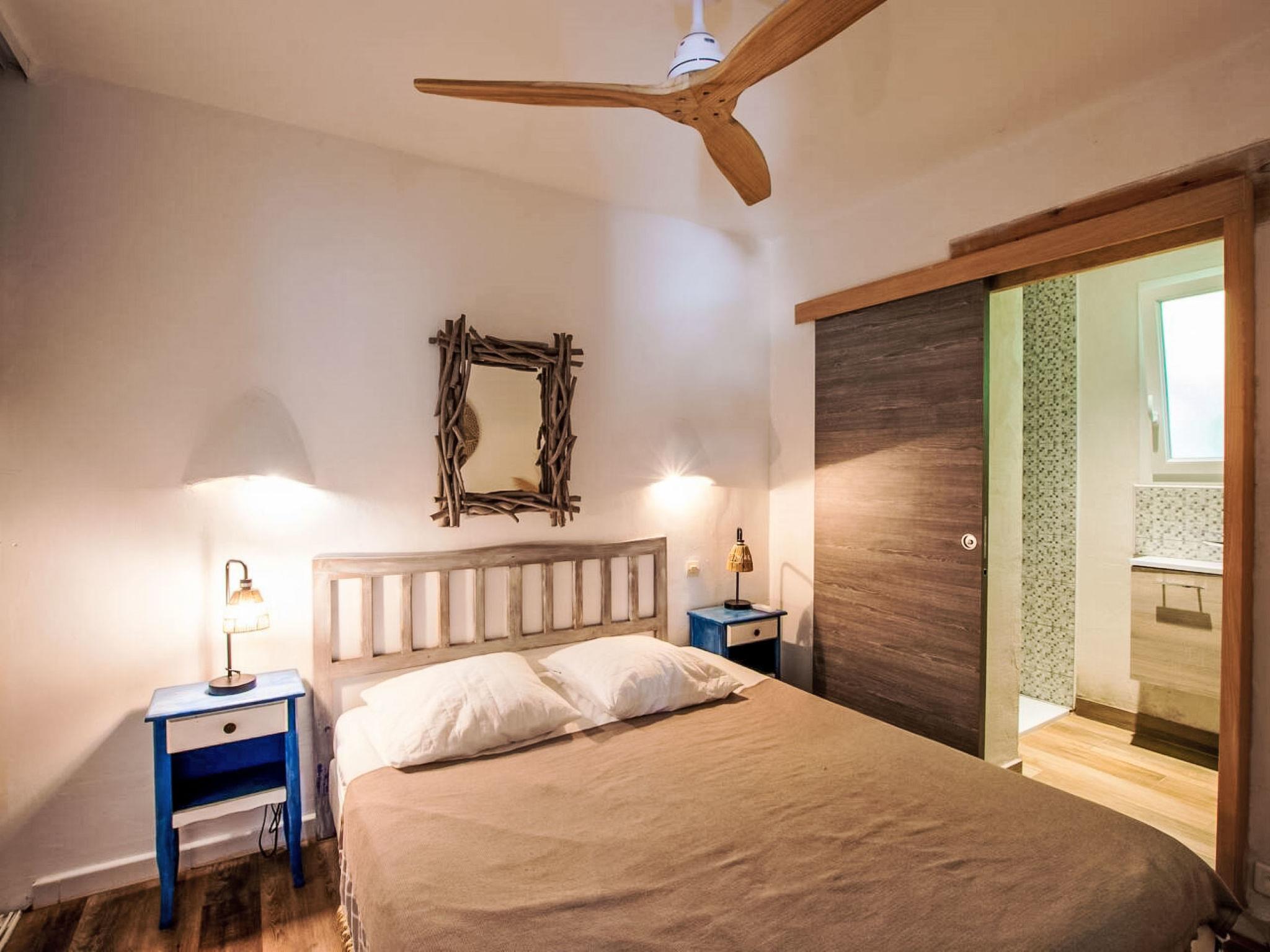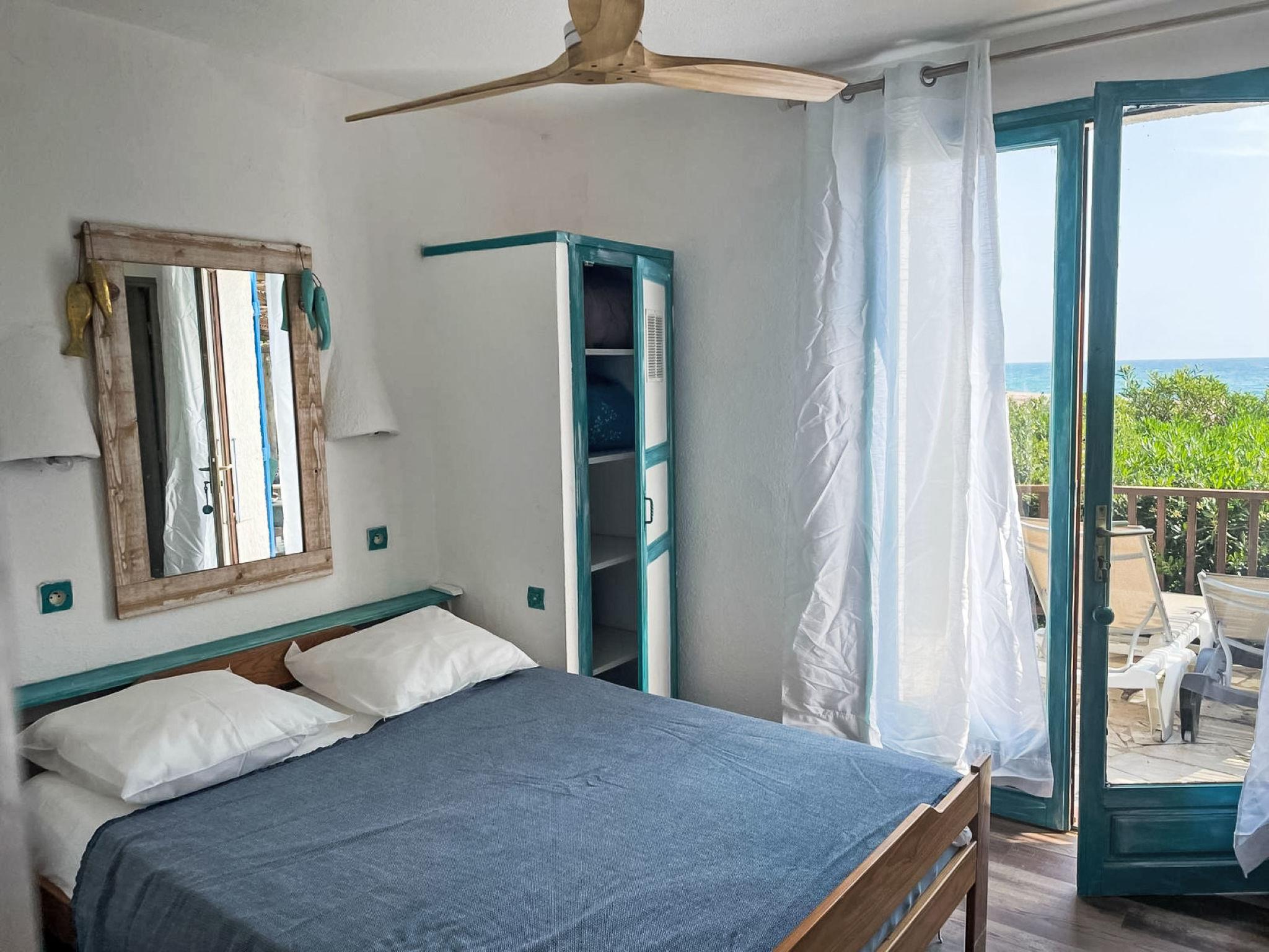 2-family house "Casa Blue". In the district of Olmucciu, 30 m from the sea, 30 m from the beach, direct access to the beach. Private: property (fenced), parking at the house. Supermarket 6 km, restaurant 50 m, bakery 6 km, bus stop 6 km, sandy beach "Plage des Americains" 30 m. Sailing school 8 km. Nearby attractions: Plage des Américains 30 m, Plage de Pinarellu 8 km, Porto-Vecchio 21 km, Bonifacio 49 km. Hiking paths: Piscine Cavu 12 km, Aiguilles de Bavella 59 km. Please note: car recommended.