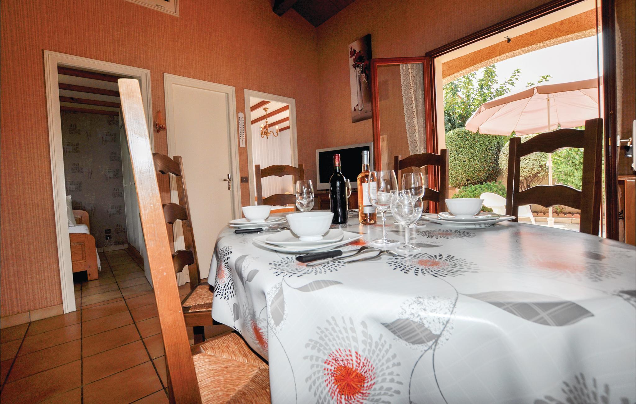Meget hyggeligt feriehus kun 400 meter fra stranden. Huset ligger i Sainte-Marie, 15 km fra Perpignan. En rummelig terrasse inviterer til at grille og spise. Samtidigt byder de komfortabelt indrettede værelser velkommen til et ophold indenfor.