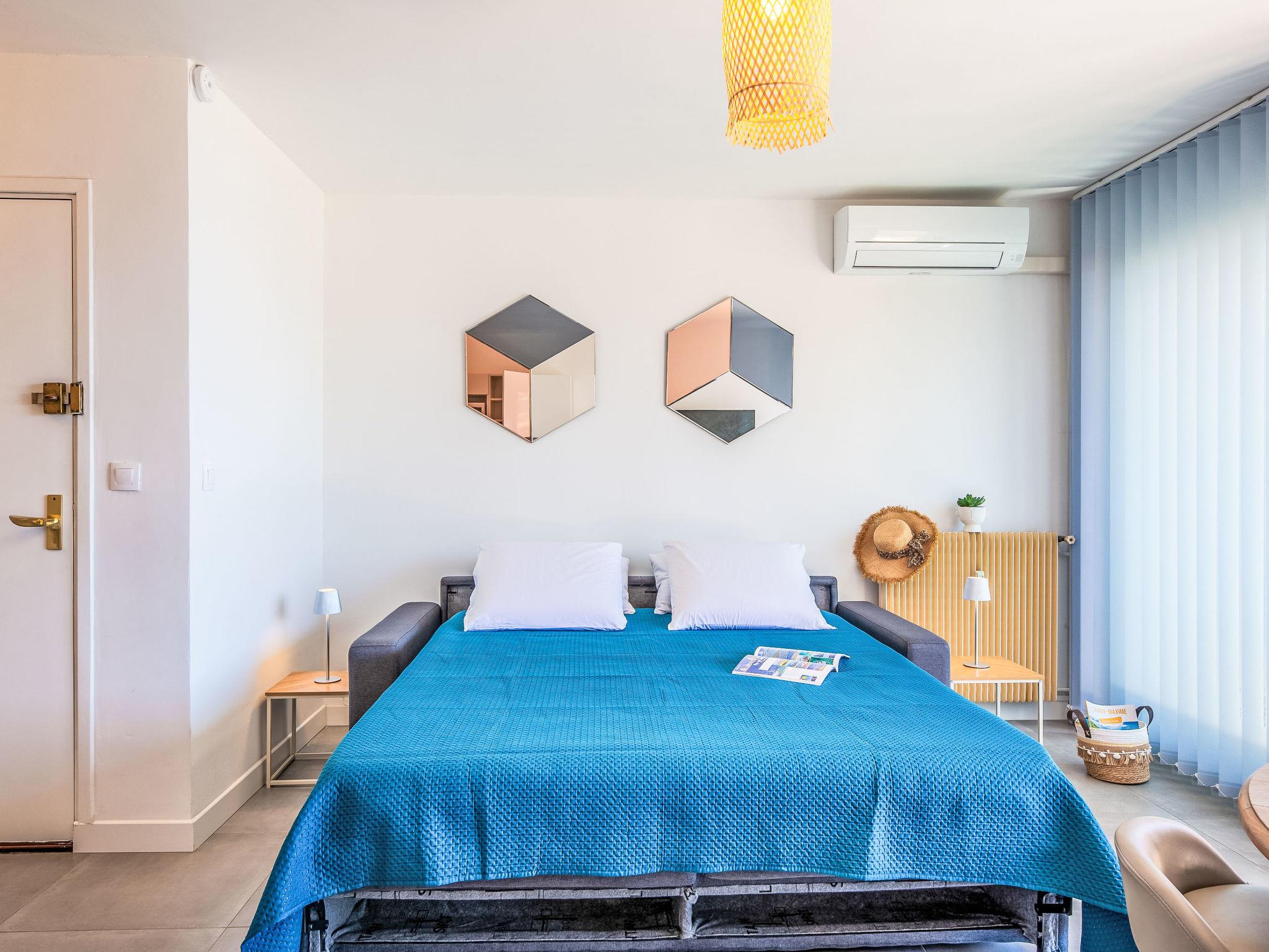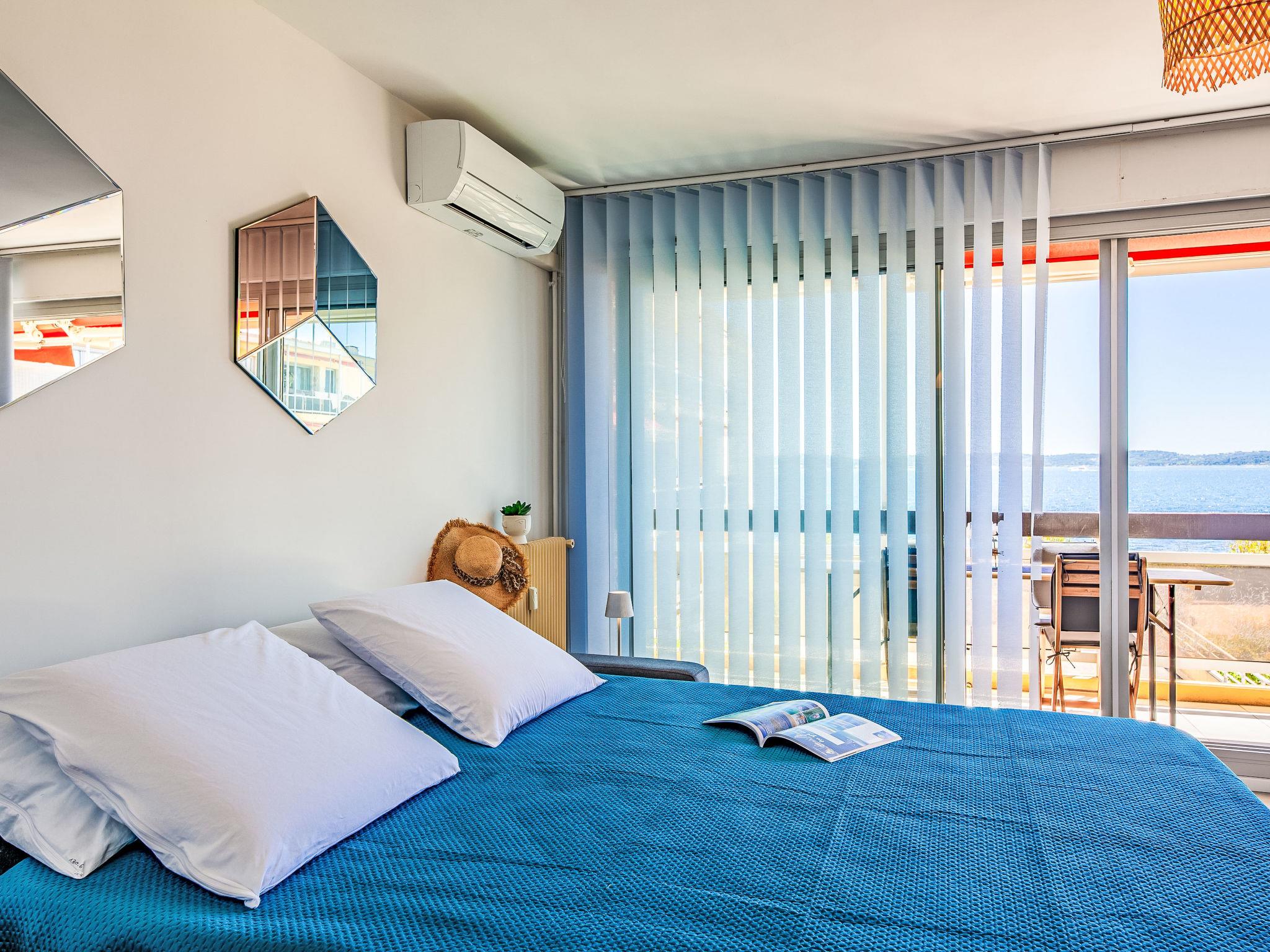 2-room apartment 42 m2 on 1st floor, south facing position. Renovated, comfortable and cosy furnishings: living/dining room with 1 double sofabed (160 cm, length 200 cm), TV (flat screen), air conditioning. Exit to the terrace. 1 room with 1 french bed (160 cm, length 200 cm). Open kitchen (oven, dishwasher, 3 induction hot plates, toaster, kettle, microwave, freezer, electric coffee machine). Shower, sep. WC. Forced-air heating. Balcony 9 m2, south facing position. Balcony furniture. Beautiful view of the sea. Facilities: washing machine, iron. Internet (WiFi, free). Parking (1 car). Please note: non-smokers only. Maximum 1 small pet/ dog allowed. Smoke alarm, no lift. Offer by a private individual according to Art. 155, IV of CGI. 83115005574AK