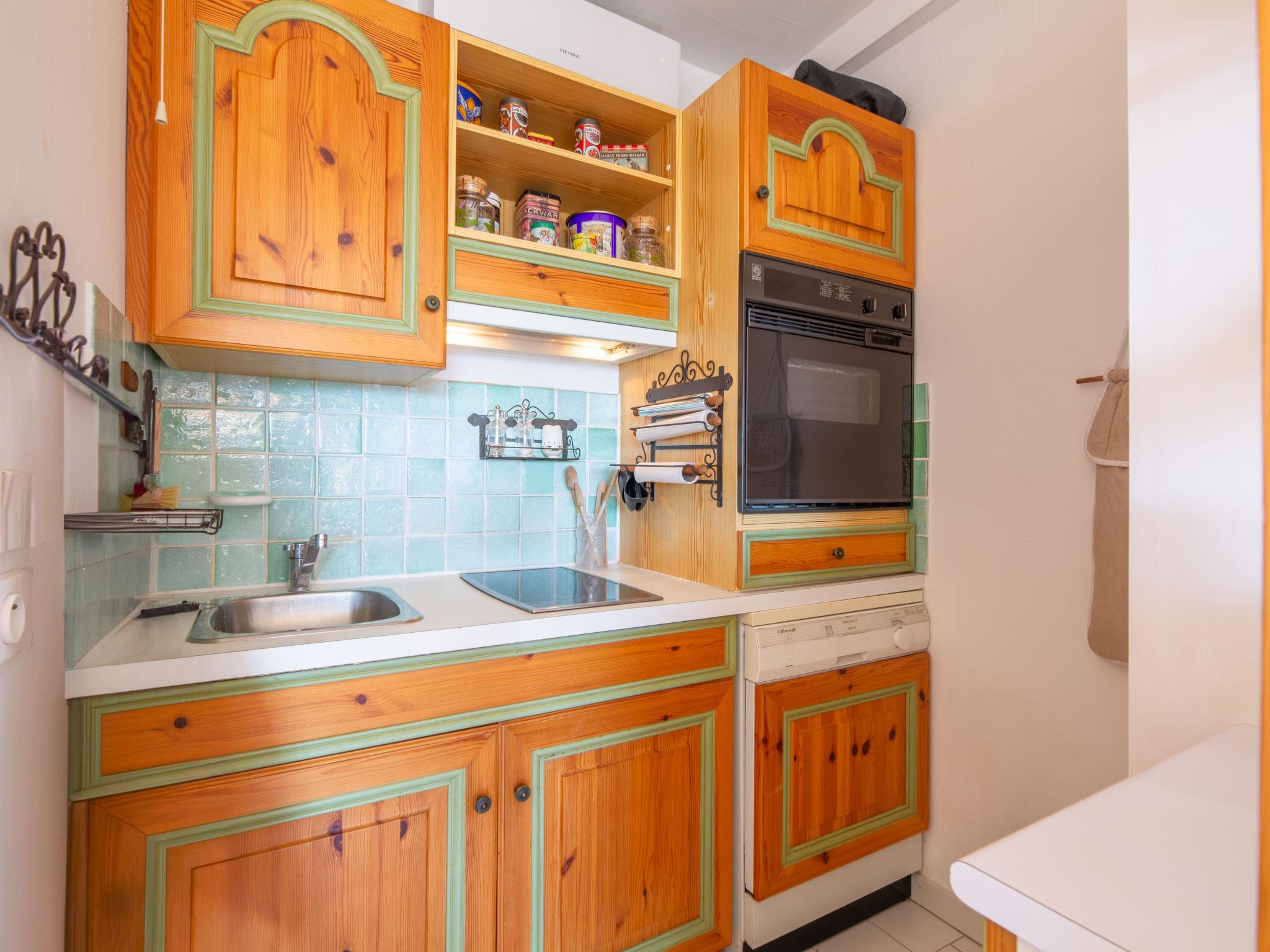 2-room apartment 35 m2 on 1st floor, south facing position. Beautiful furnishings: entrance hall with separate WC. Living/dining room with 1 double sofabed (1 x 140 cm, length 190 cm), TV (flat screen). Exit to the balcony. 1 room with 2 beds (80 cm, length 200 cm). Small, open kitchen (oven, dishwasher, 2 ceramic glass hob hotplates, toaster, kettle, microwave, freezer, electric coffee machine). Shower. Air-conditioning. Balcony 10 m2, south facing position. Balcony furniture. Distant view of the sea. Facilities: iron, hair dryer. Internet (WiFi, free). Parking. Please note: non-smokers only. Smoke alarm, no lift. The upper floor of the apartment is not accessible and closed by a hatch at the top of the stairs. Offer by a private individual according to Art. 155, IV of CGI. 83115005780HT