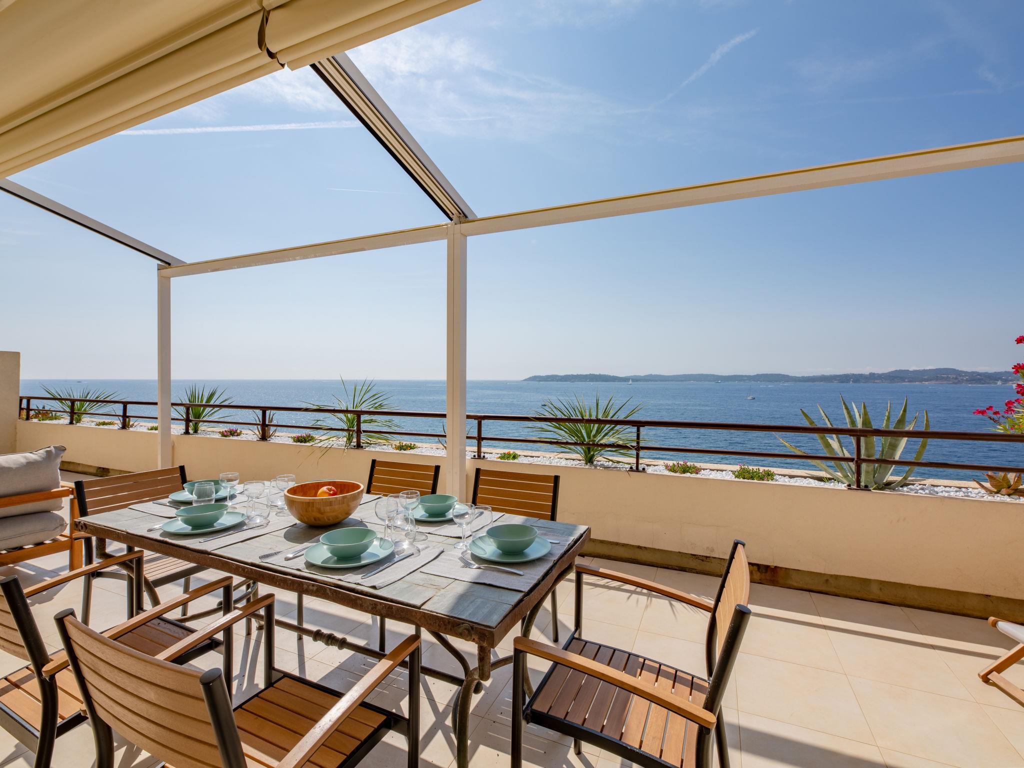 3-room maisonette 114 m2 on 5th floor, south facing position. Stylish furnishings: large living/dining room with TV (flat screen). Exit to the terrace. 1 room, south facing position with 1 french bed (1 x 180 cm, length 200 cm). Exit to the terrace. 1 room, north facing position with 1 french bed (1 x 160 cm, length 200 cm). Open kitchen (oven, dishwasher, 4 ceramic glass hob hotplates, toaster, kettle, microwave, freezer, electric coffee machine). Shower, sep. WC. Air-conditioning, forced-air heating. Upper floor: 1 room, without window with 1 french bed (1 x 160 cm, length 200 cm), shower/bidet/WC. Large terrace 50 m2, south facing position. Terrace furniture. Panoramic view of the sea. Facilities: washing machine, iron, hair dryer. Internet (WiFi, extra). Parking at 750 m. Please note: non-smokers only, parking space for small car only. Maximum 1 pet/ dog allowed. Smoke alarm. Offer by a private individual according to Art. 155, IV of CGI. 83115005138HT