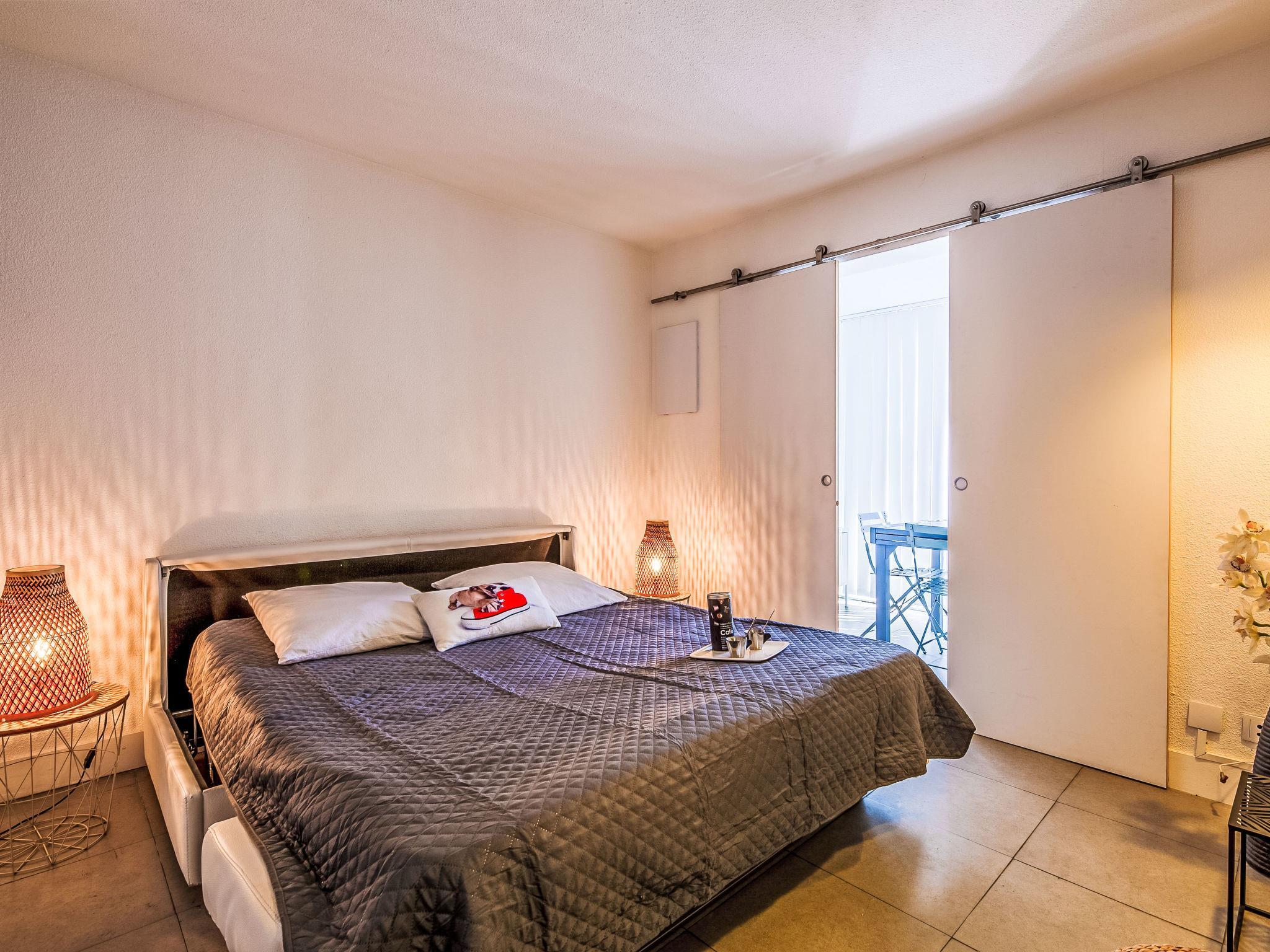 2-room apartment 27 m2, on the ground floor. Simple furnishings: living/dining room with 1 double sofabed (160 cm, length 200 cm), TV (flat screen). Exit to the terrace. 1 small room with 1 double bed (140 cm, length 190 cm). Kitchenette (2 ceramic glass hob hotplates, freezer, combination microwave). Bathroom, sep. WC. Electric heating, air-conditioning. Terrace 16 m2, south-west facing position. Distant view of the sea. Facilities: washing machine. Internet (WiFi, extra). Parking. Please note: non-smokers only. Maximum 1 pet/ dog allowed. Smoke alarm. Offer by a private individual according to Art. 155, IV of CGI. 83115005594HT