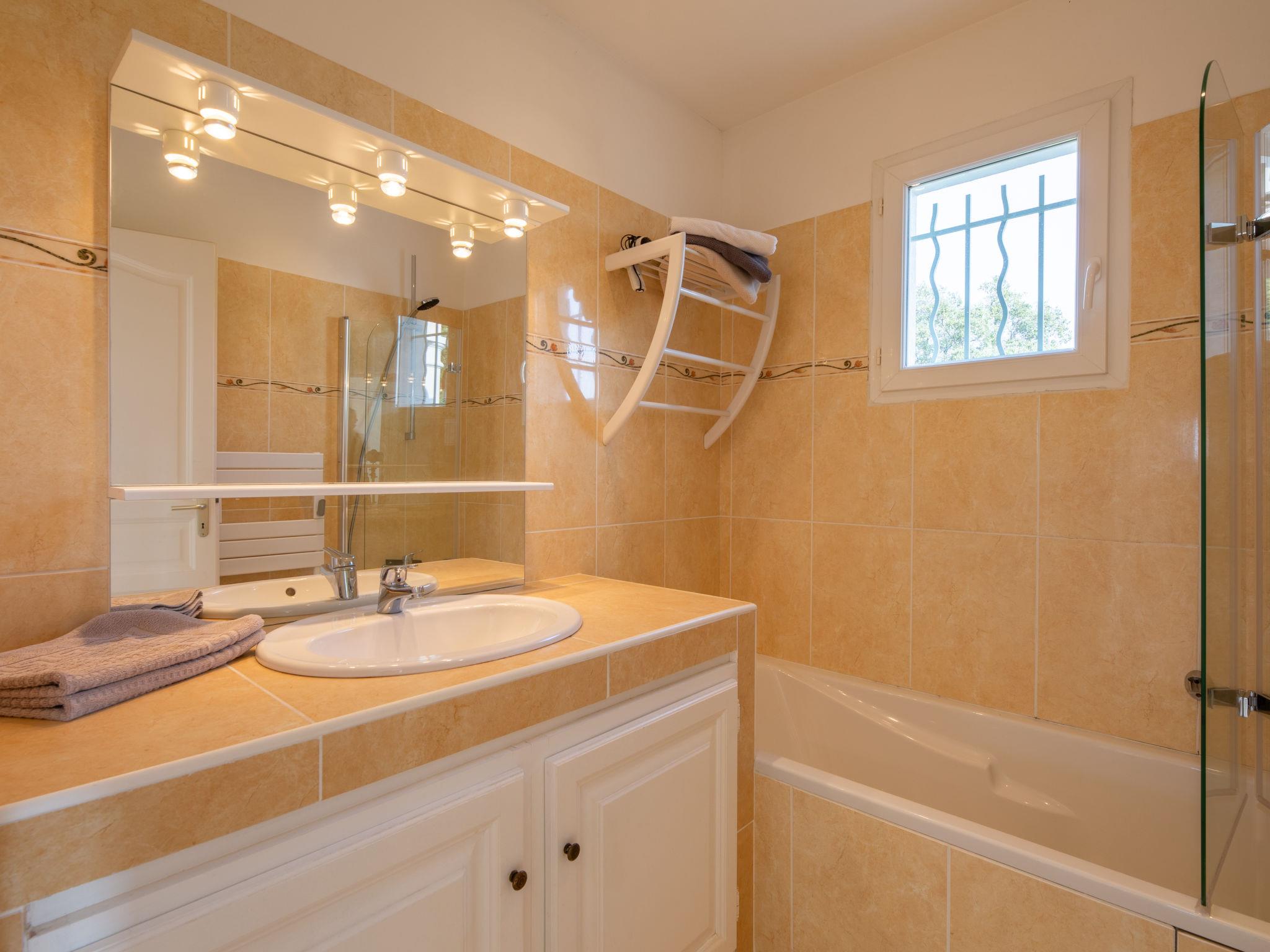 Apartment block "Le Green", 2 storeys. 4 apartments in the residence. In the district of Du Golf de Sainte Maxime, on the outskirts, 5 km from the centre of Sainte-Maxime, in a quiet, sunny position on top of a hill, in the residential district, traffic calmed area, 5 km from the sea, on the beach, in a cul-de-sac, on the golf course, south facing position. For shared use: swimming pool angular (10 x 5 m, depth 170 - 170 cm, seasonal availability: 01.Jun. - 30.Sep.) with internal staircase and alarm system. Shop 5 km, supermarket 6.5 km, bus stop 4 km, railway station "TGV Saint-Raphael" 25 km, sandy beach "La Nartelle" 4.5 km, thermal baths "Thalasso Spa Les Issambres" 8 km. Sports harbour 4.5 km, golf course (18 hole) 30 m, cycle lane 2 km. Nearby attractions: Aqualand waterpark 6.5 km, Navette / shuttle boat St-Tropez 15min 4.5 km, Saint-Tropez Ramatuelle 18 km, Port-Grimaud 15 km, Gorges du Verdon 90 km. Hiking paths: Massif des Maures 5 km, Massif de l'Esterel 23 km. Please note: car recommended. The keys‘ handover takes place by the agency Interhome in Sainte-Maxime, 4 km.